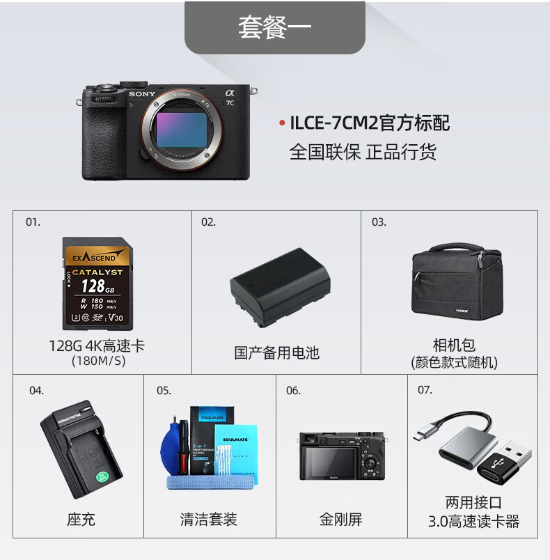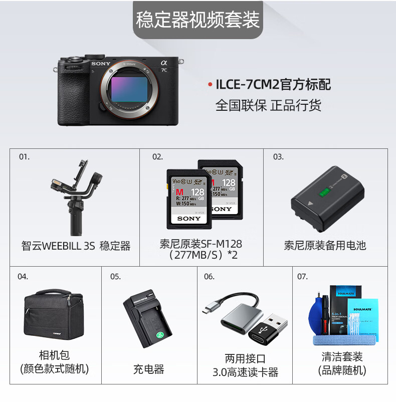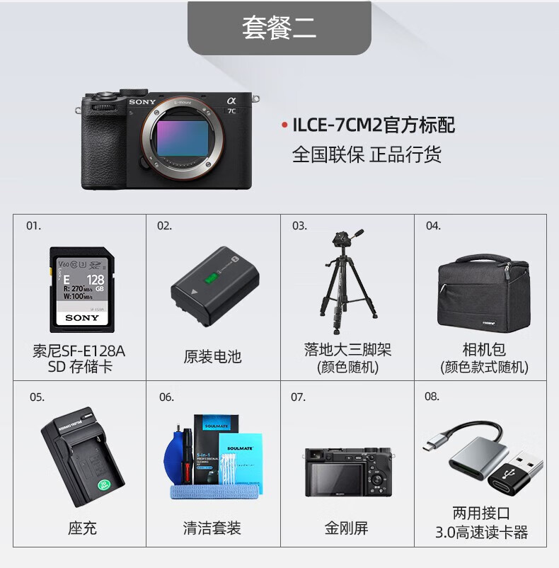 Sony (SONY) Alpha 7C II new generation full-frame dual image small 7 A7CM2 mirrorless digital camera A7C2/ ILCE-7CM2 national subsidy silver stand-alone 128 + leather case + battery + charge + screen + clear + D11 official standard