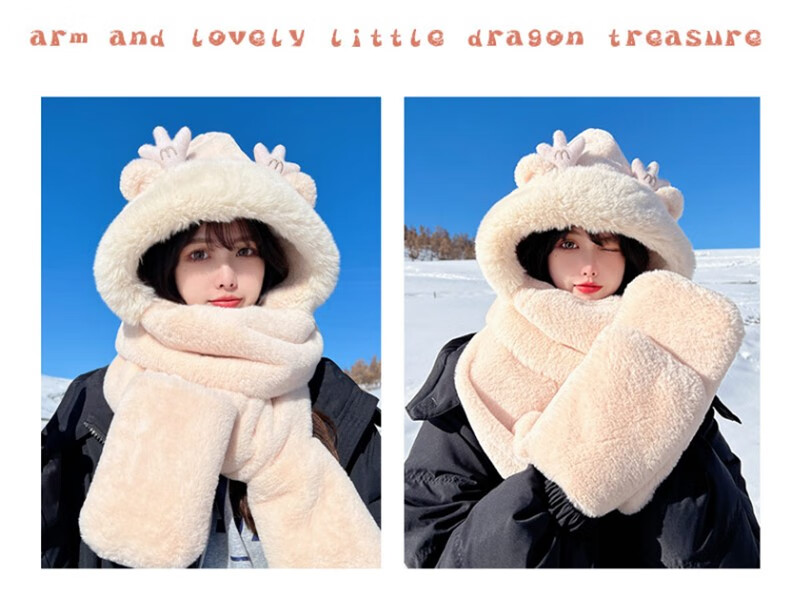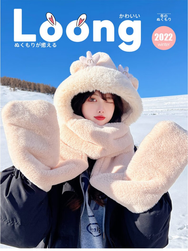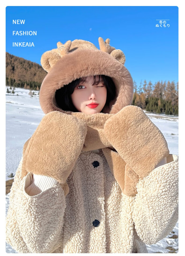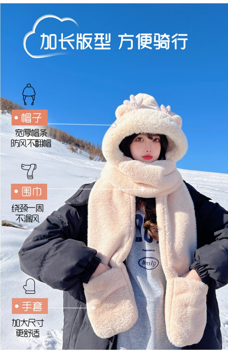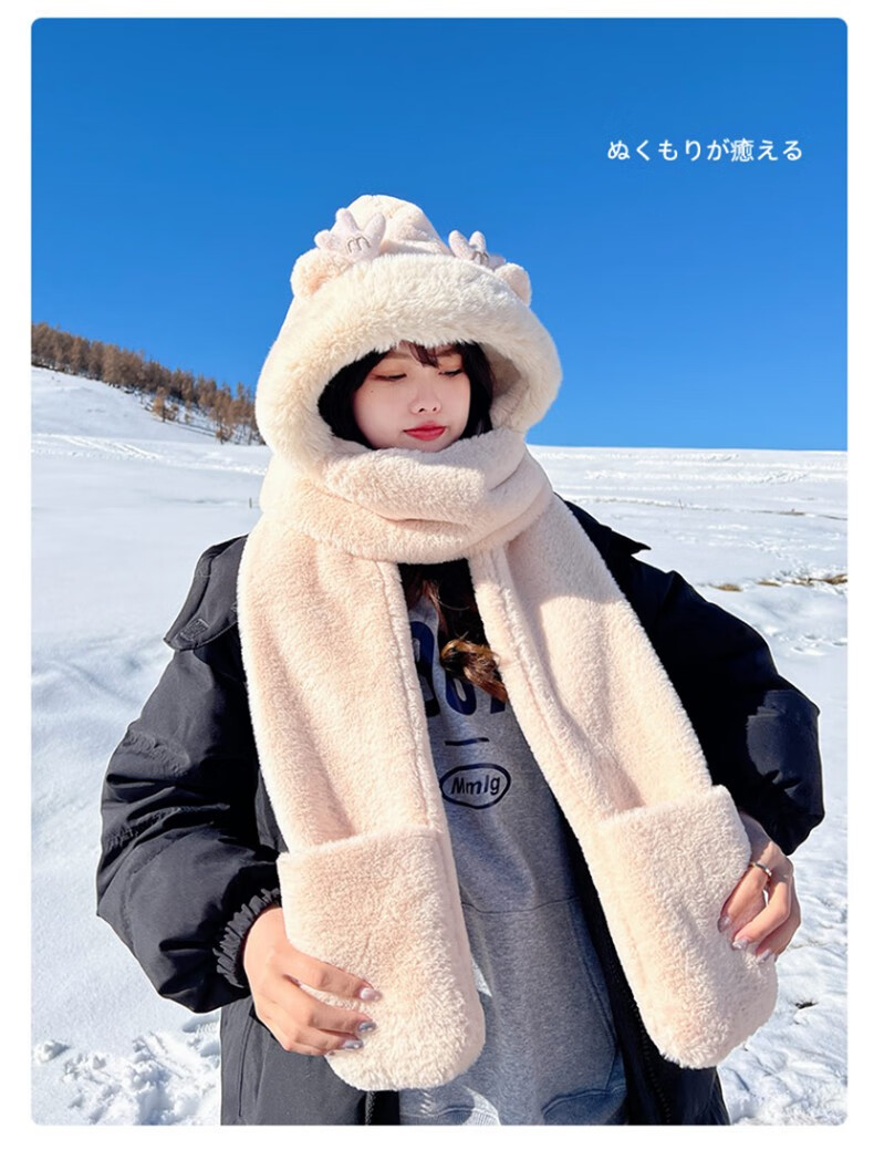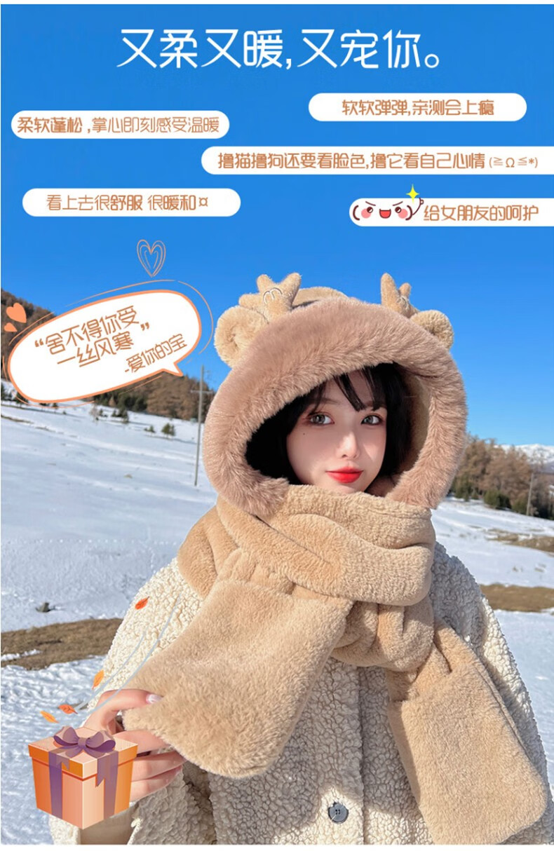 MELENDA KAMAR hat women's winter scarf gloves one-piece hat scarf cute thickened warm birthday New Year gift for girls and girlfriends warm rice