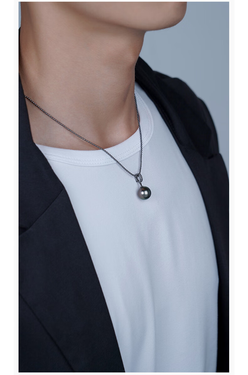 Tahitian Black Pearl Pendant S925 Silver Seawater Pearl Necklace Men's and Women's Couple Jewelry Jewelry Grade B/Slightly Flawed Without Diamonds Approximately 40+5cm Black Pearl 11-12mm