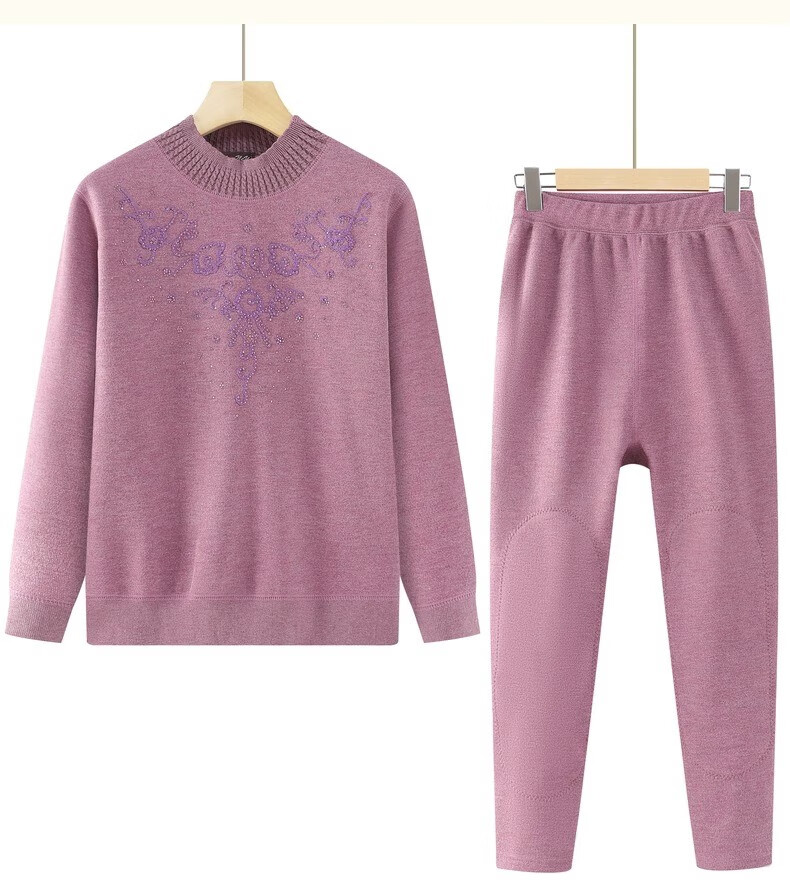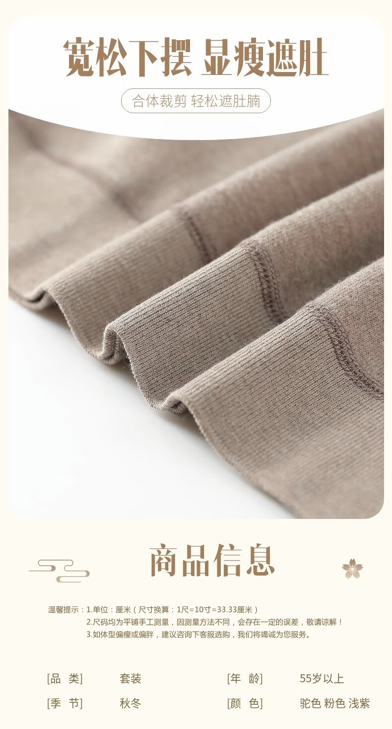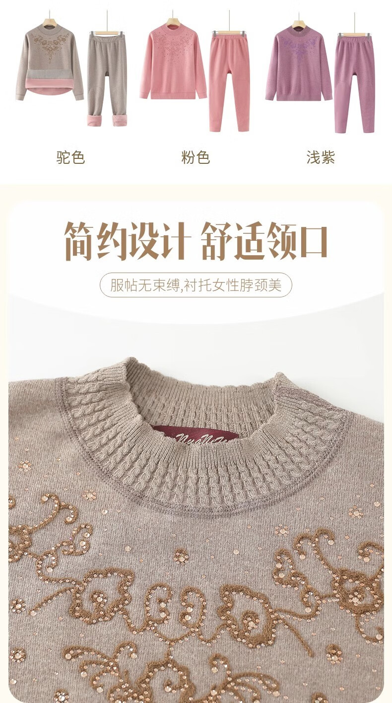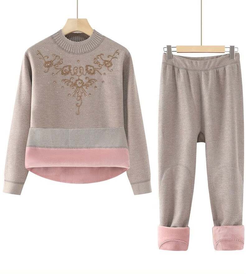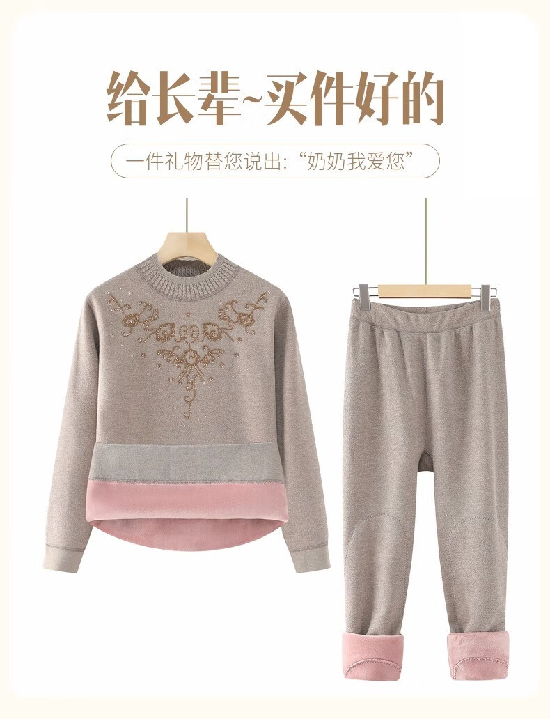 Yu Zhaolin Mother's Autumn and Winter Warm Underwear Plus Velvet Thickened Suit Women's Grandma Autumn Clothes Old Lady Clothes for the Elderly Camel 2XL (Reference 110-125Jin Jin is equal to 0.5 kg)