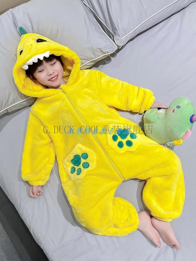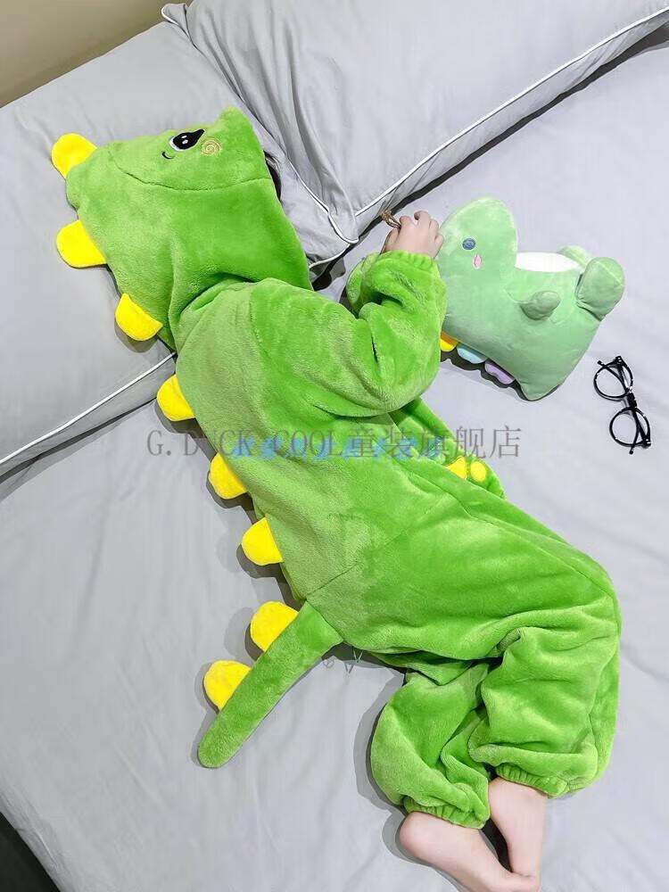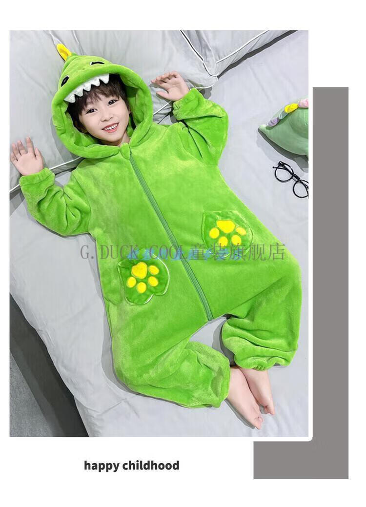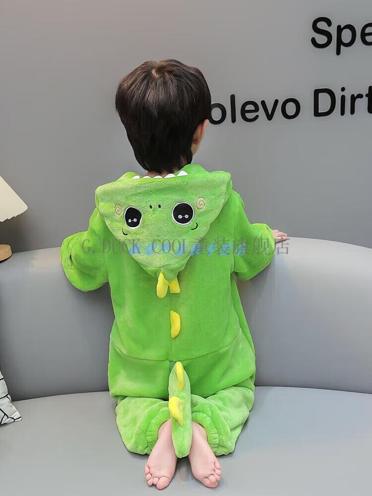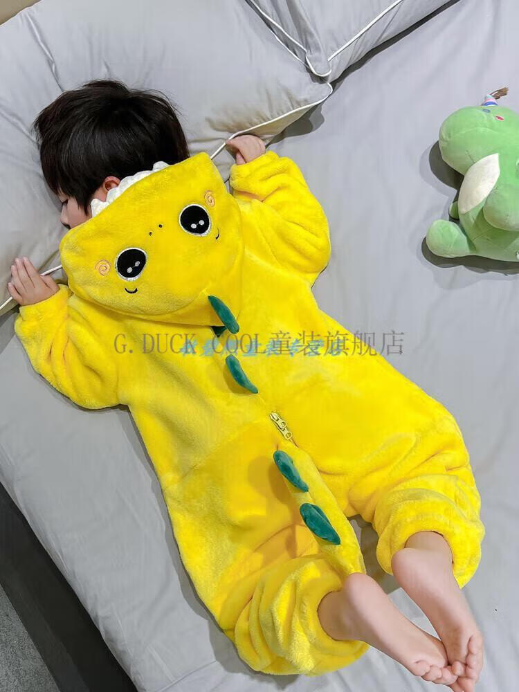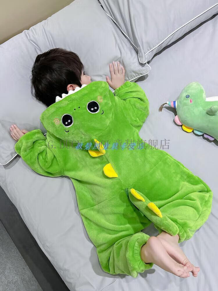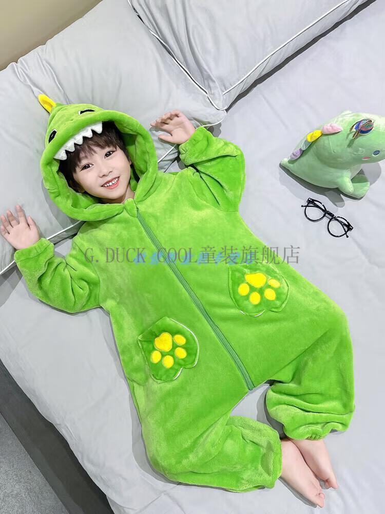 G.DUCKKIDS children's clothing children's pajamas autumn and winter boys and girls home clothes small dinosaur double thickened baby one-piece sleeping bag spring and autumn 2371 dinosaur green flannel 100 size 2~3 years old 90-100cm cm