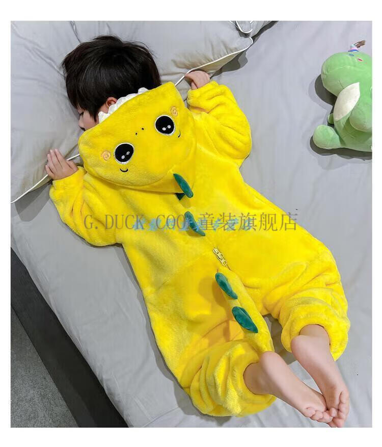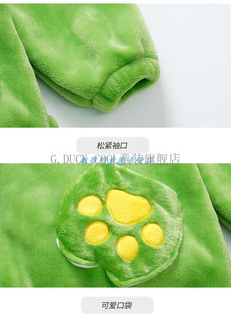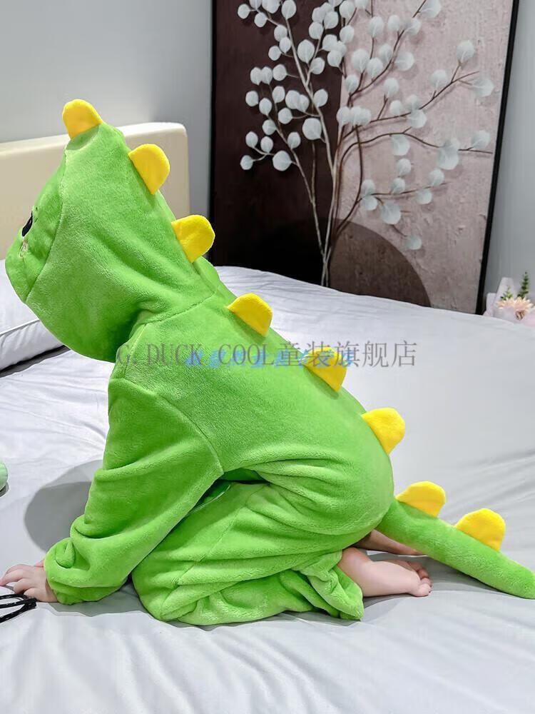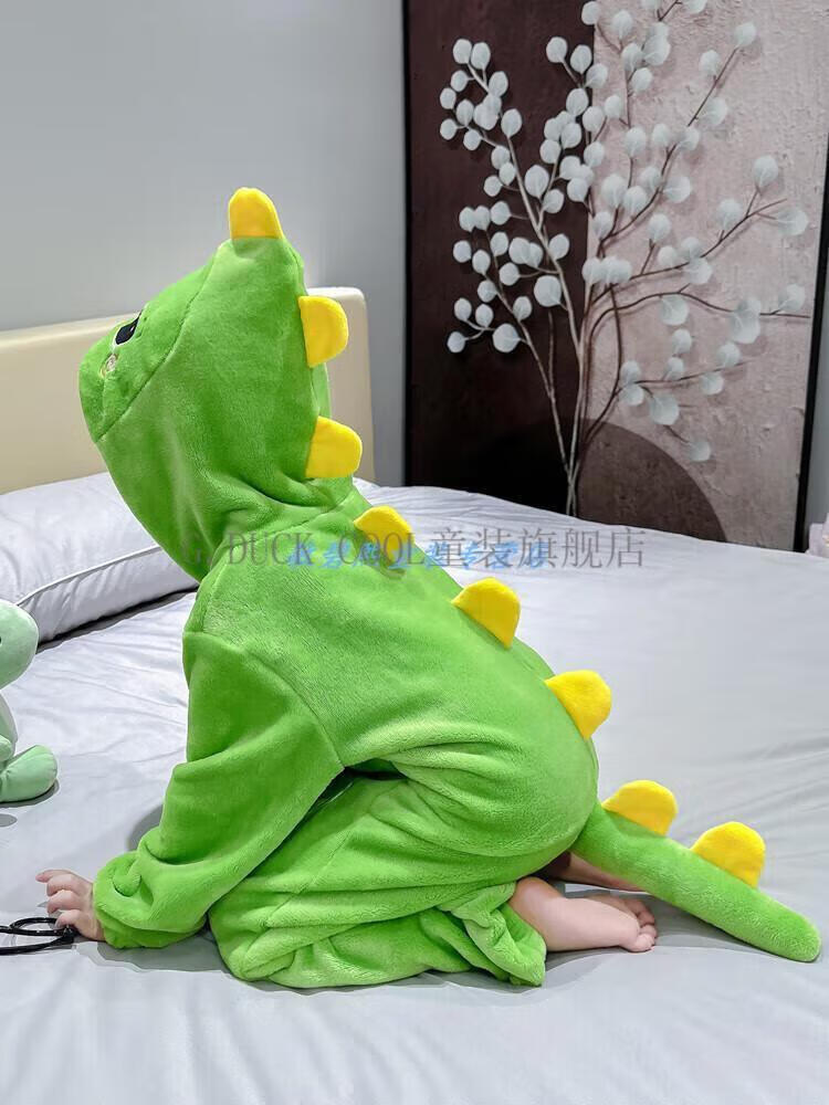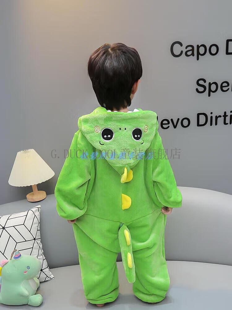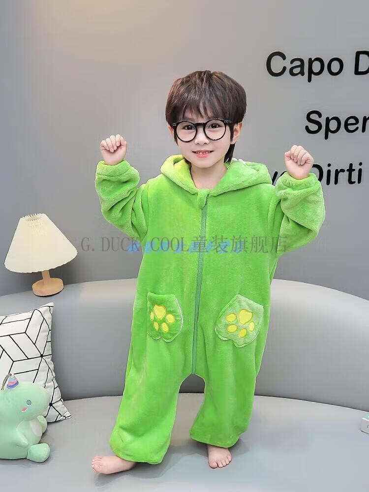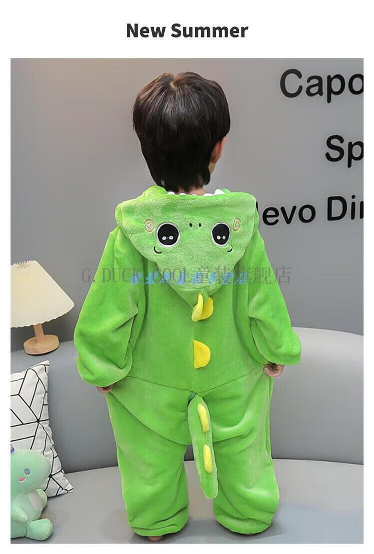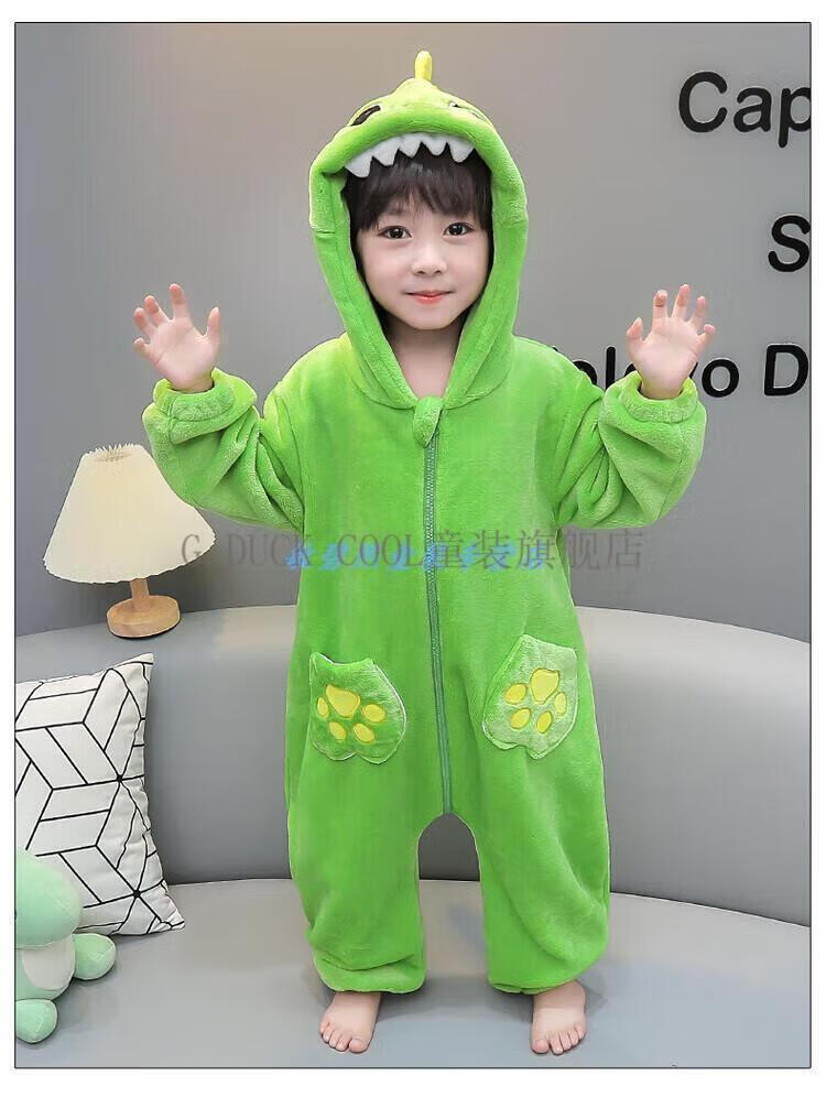 G.DUCKKIDS children's clothing children's pajamas autumn and winter boys and girls home clothes small dinosaur double thickened baby one-piece sleeping bag spring and autumn 2371 dinosaur green flannel 100 size 2~3 years old 90-100cm cm