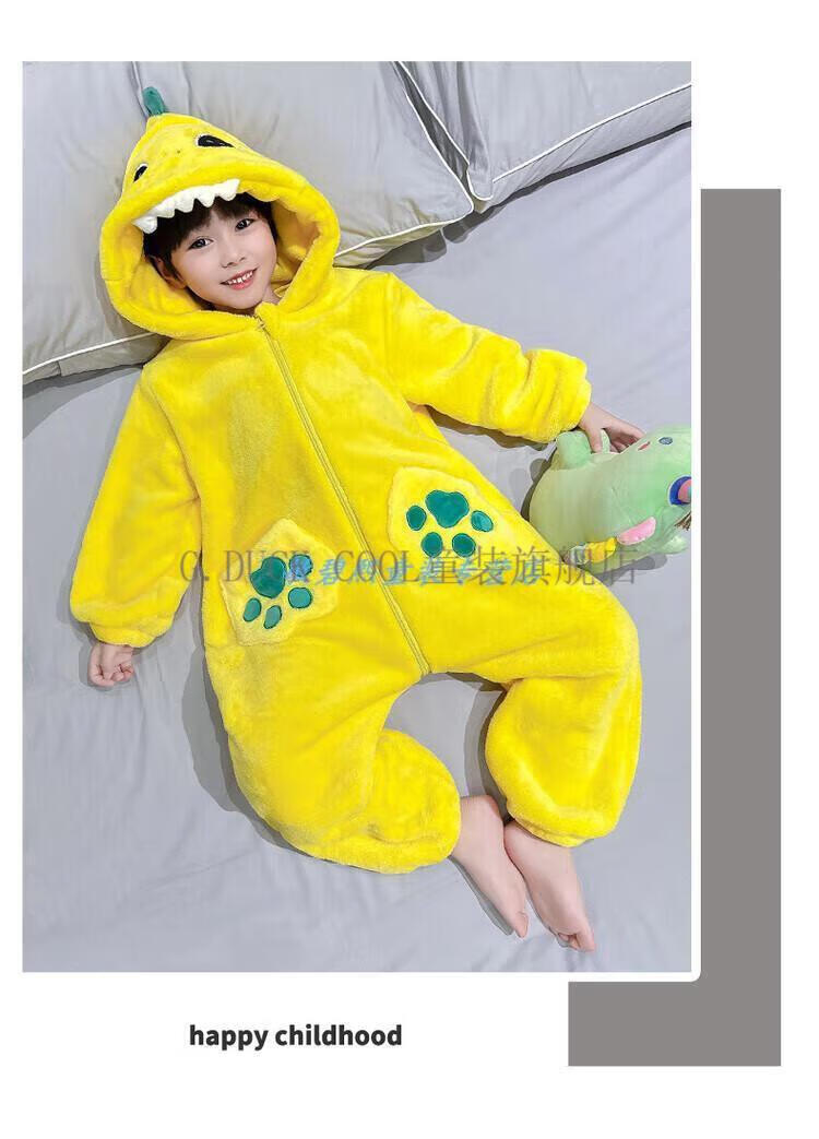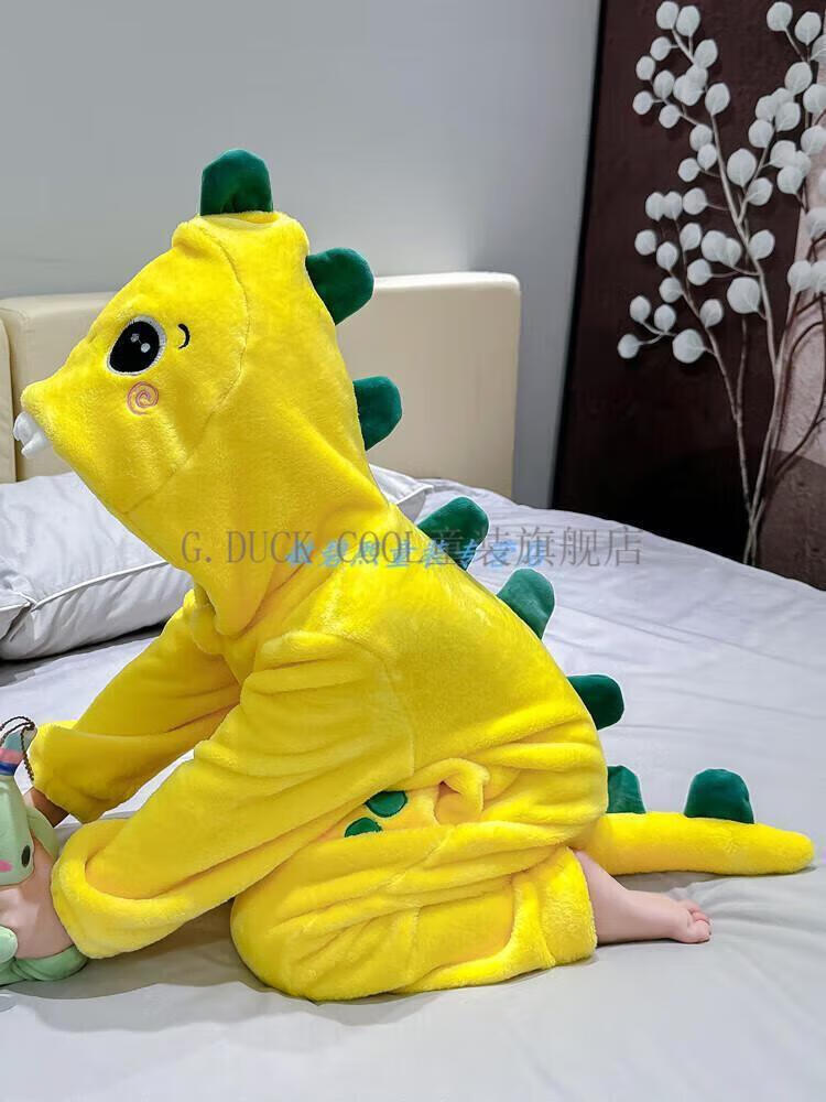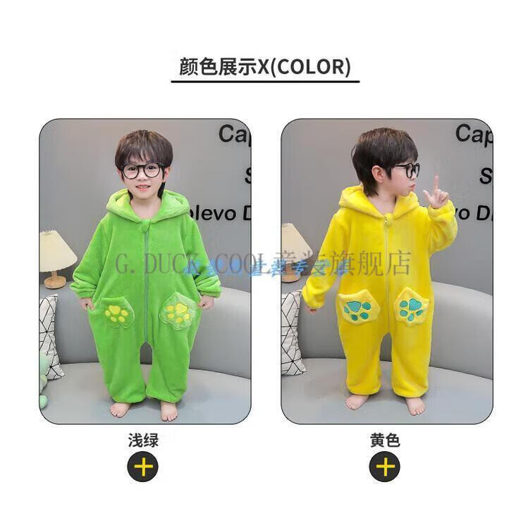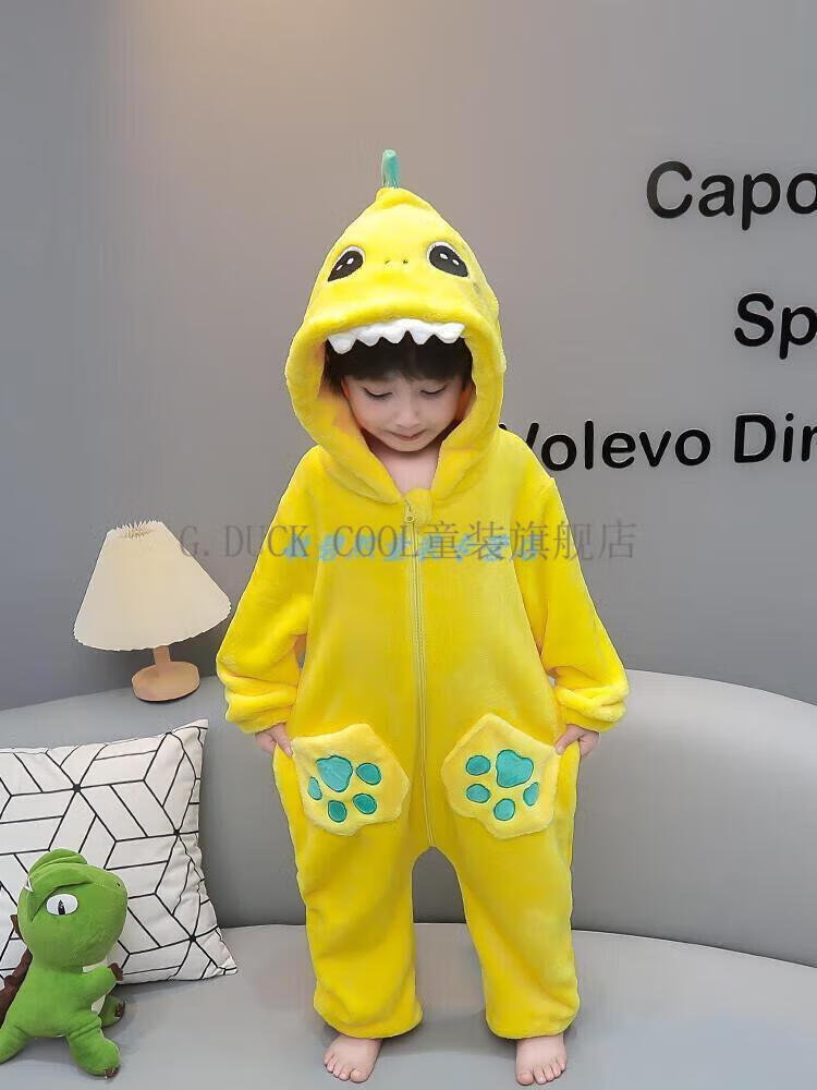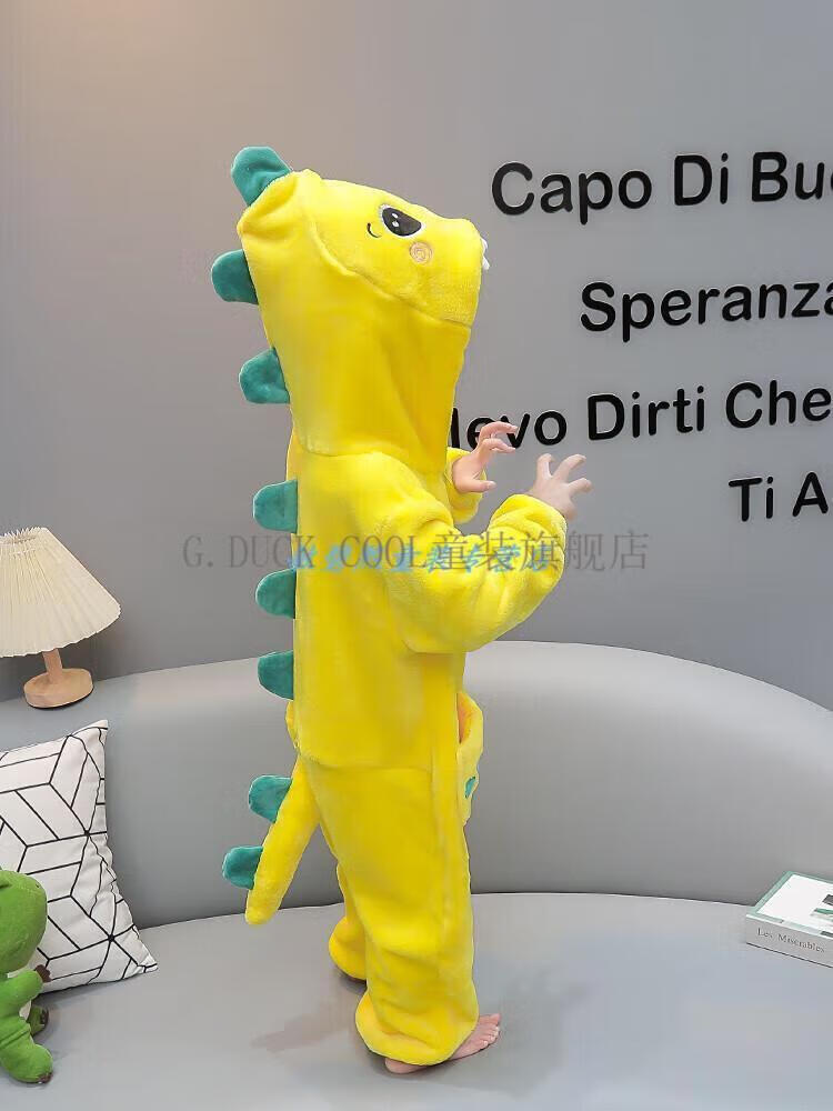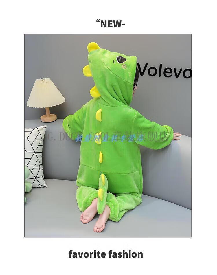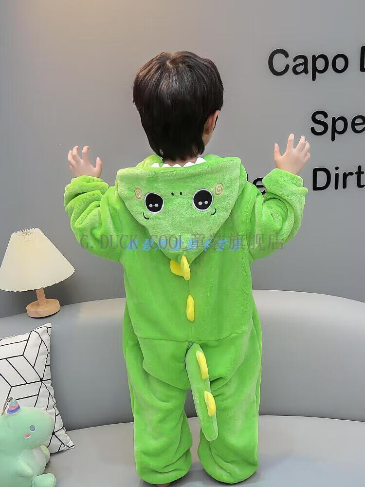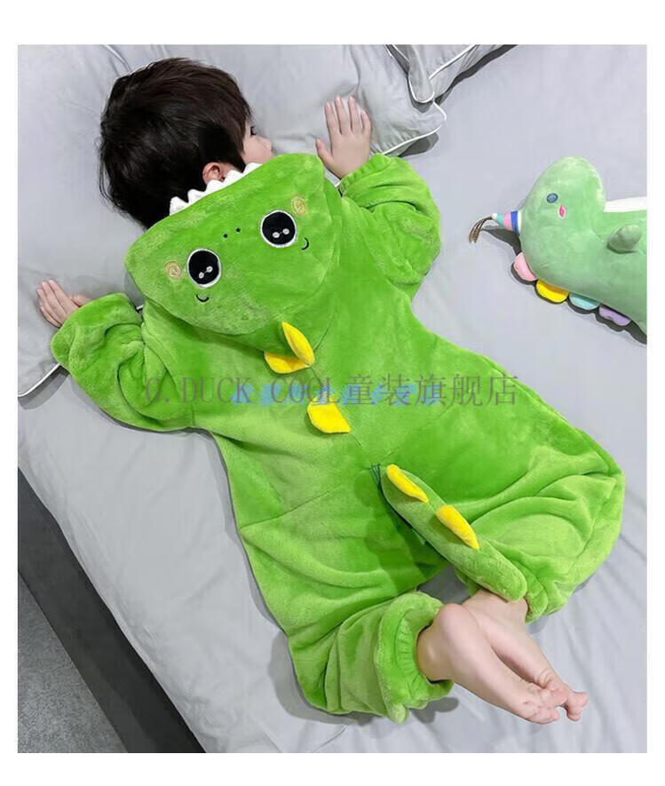 G.DUCKKIDS children's clothing children's pajamas autumn and winter boys and girls home clothes small dinosaur double thickened baby one-piece sleeping bag spring and autumn 2371 dinosaur green flannel 100 size 2~3 years old 90-100cm cm