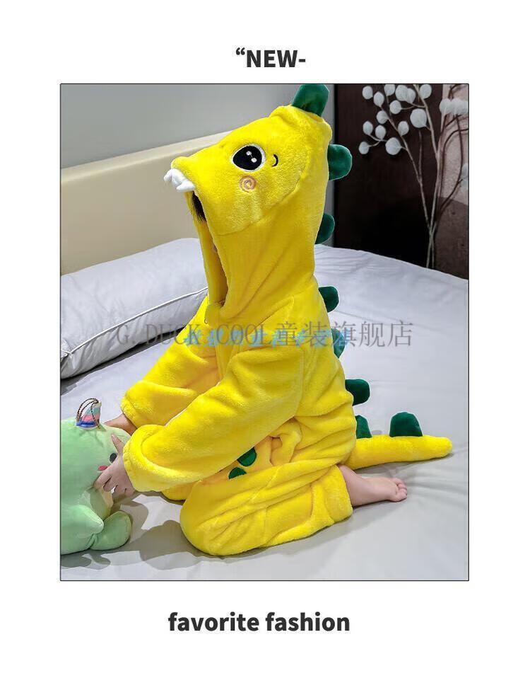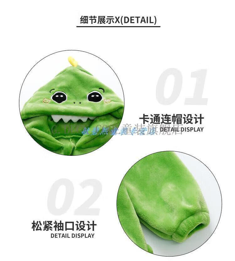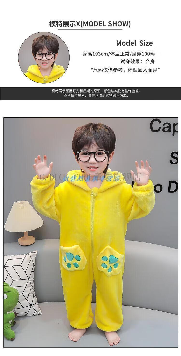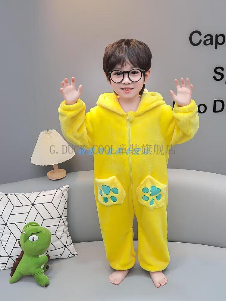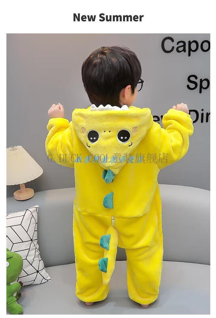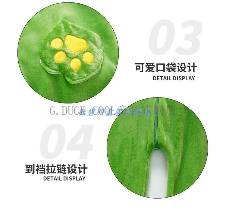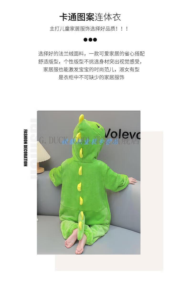 G.DUCKKIDS children's clothing children's pajamas autumn and winter boys and girls home clothes small dinosaur double thickened baby one-piece sleeping bag spring and autumn 2371 dinosaur green flannel 100 size 2~3 years old 90-100cm cm