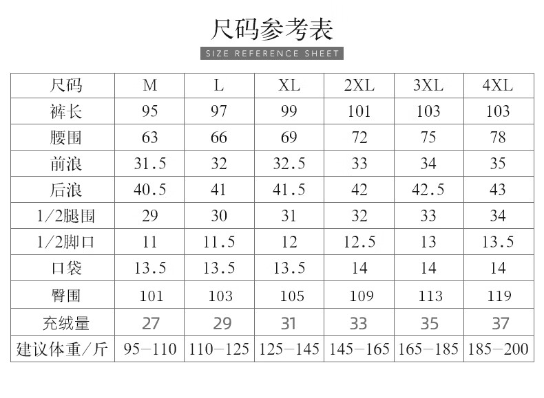 Outseam (cm) 99 cm 101.5 cm 104 cm 106.5 cm 109 cm