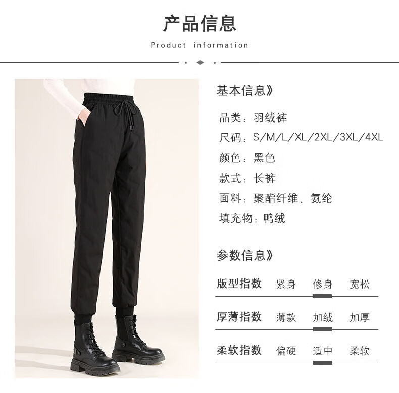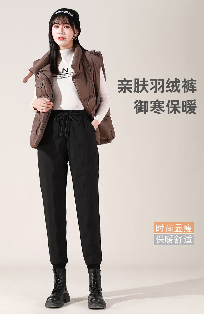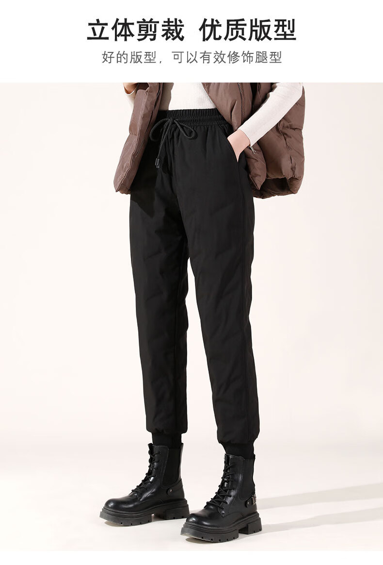 Duck Down Pants Women's Autumn and Winter New Duck Down Sweatpants High Waist Slim Elastic Workwear Cotton Pants Casual Harem Pants Black S