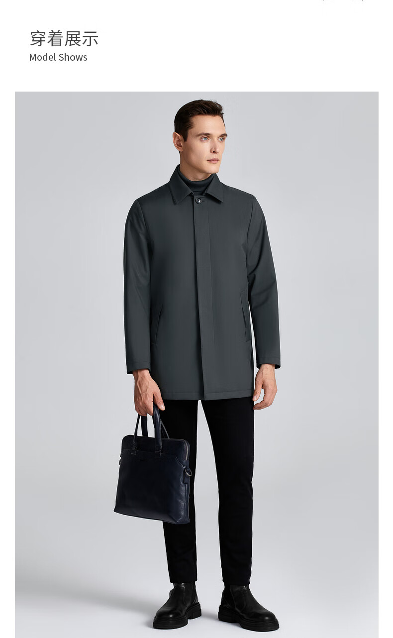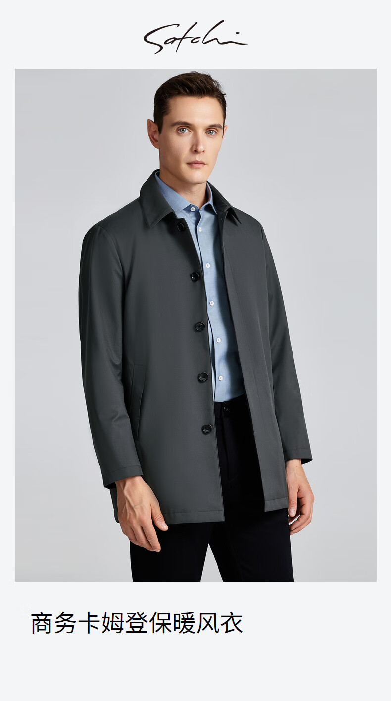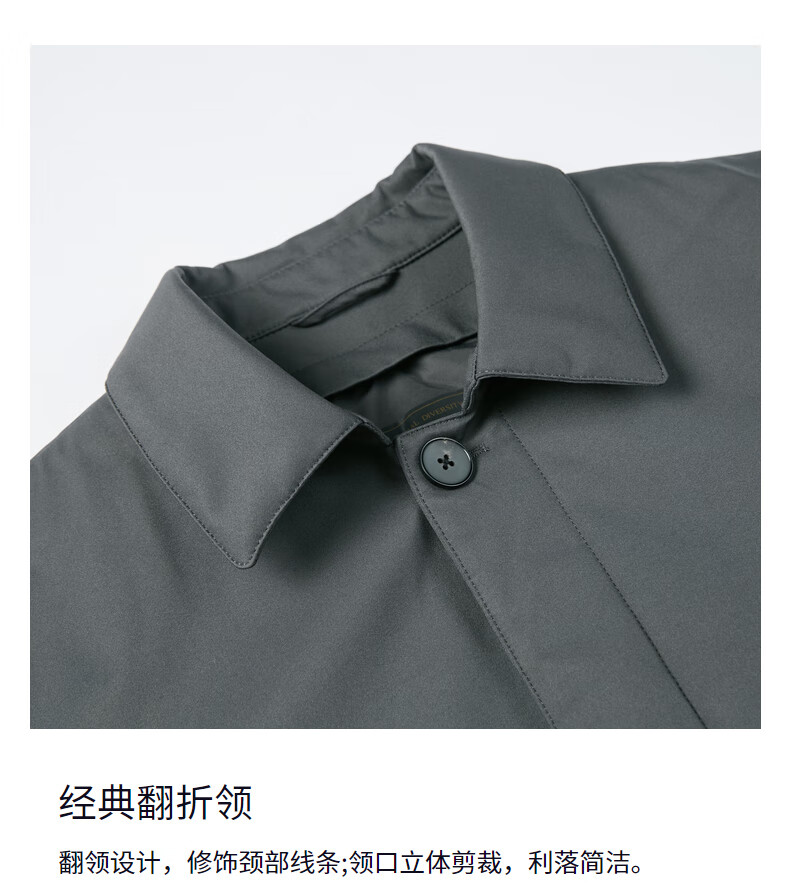 SATCHI Men's Men's Down Windbreaker 2025 Winter New Lapel Duck Down Business Executive Jacket Thick Licorice Gray 50