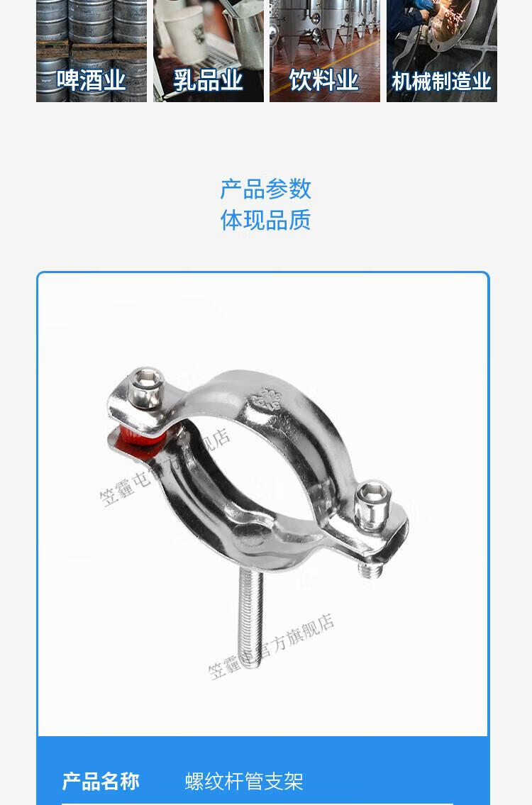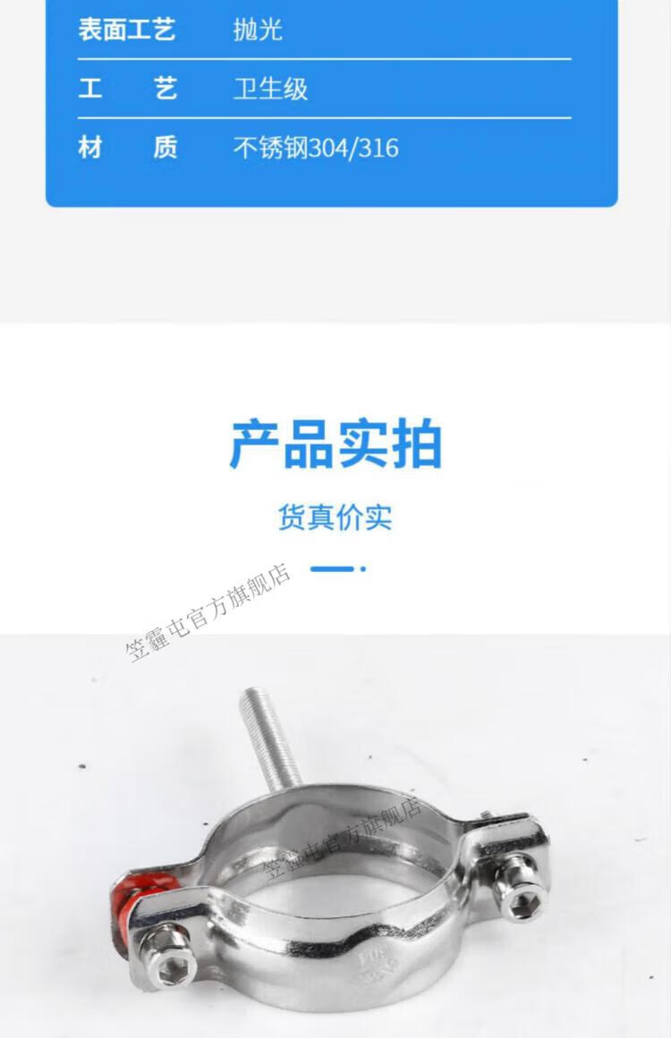 Lihaitun 304 stainless steel buckle pipe bracket threaded rod fixed pipe clamp hoop gas pipe water pipe clamp PVC clamp 219 with M8 screw length 50MM
