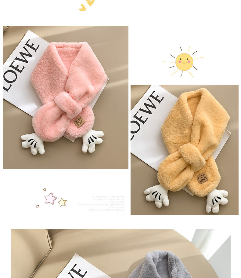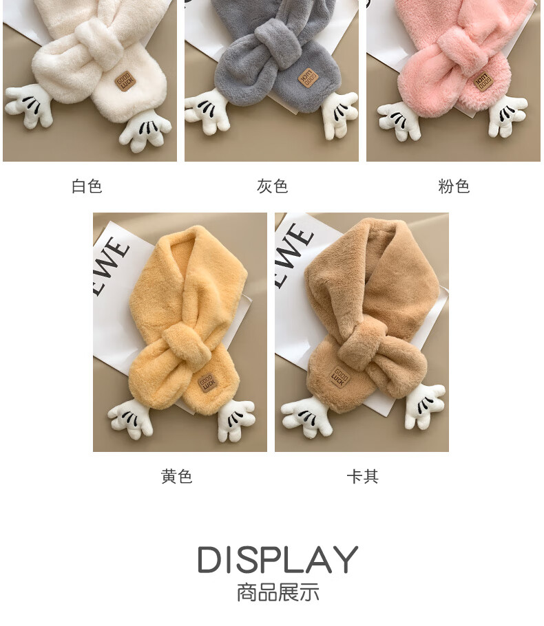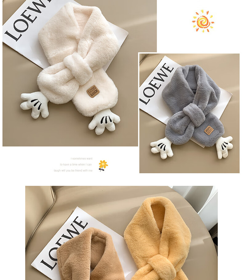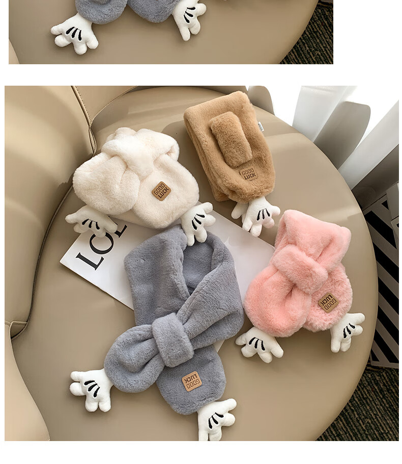 Ribol cartoon cute imitation rabbit fur children's scarf for men and women winter thickened plush scarf baby cross neck gaiter collar white