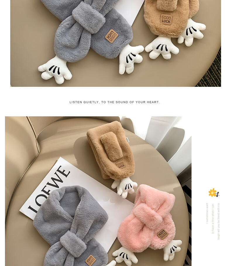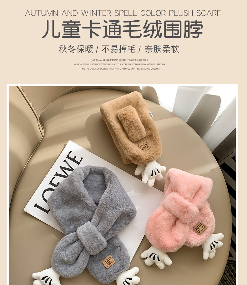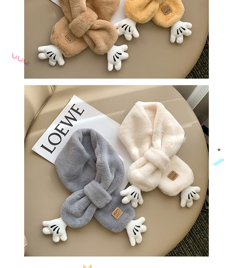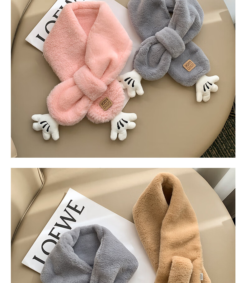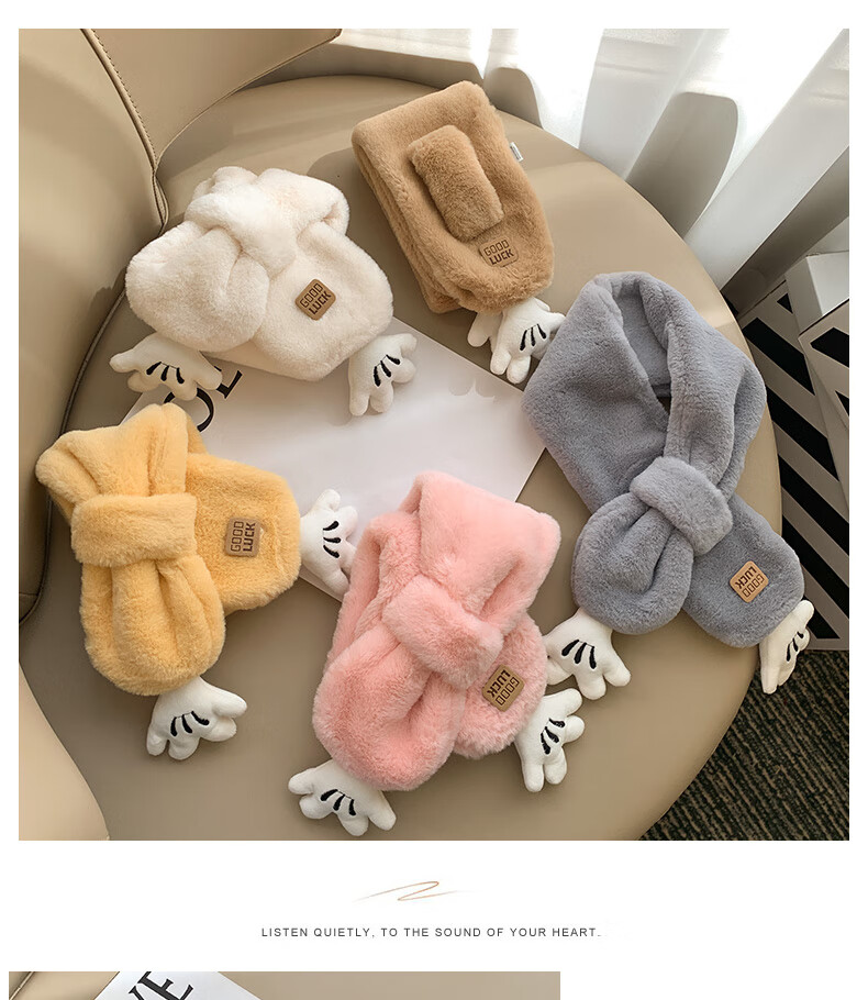 Ribol cartoon cute imitation rabbit fur children's scarf for men and women winter thickened plush scarf baby cross neck gaiter collar white
