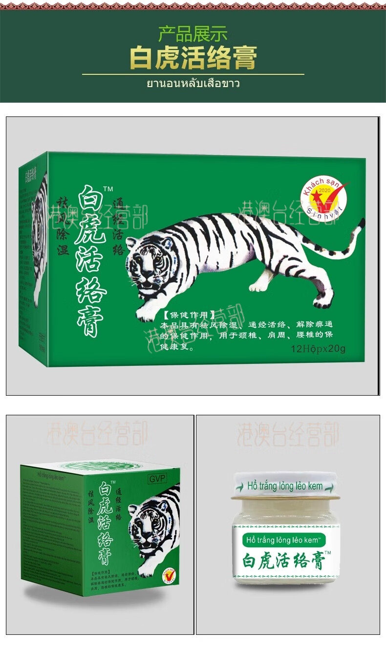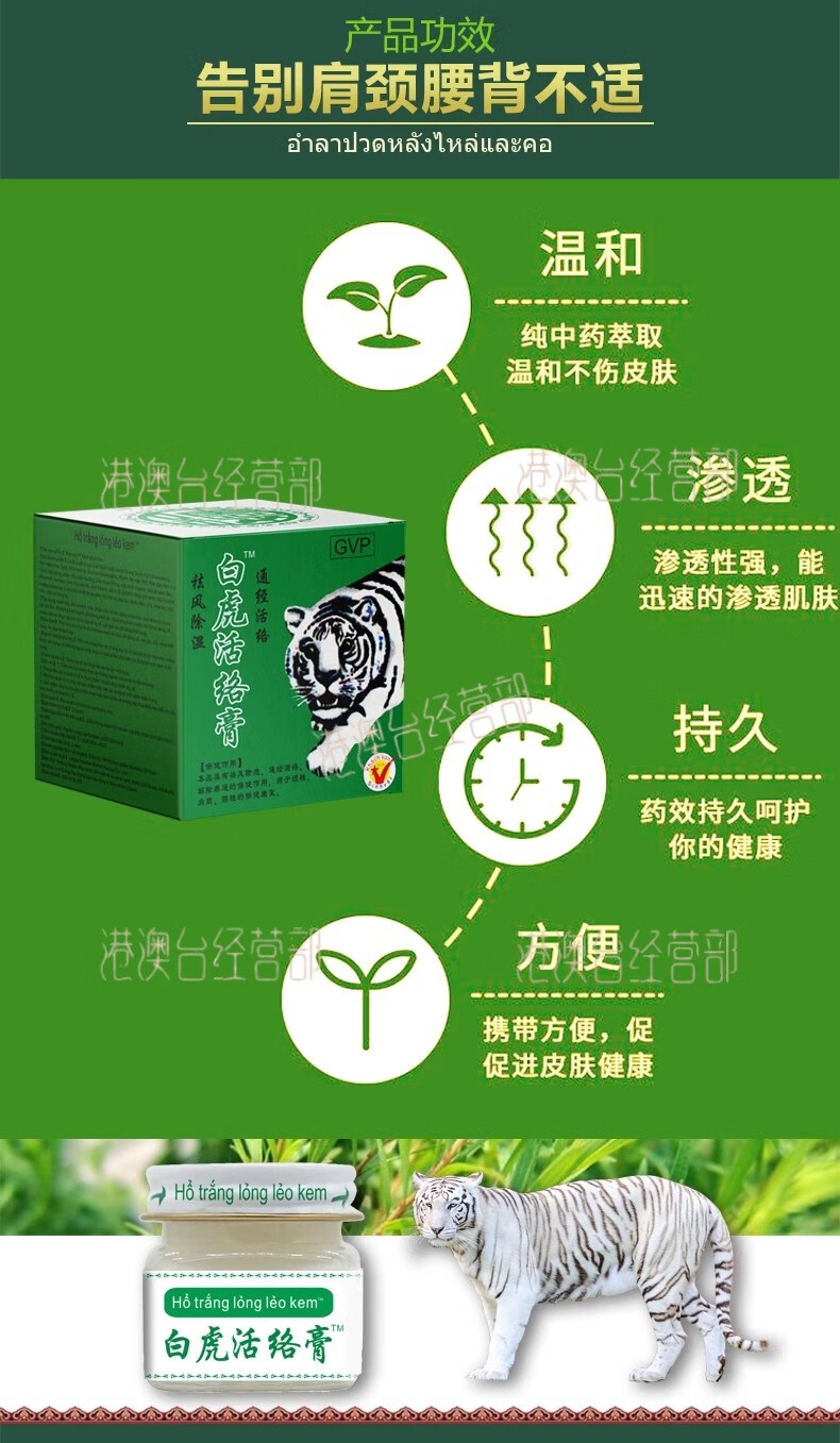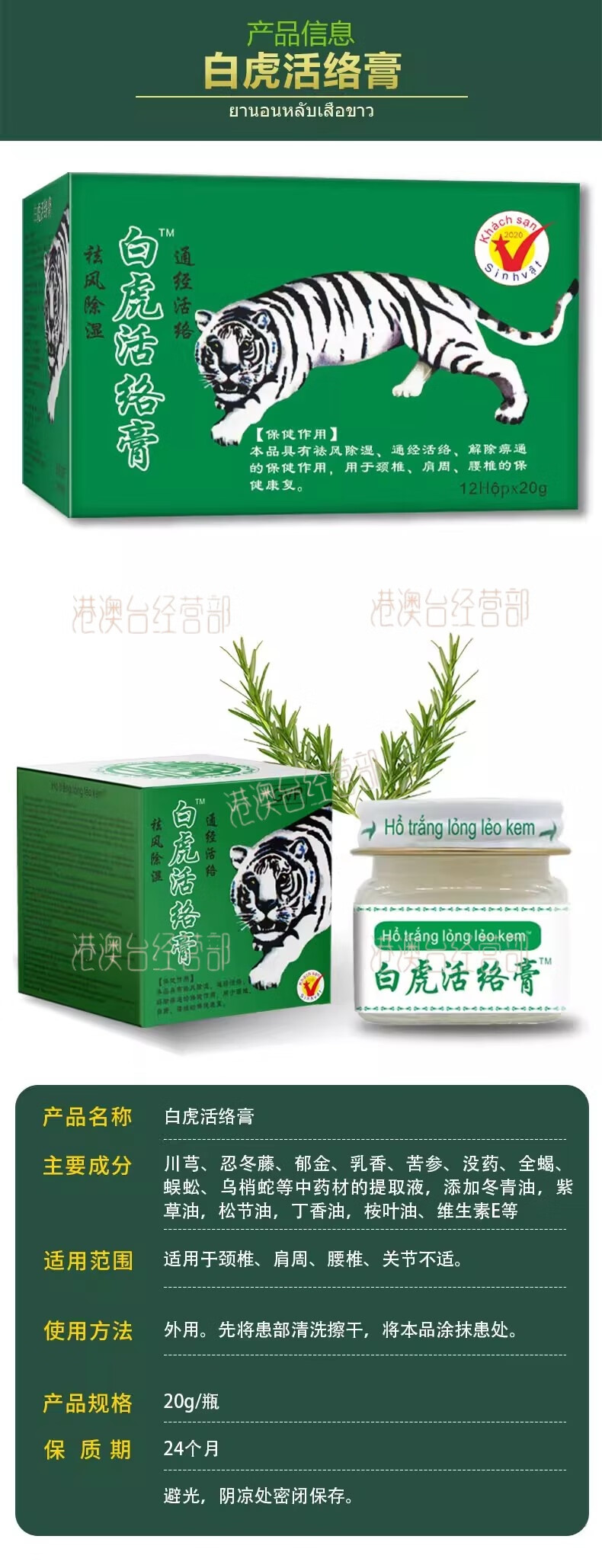 White Tiger Vietnamese White Tiger Huoluo Cream Imported Shanye Biling I Pain Relief Ointment 65g Tiger Cream Shoulder, Neck, Waist and Leg Refreshing White Tiger Huoluo Cream 20g*3 bottles