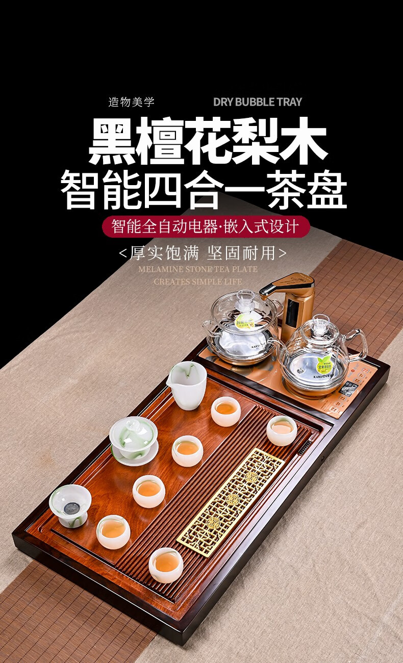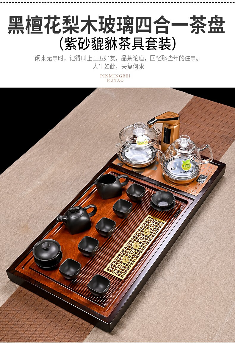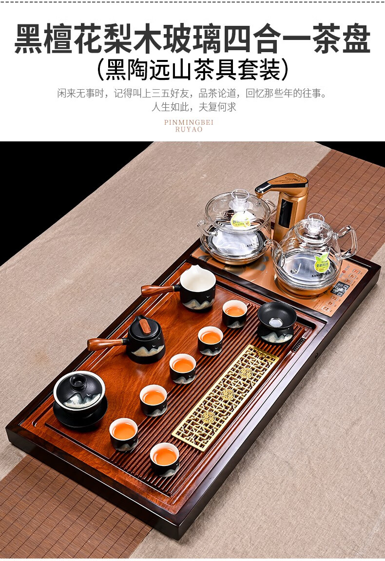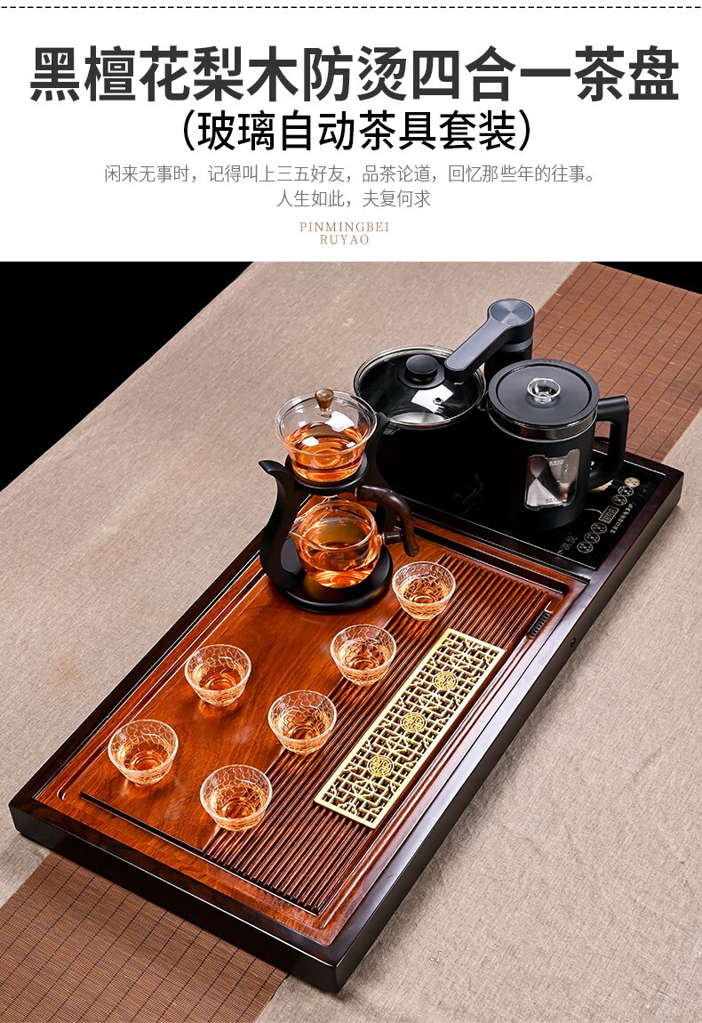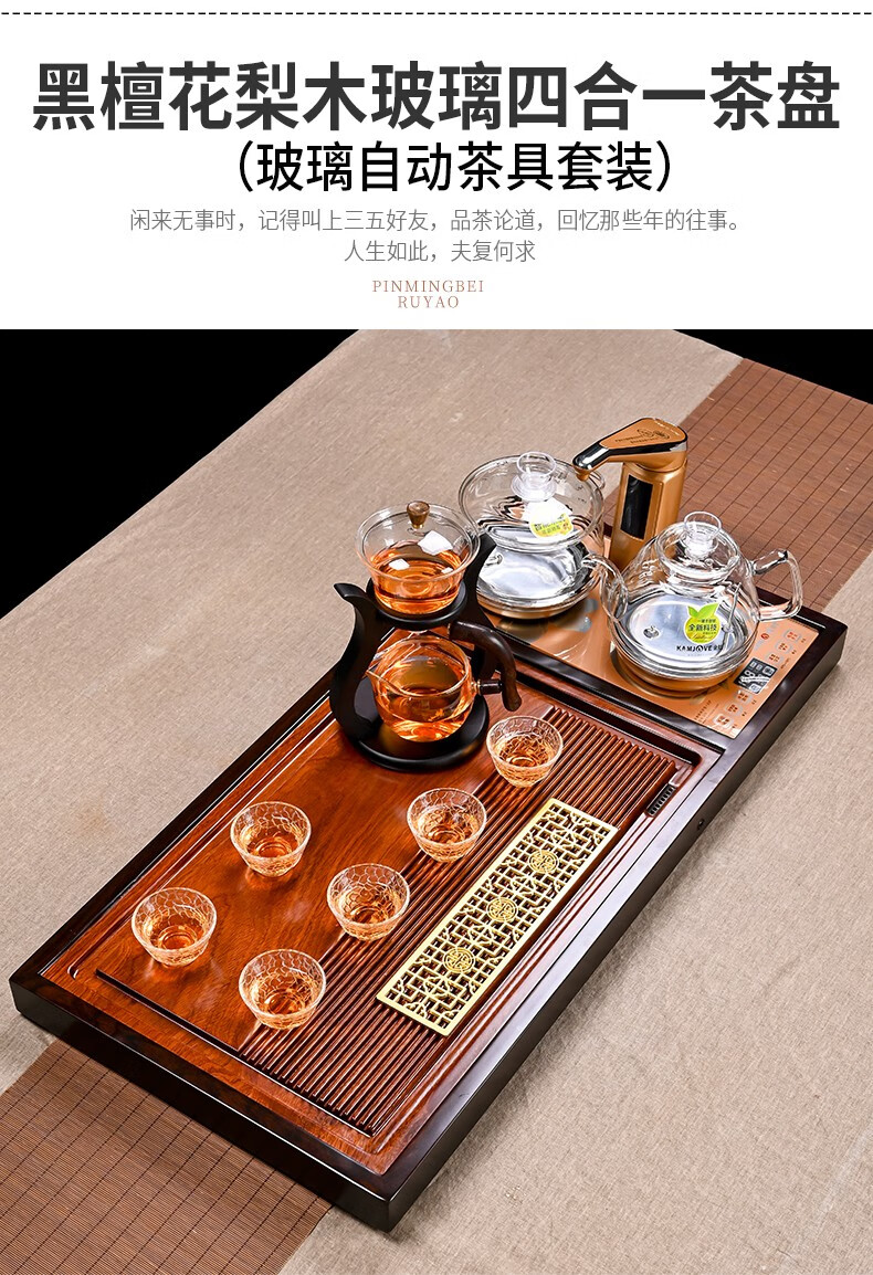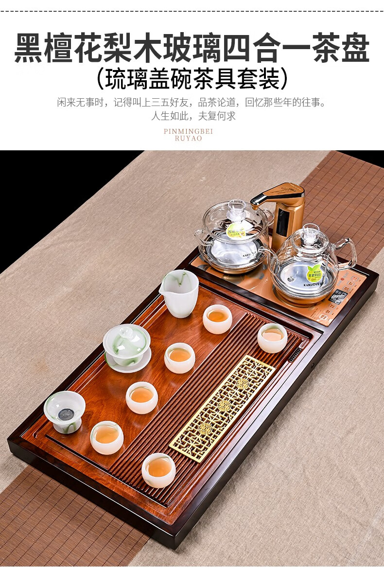 Chengyun Shangzun whole piece ebony rosewood solid wood Kung Fu tea set home simple living room Chinese tea tray fully automatic one classmate G9+ jade glass