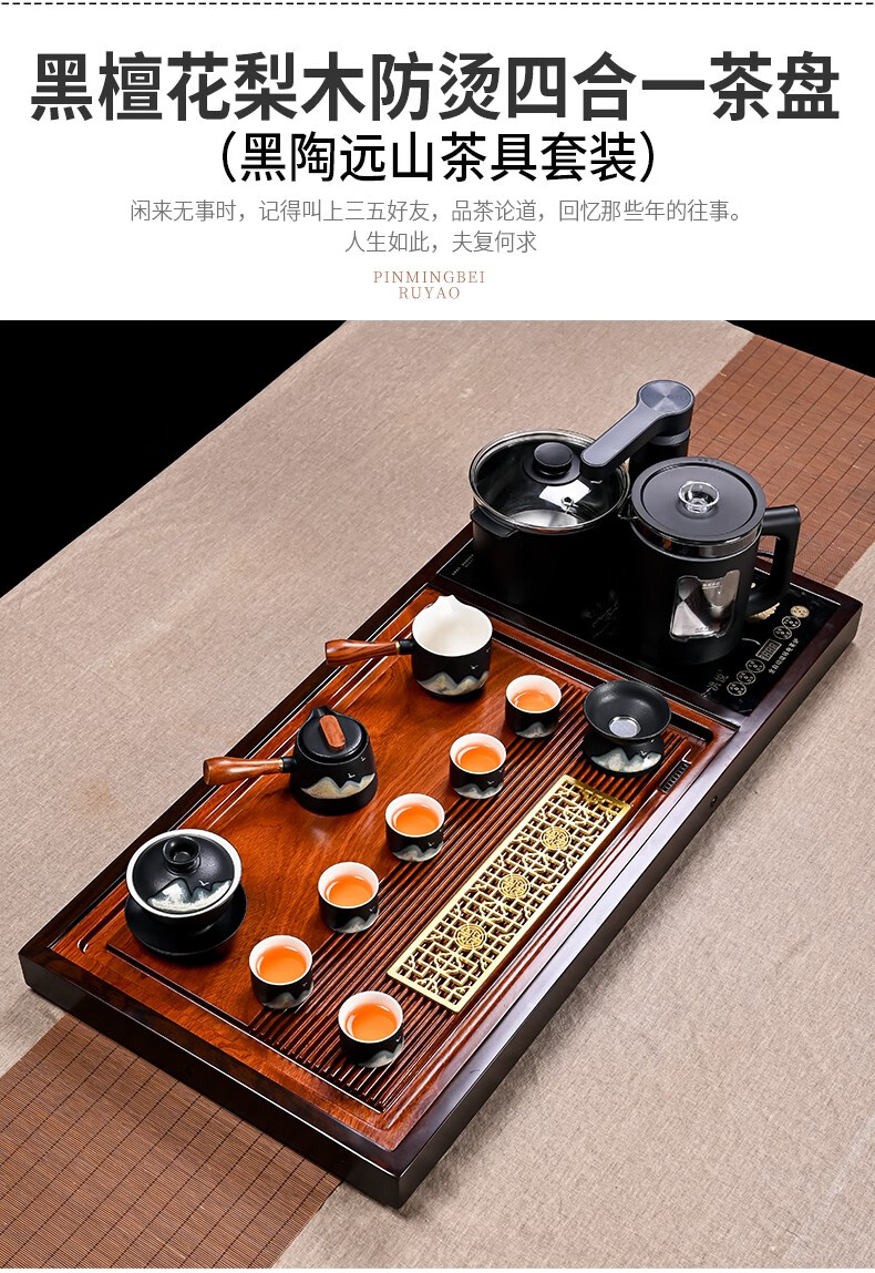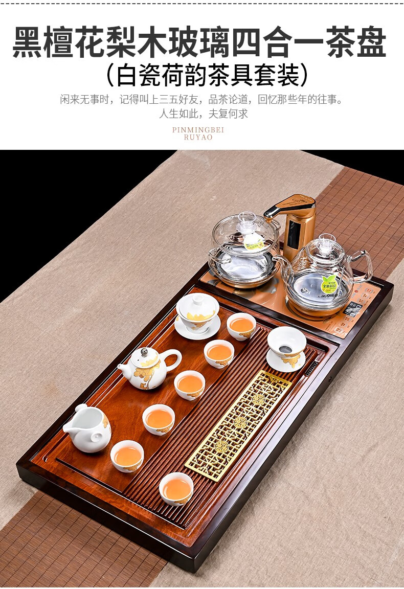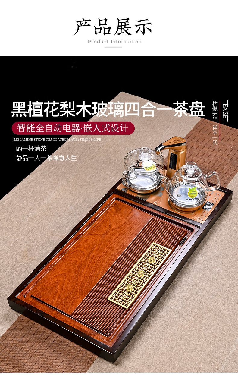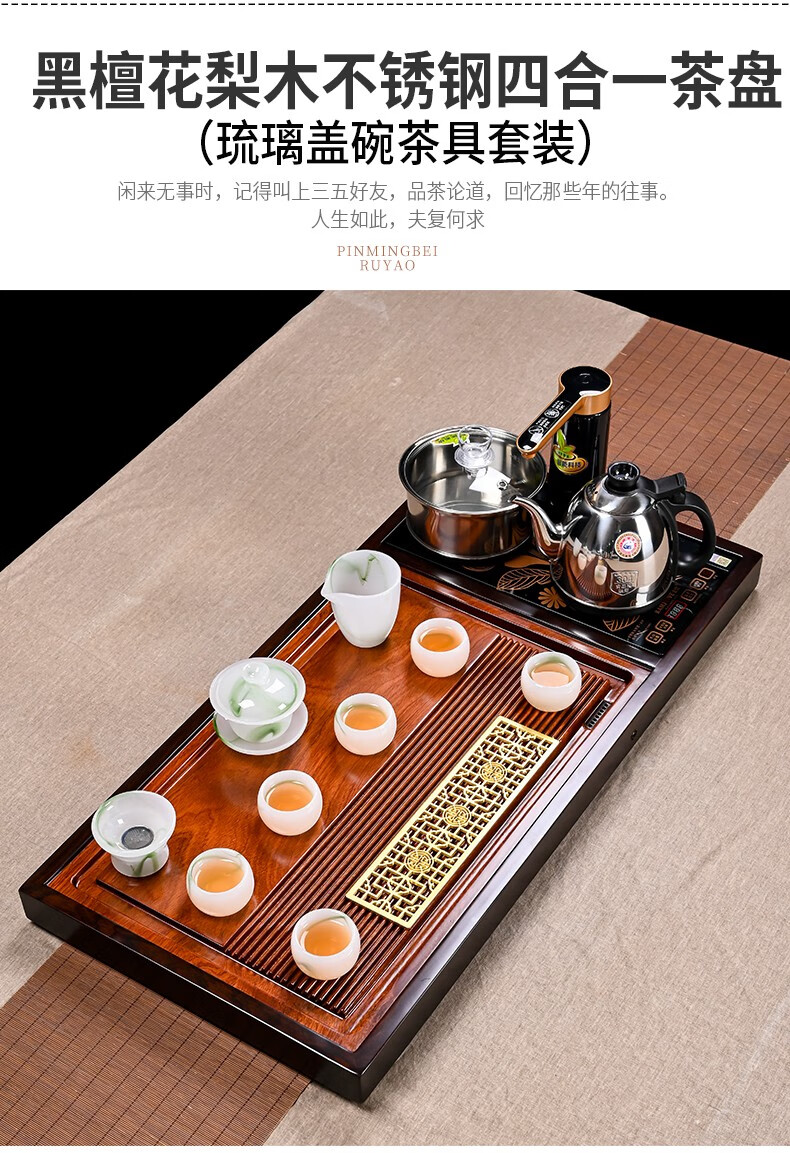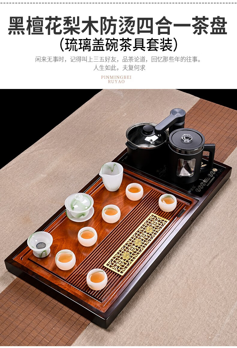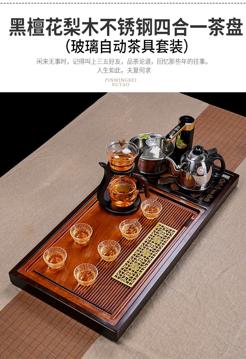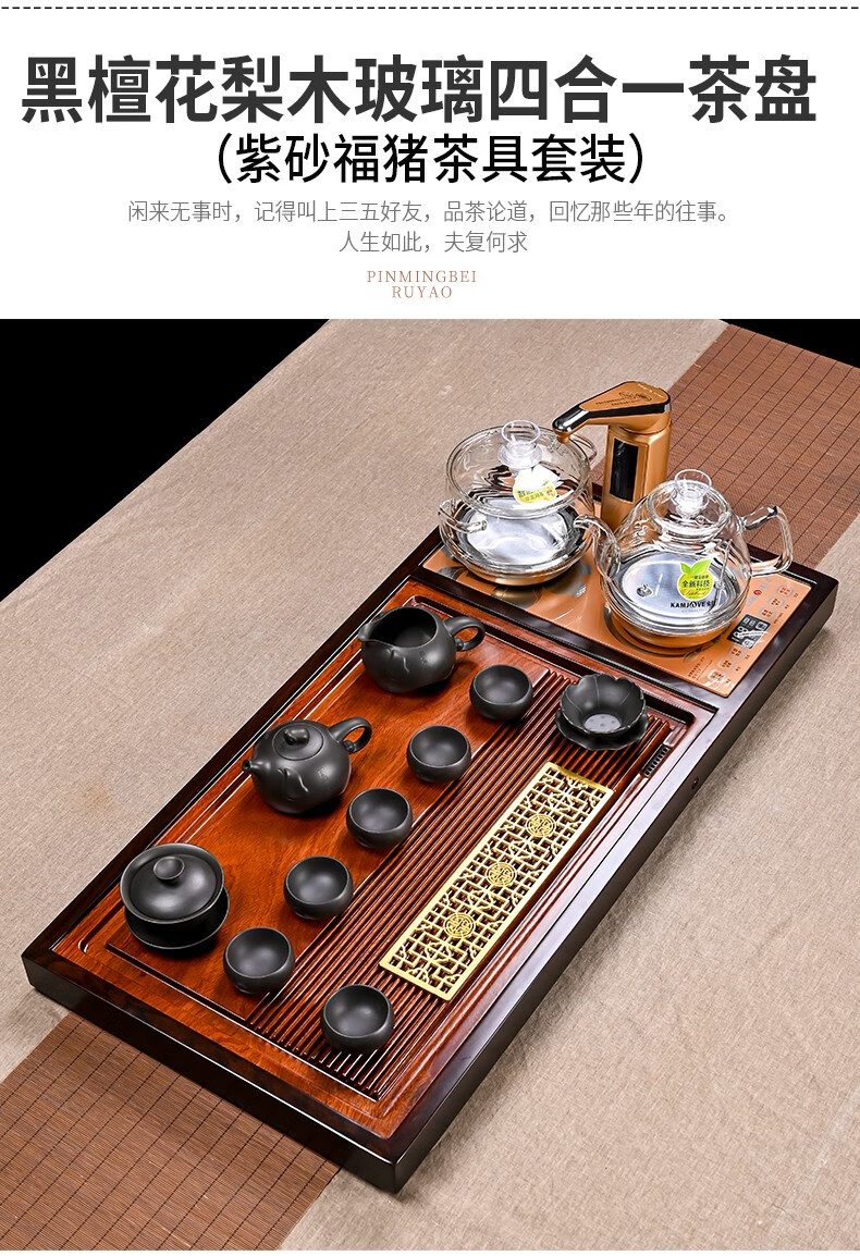 Chengyun Shangzun whole piece ebony rosewood solid wood Kung Fu tea set home simple living room Chinese tea tray fully automatic one classmate G9+ jade glass