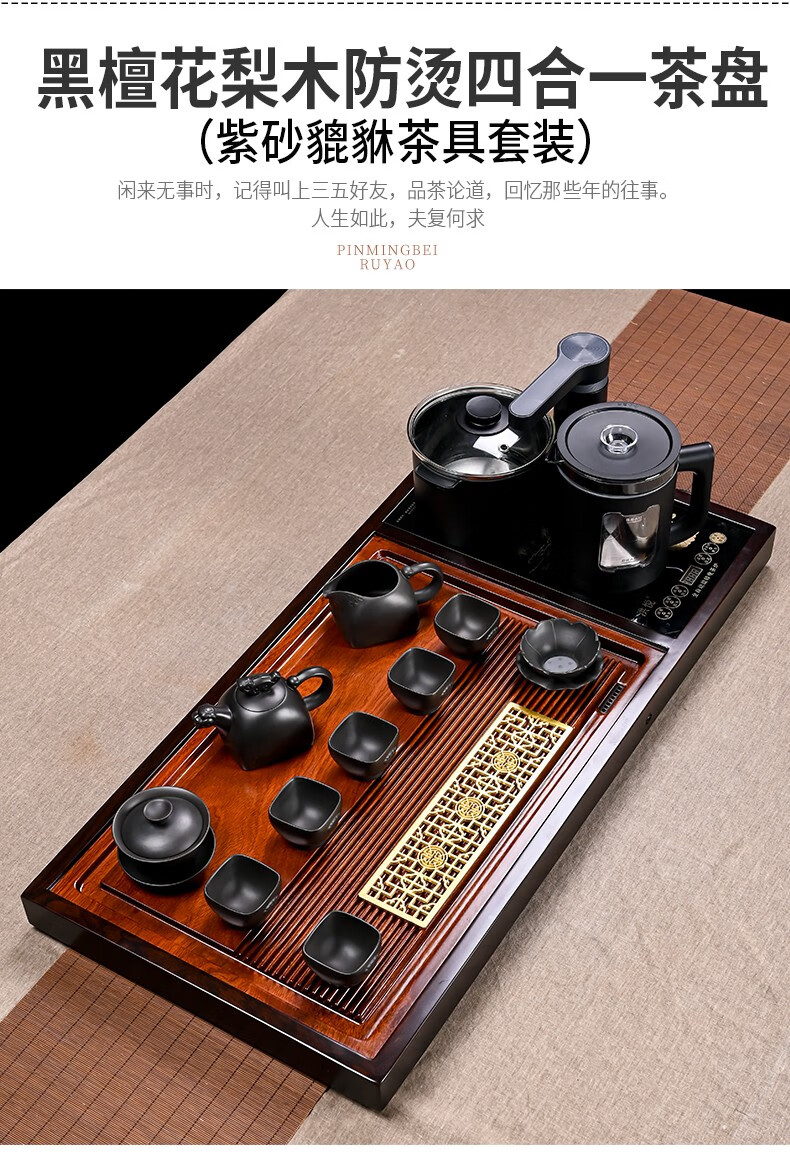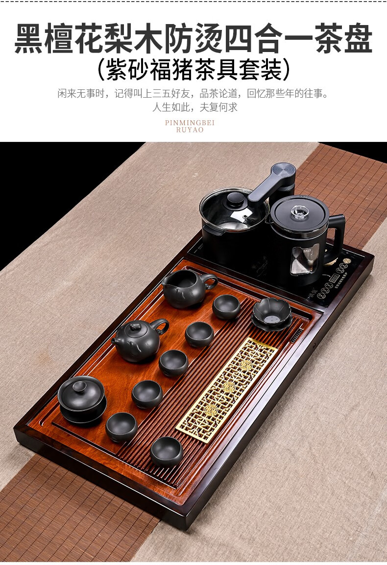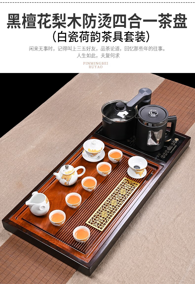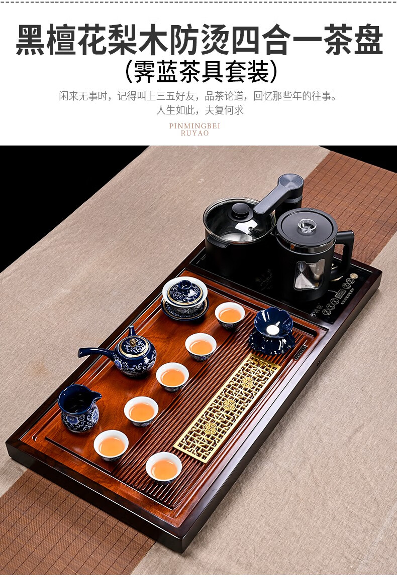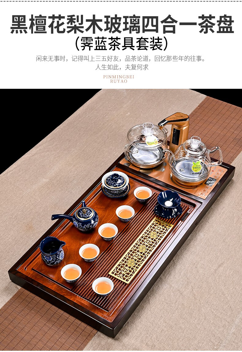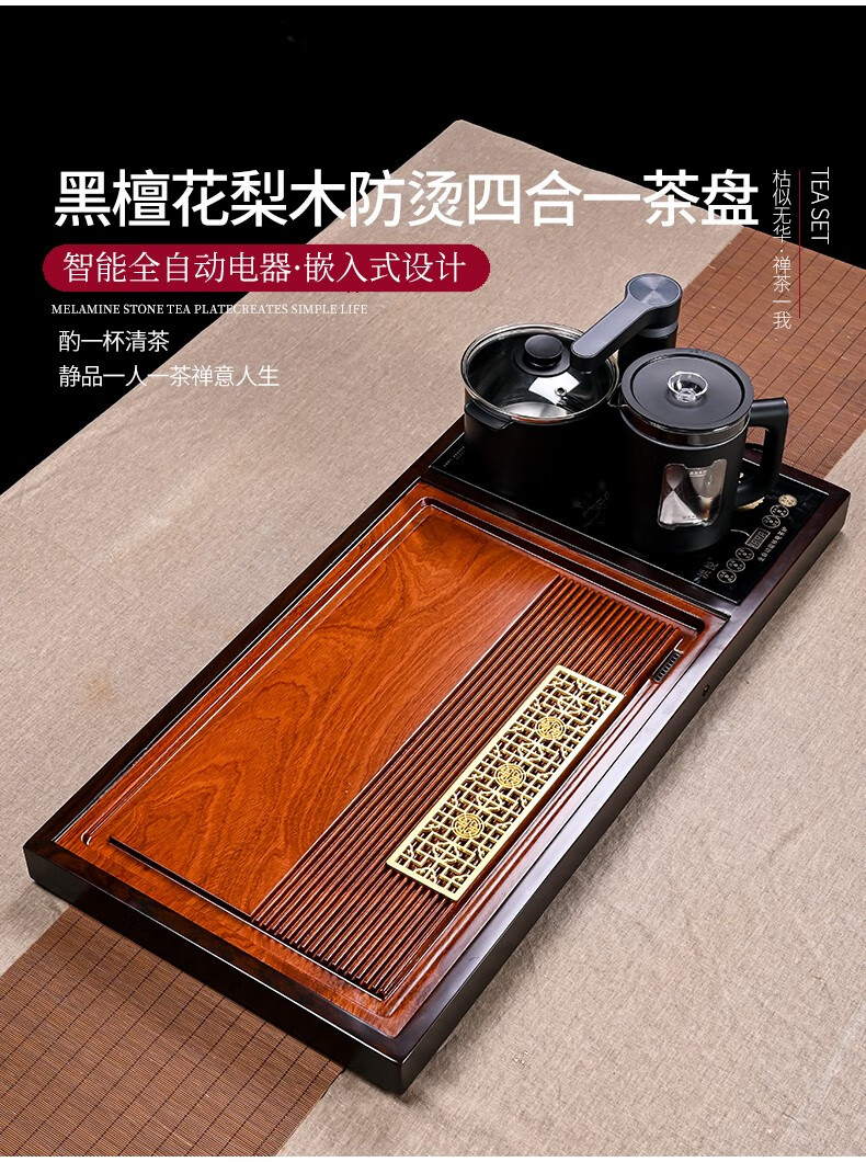 Chengyun Shangzun whole piece ebony rosewood solid wood Kung Fu tea set home simple living room Chinese tea tray fully automatic one classmate G9+ jade glass