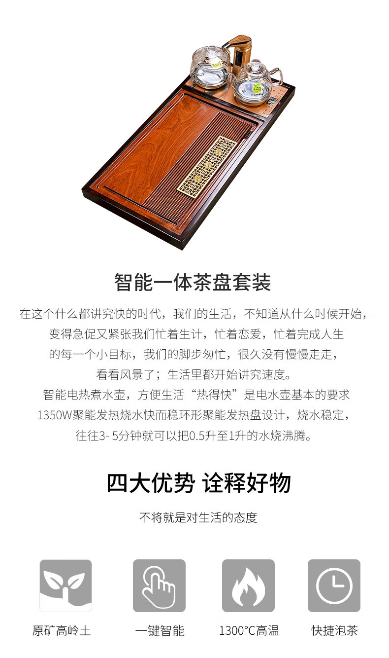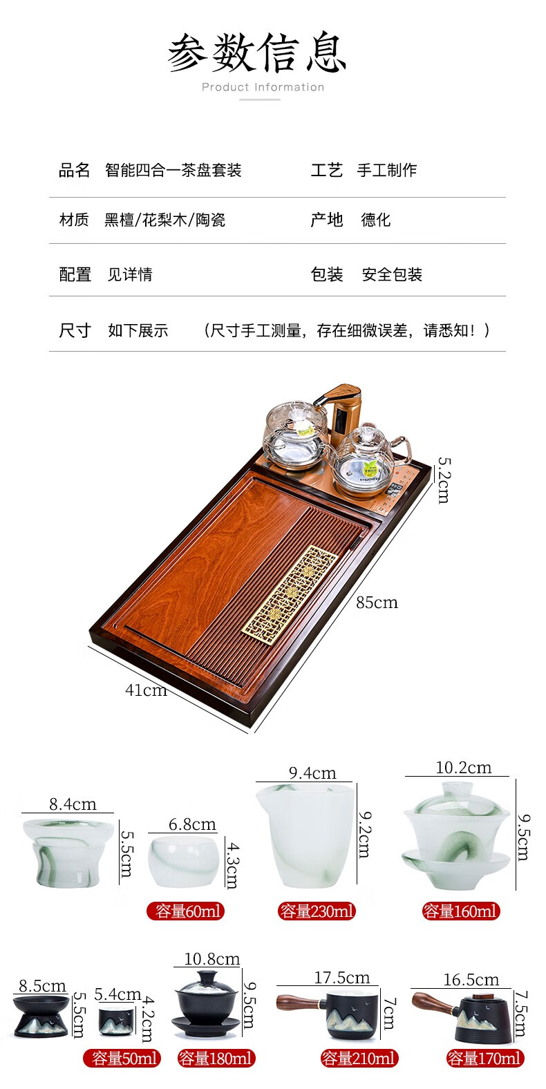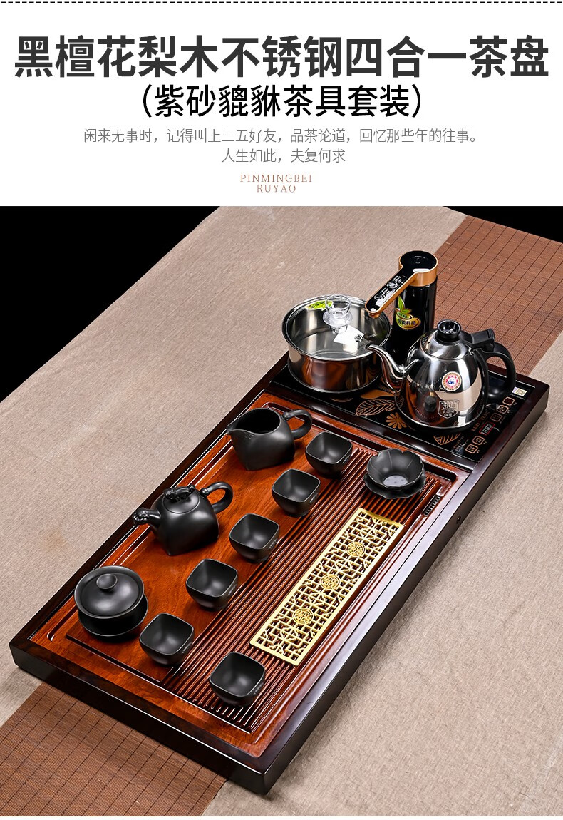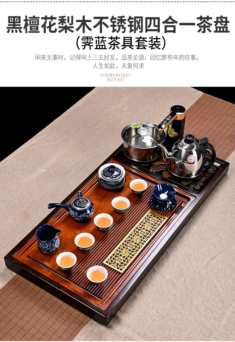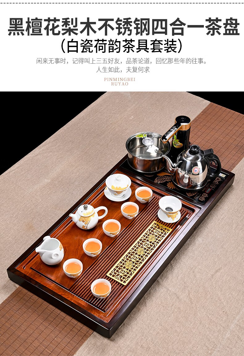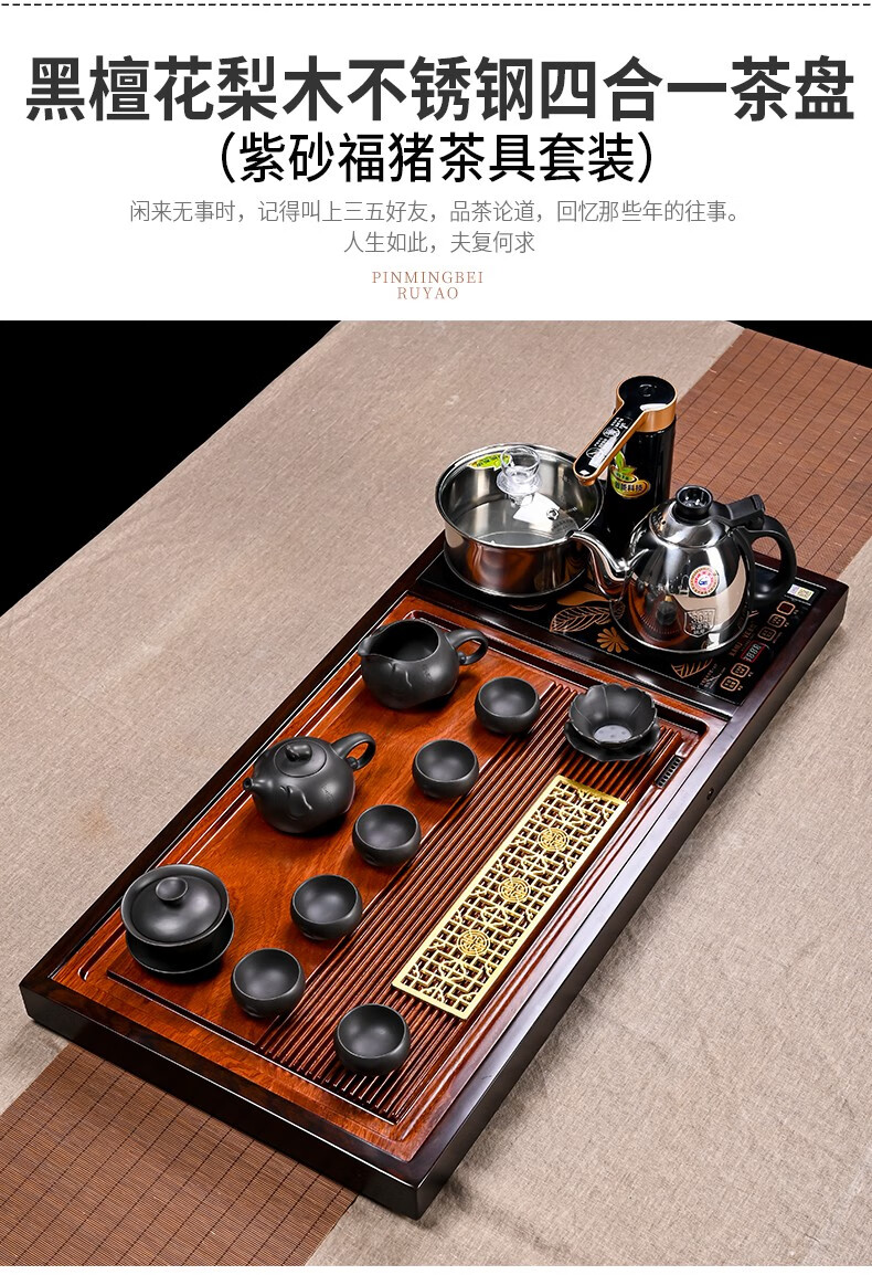 Chengyun Shangzun whole piece ebony rosewood solid wood Kung Fu tea set home simple living room Chinese tea tray fully automatic one classmate G9+ jade glass
