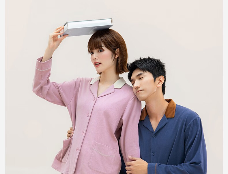Autumn deer couple pajamas for women winter German velvet hot solid color coral velvet color matching v-neck cardigan long-sleeved home wear set lilac purple 148 women XL