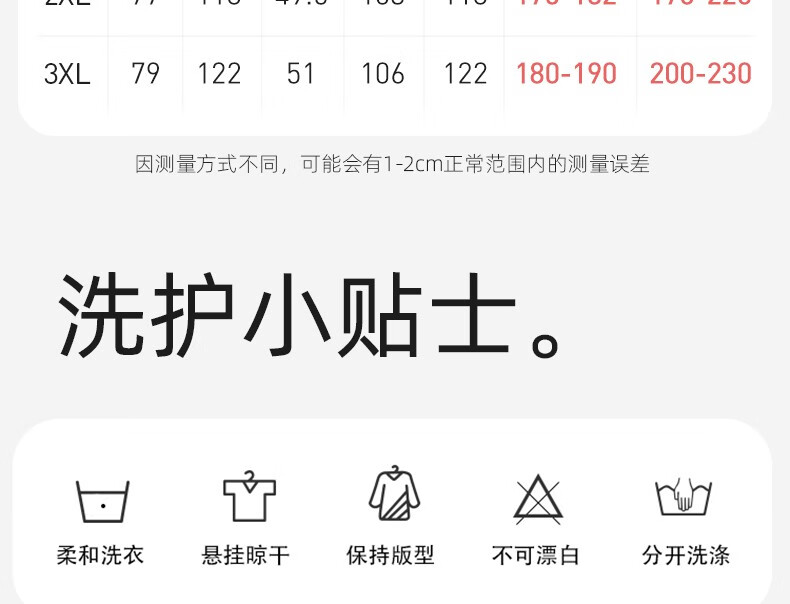 China (cm) 165 / 88-90 170 / 96-98 175 / 108-110 180 / 118-122 185 / 126-130