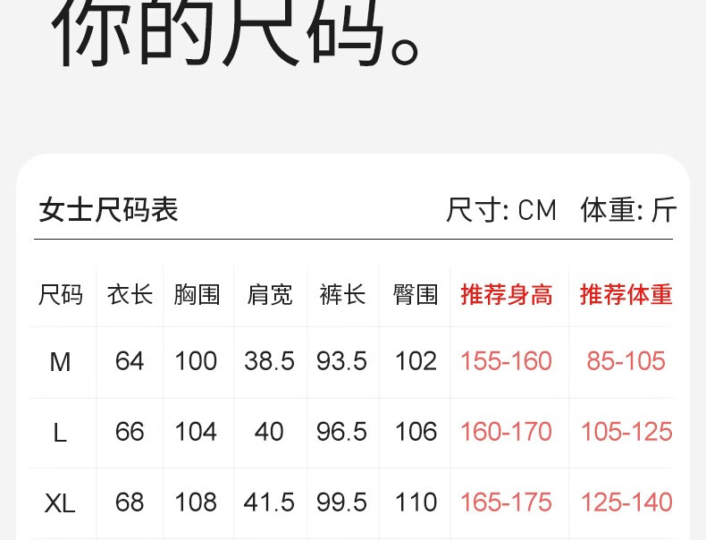 China (cm) 160-165/84-86 165-170 / 88-90 167-172 / 92-96 168-173 / 98-102 170-176 / 106-110