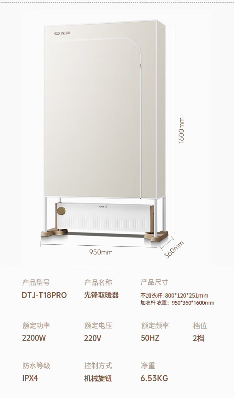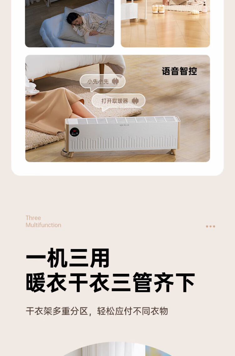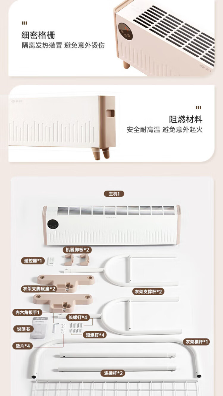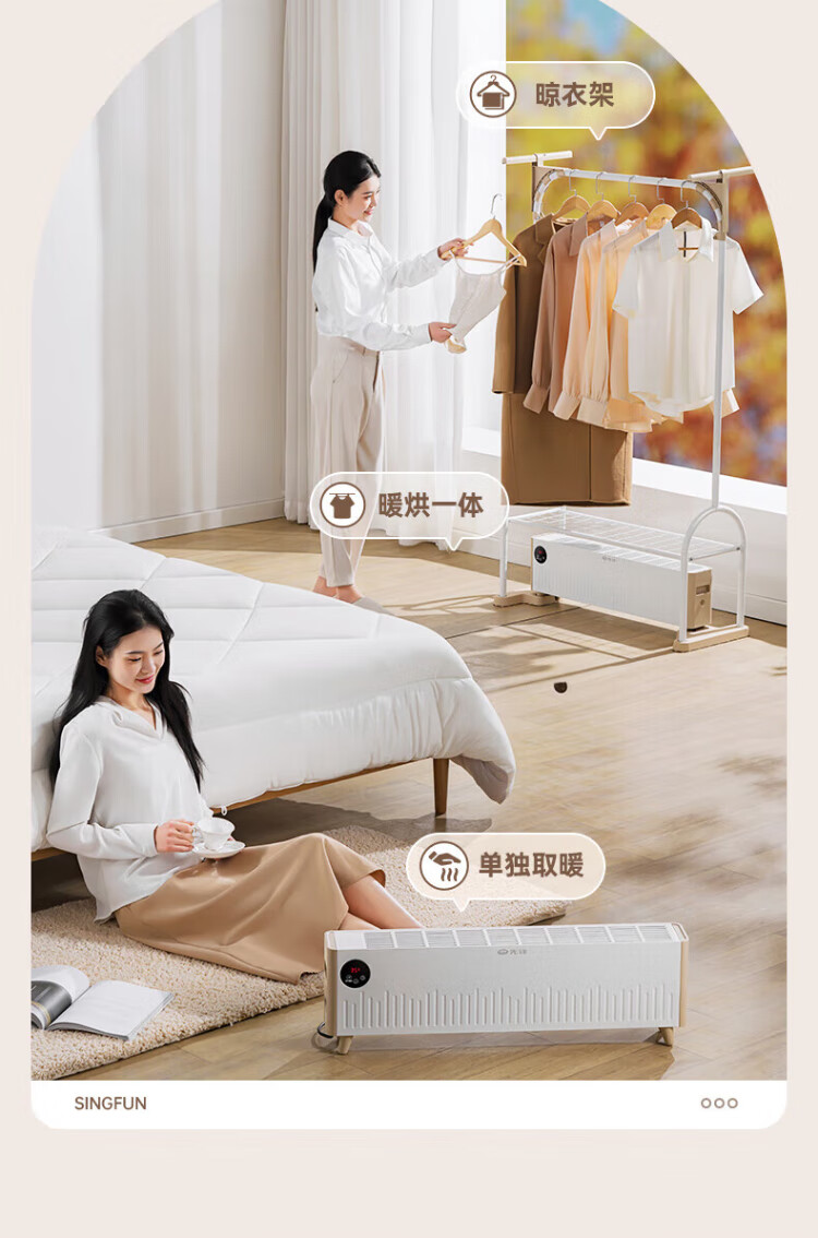 Pioneer (SINGFUN) baseboard heater, household clothes dryer, large area electric heater, living room, bedroom, bathroom, mobile floor heating, electric dryer, heating all-in-one machine, clothes drying rack, electric radiator, mechanical knob model DTJ-T18