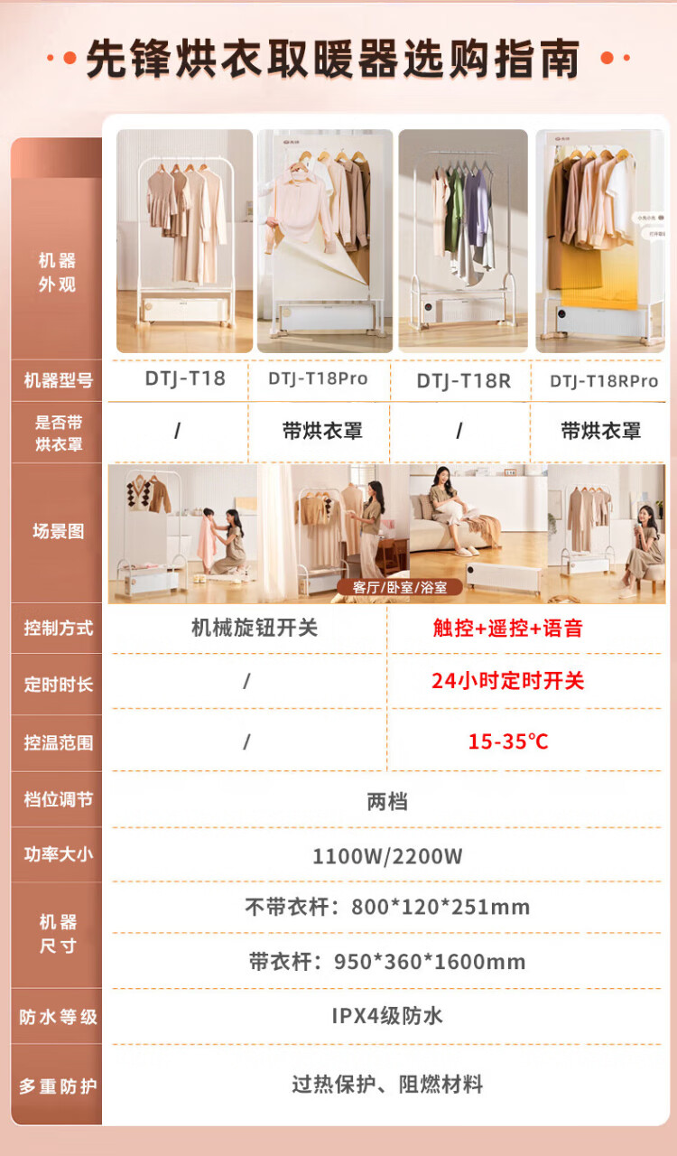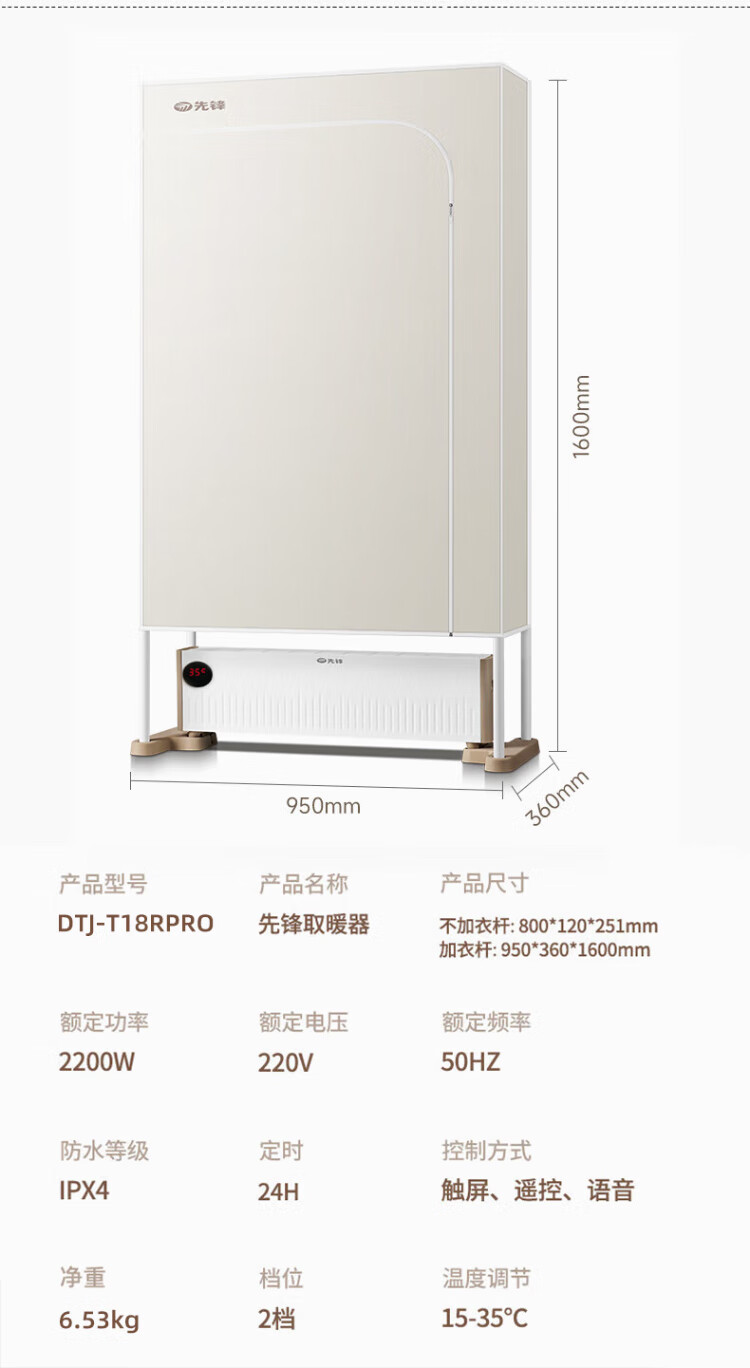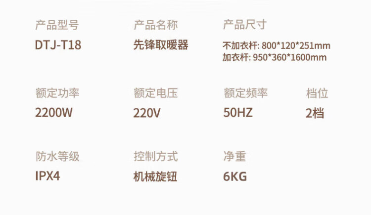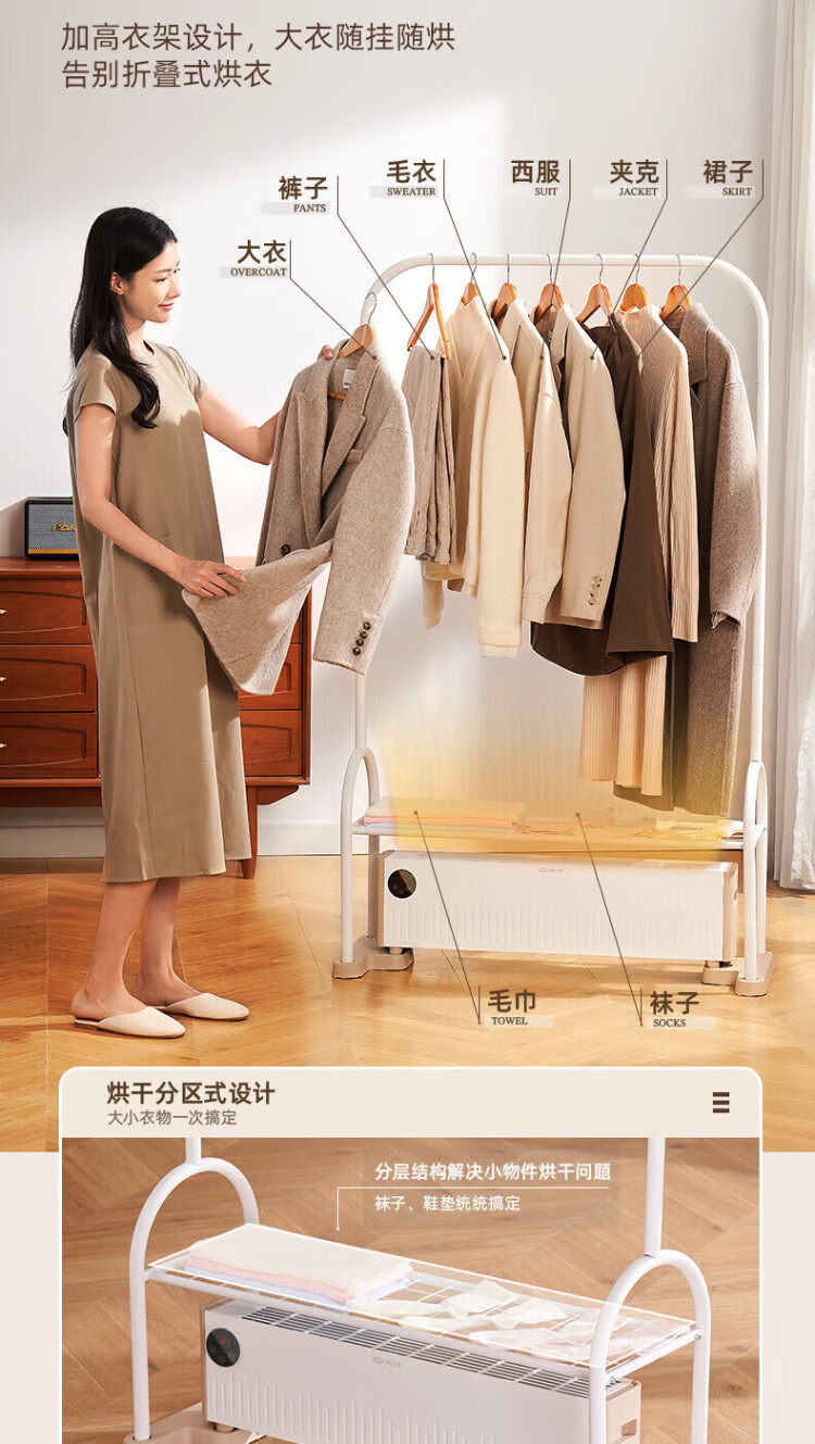 Pioneer (SINGFUN) baseboard heater, household clothes dryer, large area electric heater, living room, bedroom, bathroom, mobile floor heating, electric dryer, heating all-in-one machine, clothes drying rack, electric radiator, mechanical knob model DTJ-T18