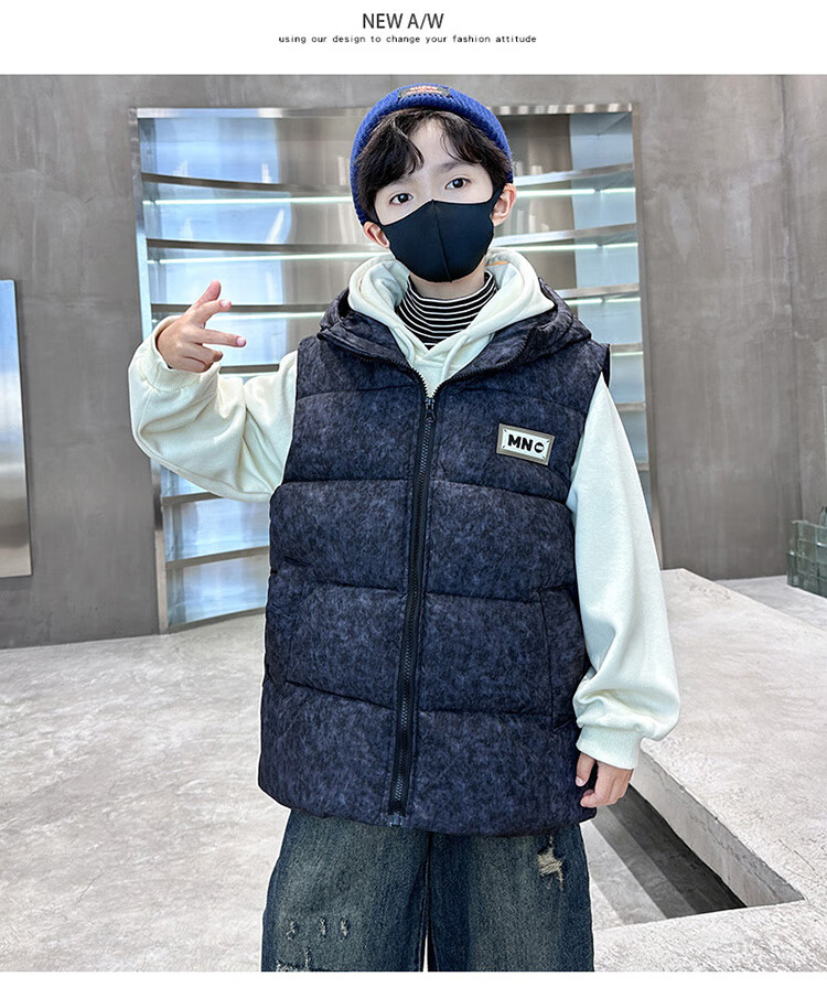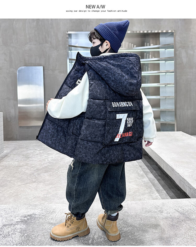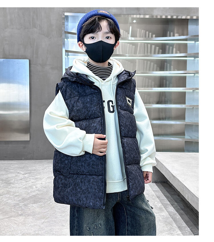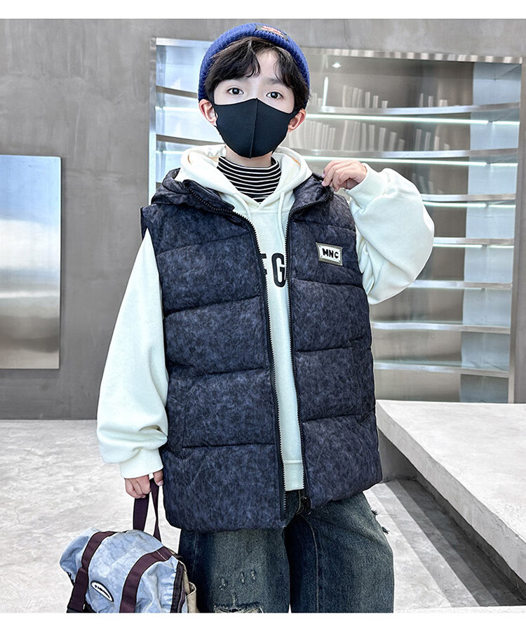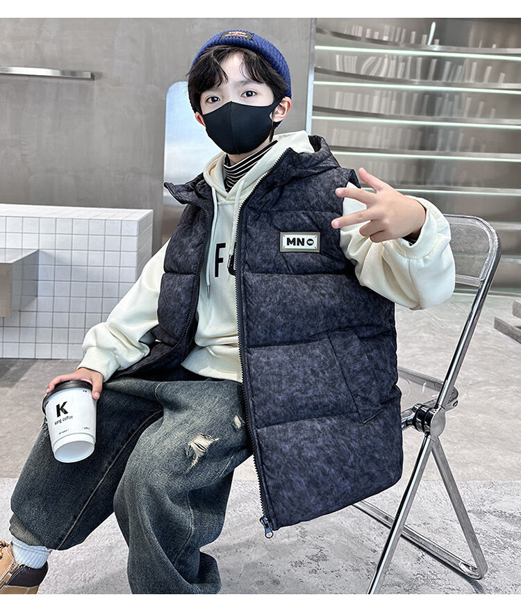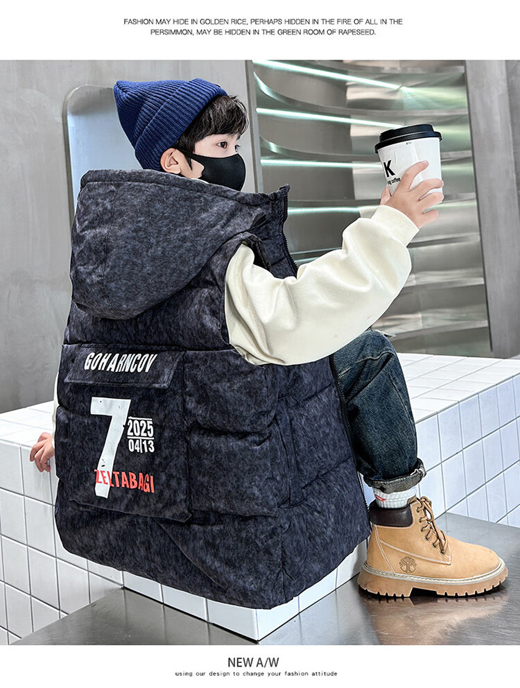 Katu Blue Cat Boys Cotton Vest Autumn and Winter Thickened 2025 New Large Children's Vest Jacket Winter Children's Warm Vest Outer Wear 2302 Model Black 140