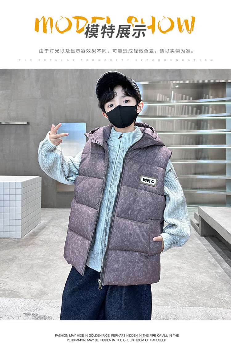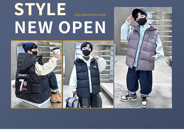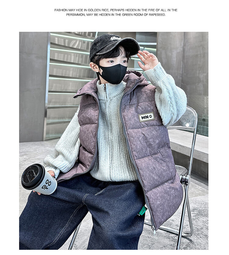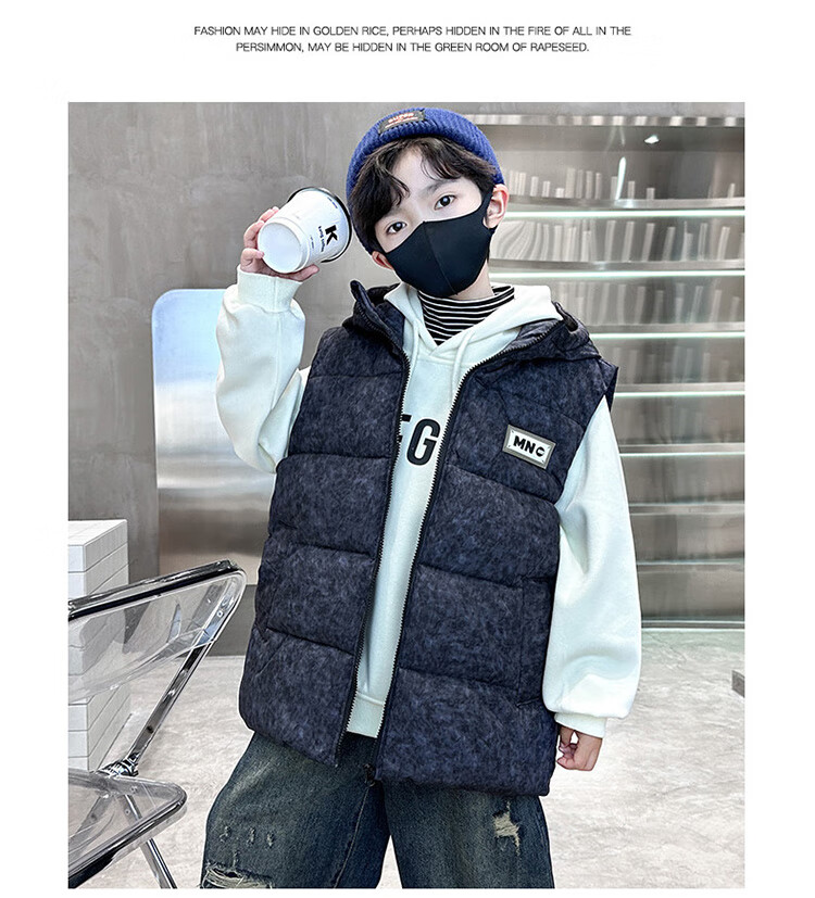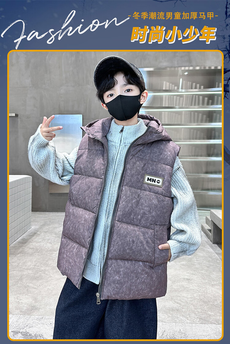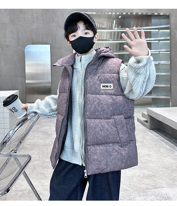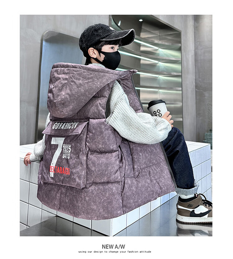 Katu Blue Cat Boys Cotton Vest Autumn and Winter Thickened 2025 New Large Children's Vest Jacket Winter Children's Warm Vest Outer Wear 2302 Model Black 140
