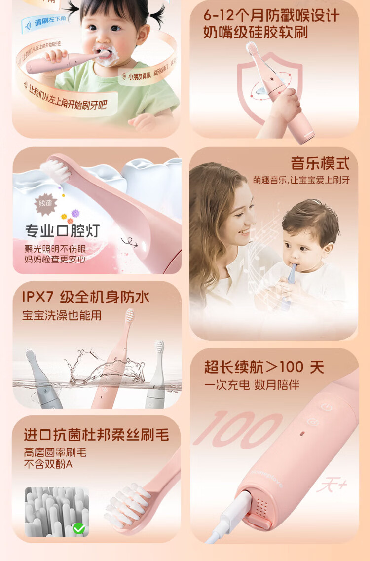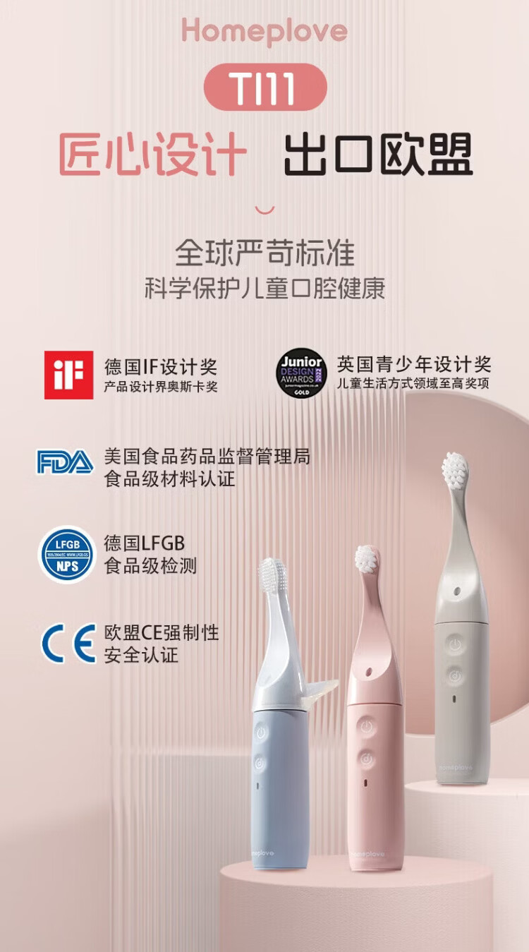 Homeplove Children's Electric Toothbrush 0-3-6 Years Old British Design Gold Award Voice Reminder Sonic Soft Bristles Fully Automatic Musical Toothbrush Infant Enlightenment Electric Toothbrush Blue 1-3 Years Old* Get 4 Brush Heads + Wall Mount