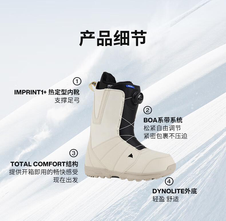 BURTON Burton official men's MOTO BOA ski shoes cushioning and comfortable snowboard novice equipment 131761 13176109100 42.5