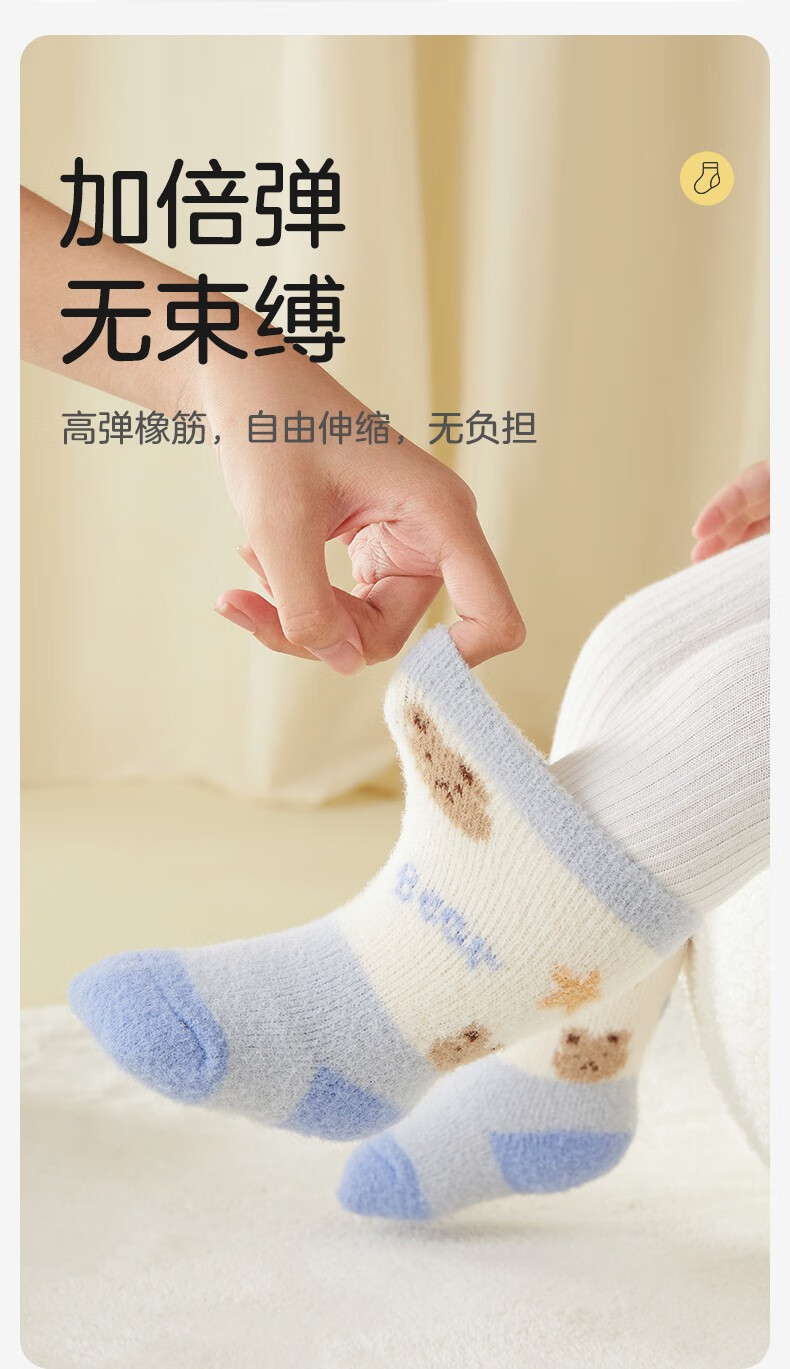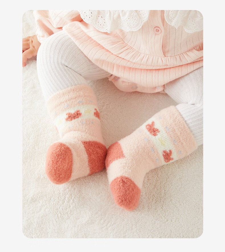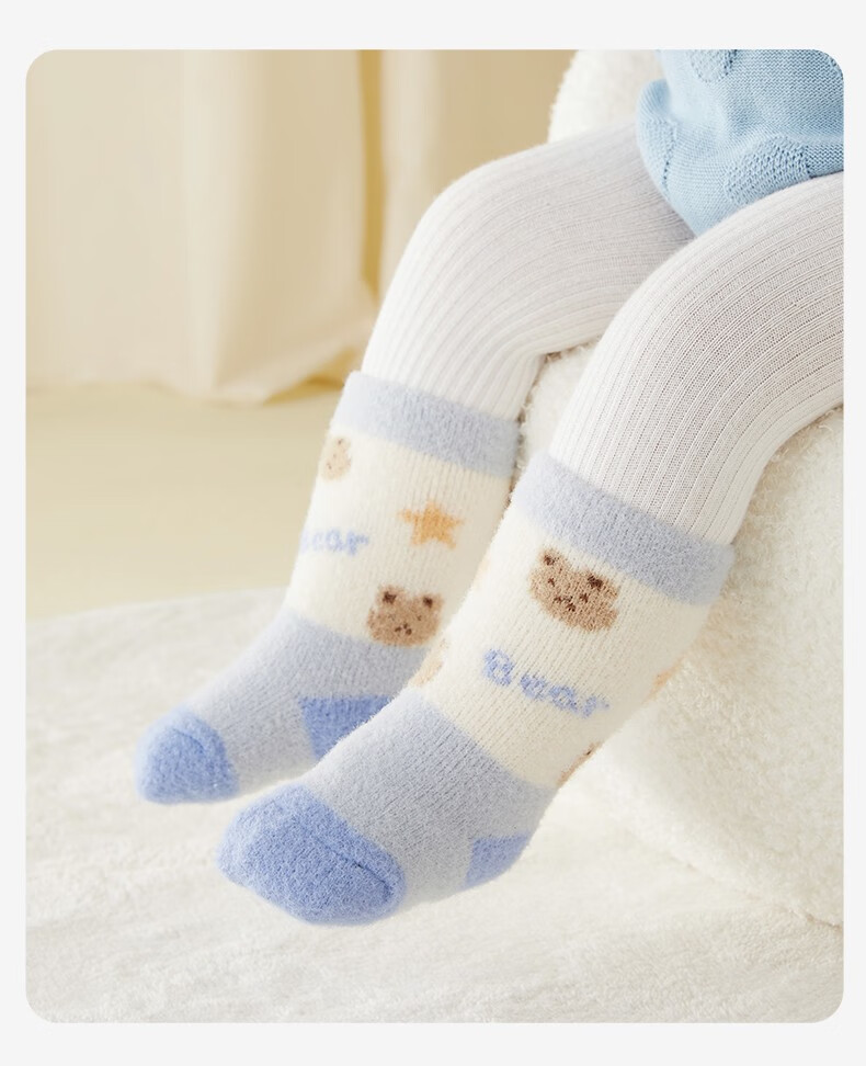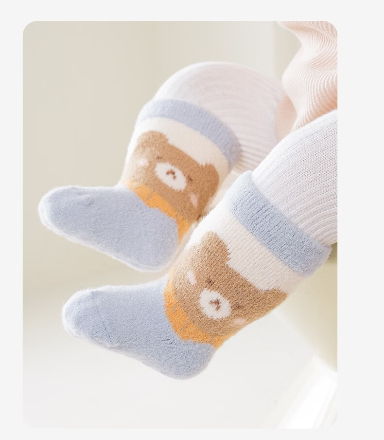 October Crystallized Baby Coral Velvet Socks Autumn and Winter Thickened Anti-Slip Socks Baby Cartoon Cute and Leg-Free Bear Travel Notes - Coral Velvet 3 Pairs 0-6 Months