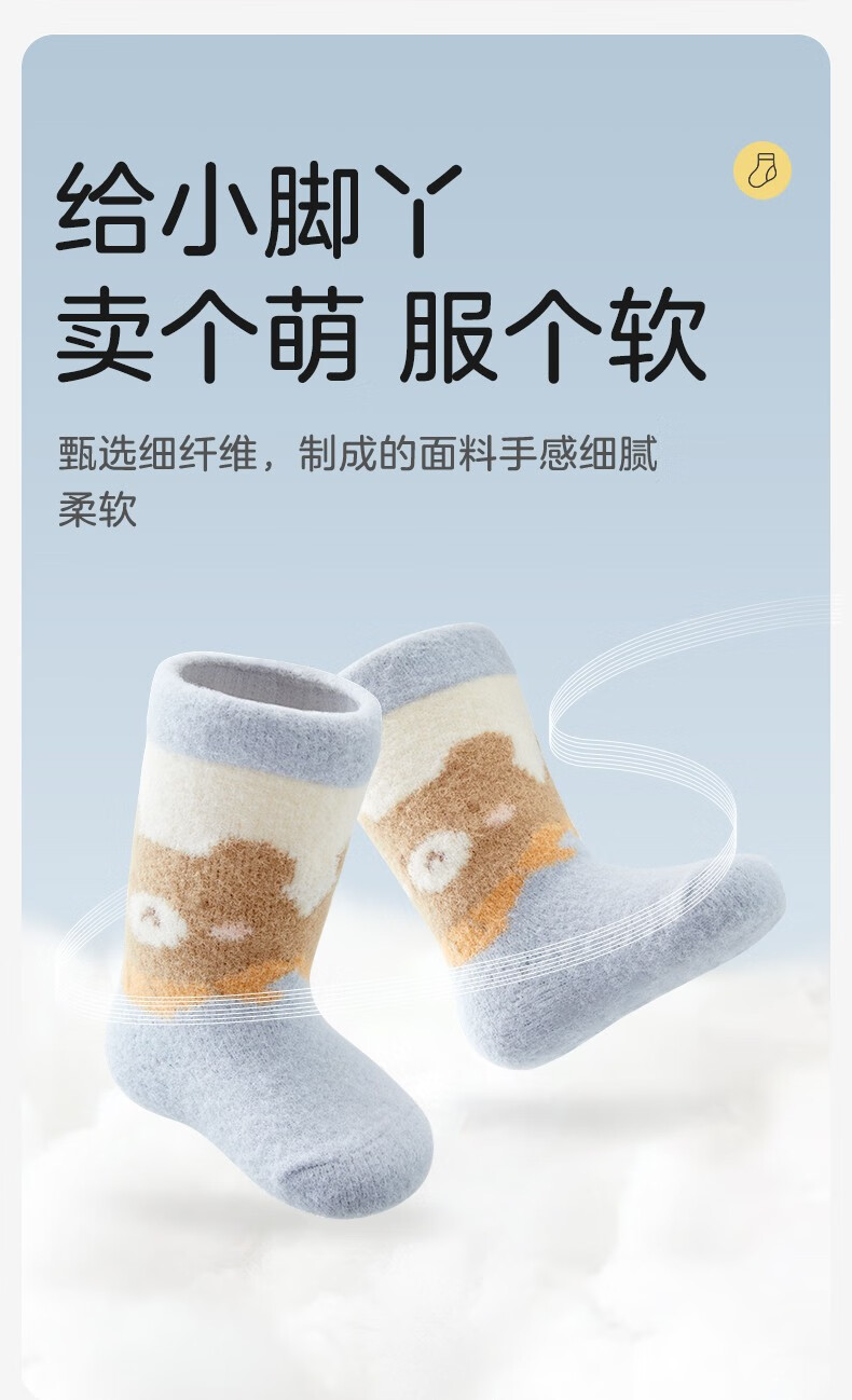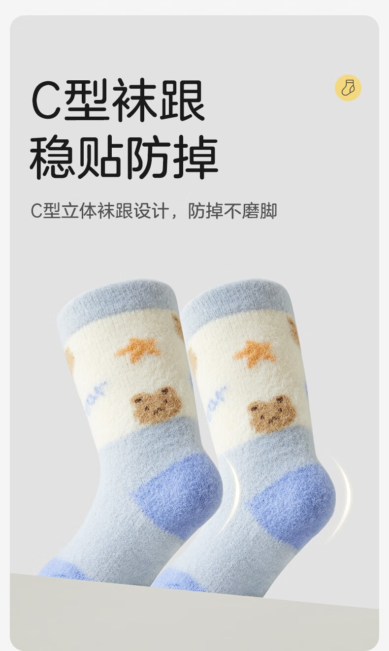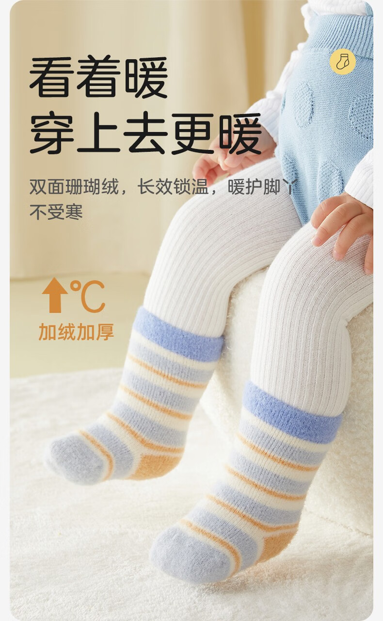 October Crystallized Baby Coral Velvet Socks Autumn and Winter Thickened Anti-Slip Socks Baby Cartoon Cute and Leg-Free Bear Travel Notes - Coral Velvet 3 Pairs 0-6 Months
