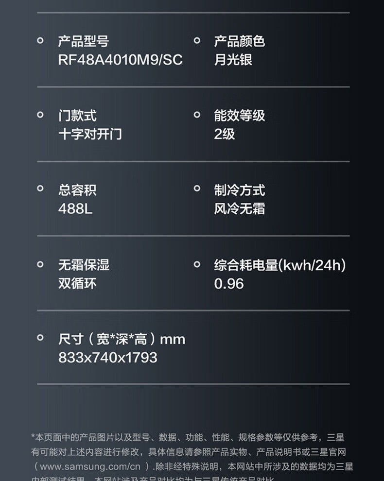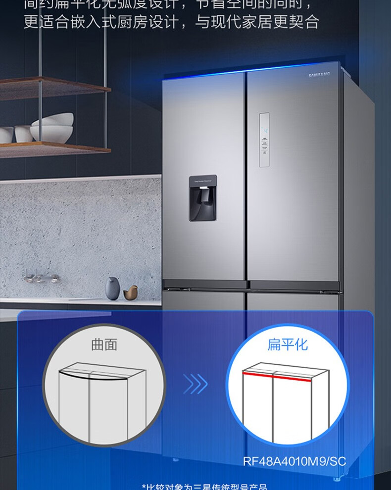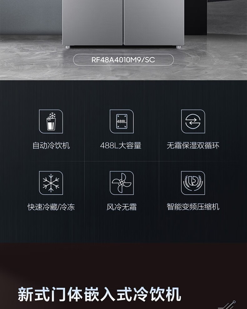 SAMSUNG offers 15% replacement subsidy for 488-liter air-cooled inverter refrigerator, cross-door household refrigerator, high moisturizing and quick freezing, automatic cold drink machine, trade-in appliances RF48A4010M9/SC