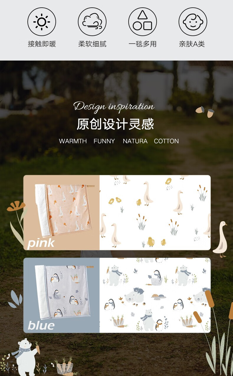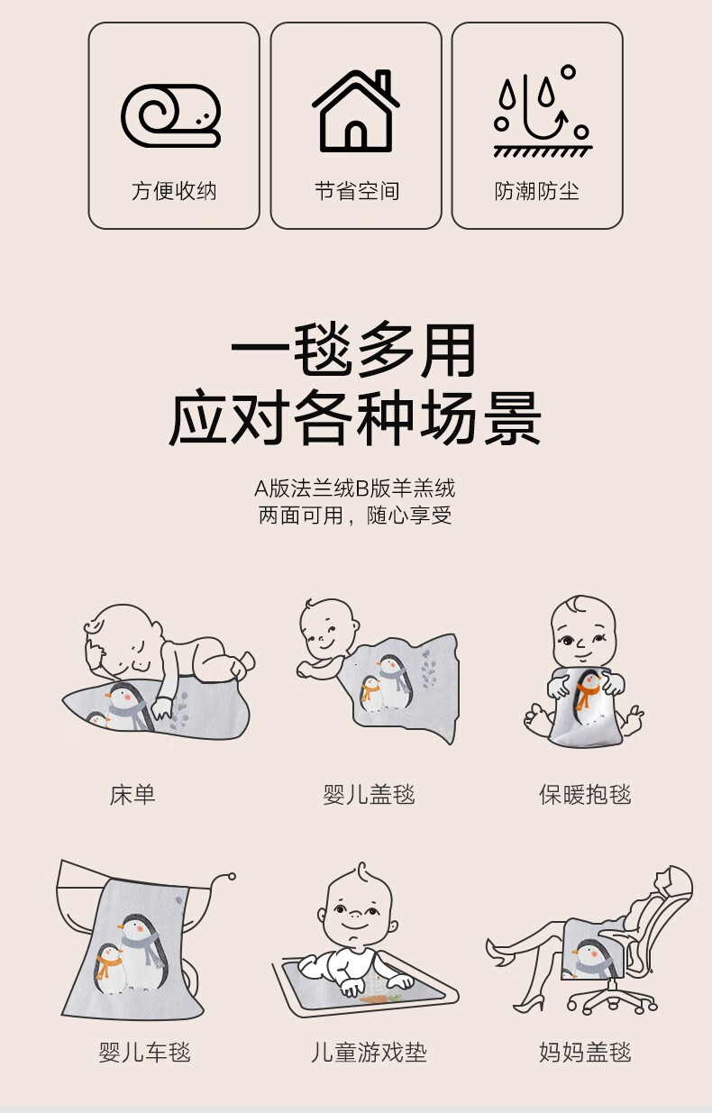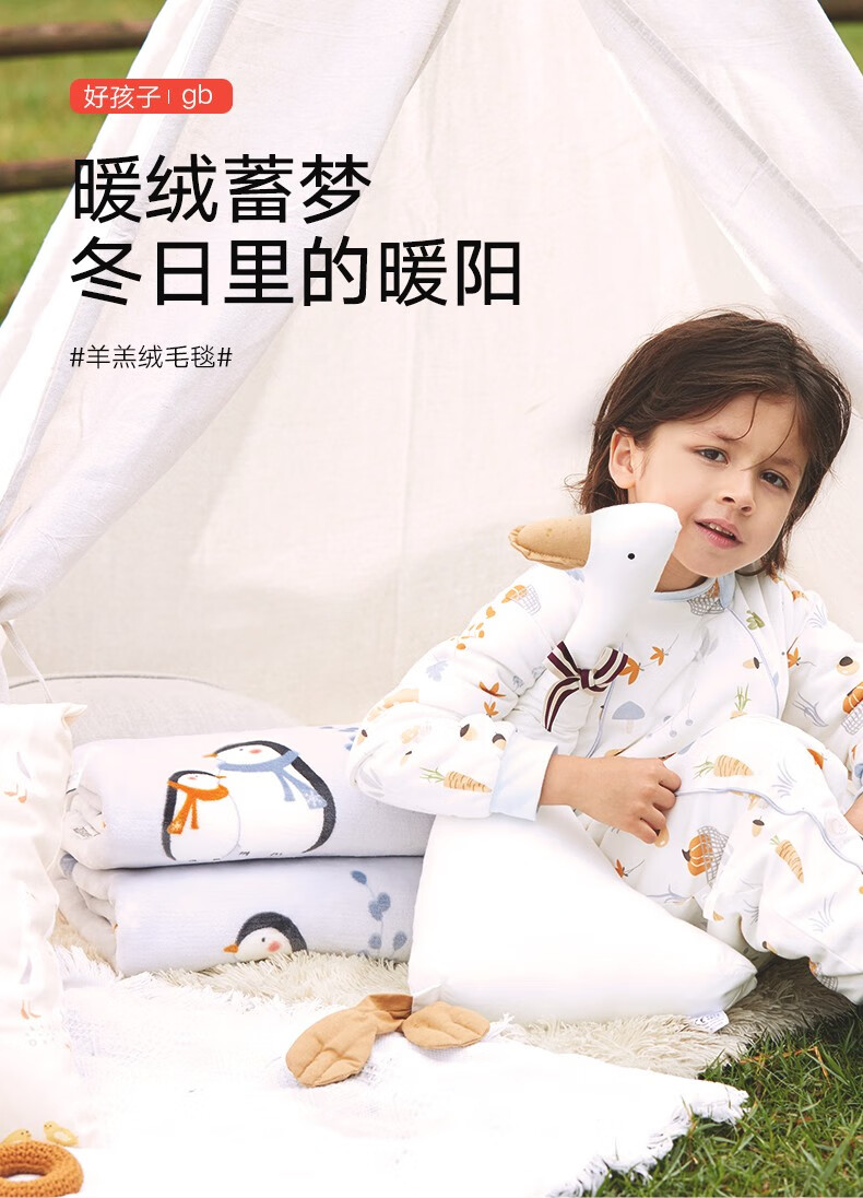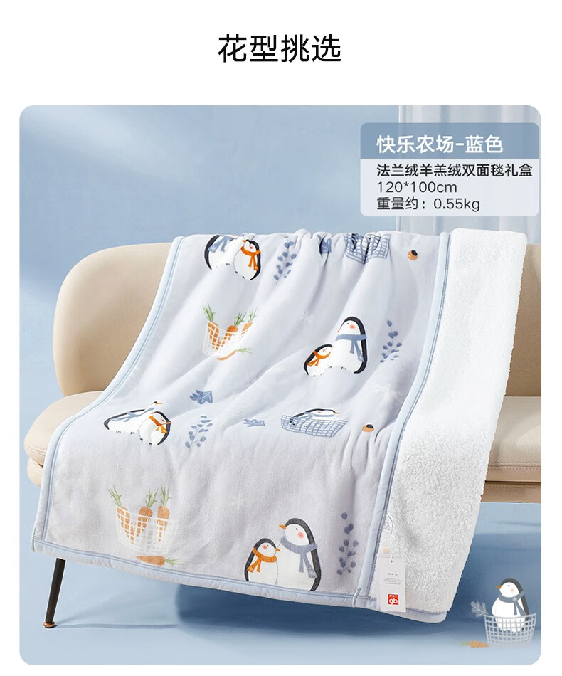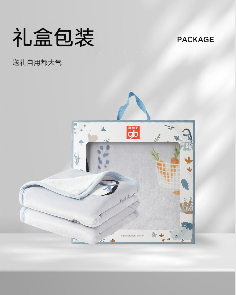 Goodbaby (gb) baby blanket, autumn and winter newborn blanket, flannel blanket, children's kindergarten blanket, blue/120*100/550g/double-sided plush blanket