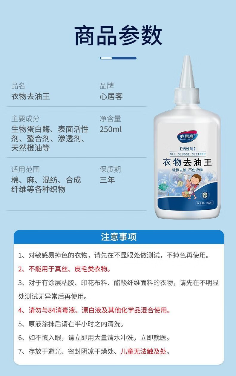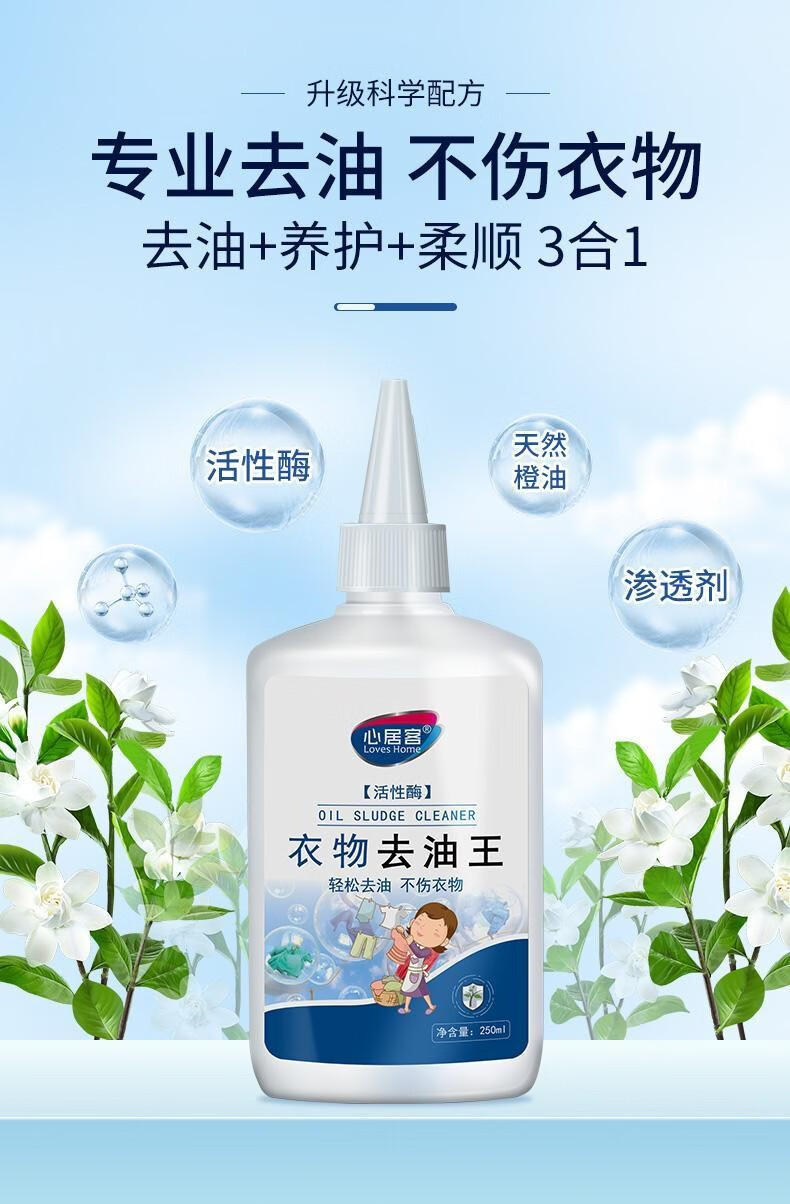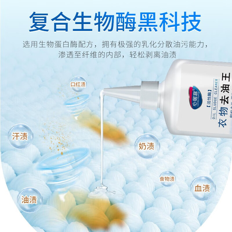 Xinjuke Clothes Grease Cleaner Degreasing King Active Enzyme Powerfully Dissolves Stubborn Stains on Clothes Hot Pot Oil Chili Oil 2 Bottles