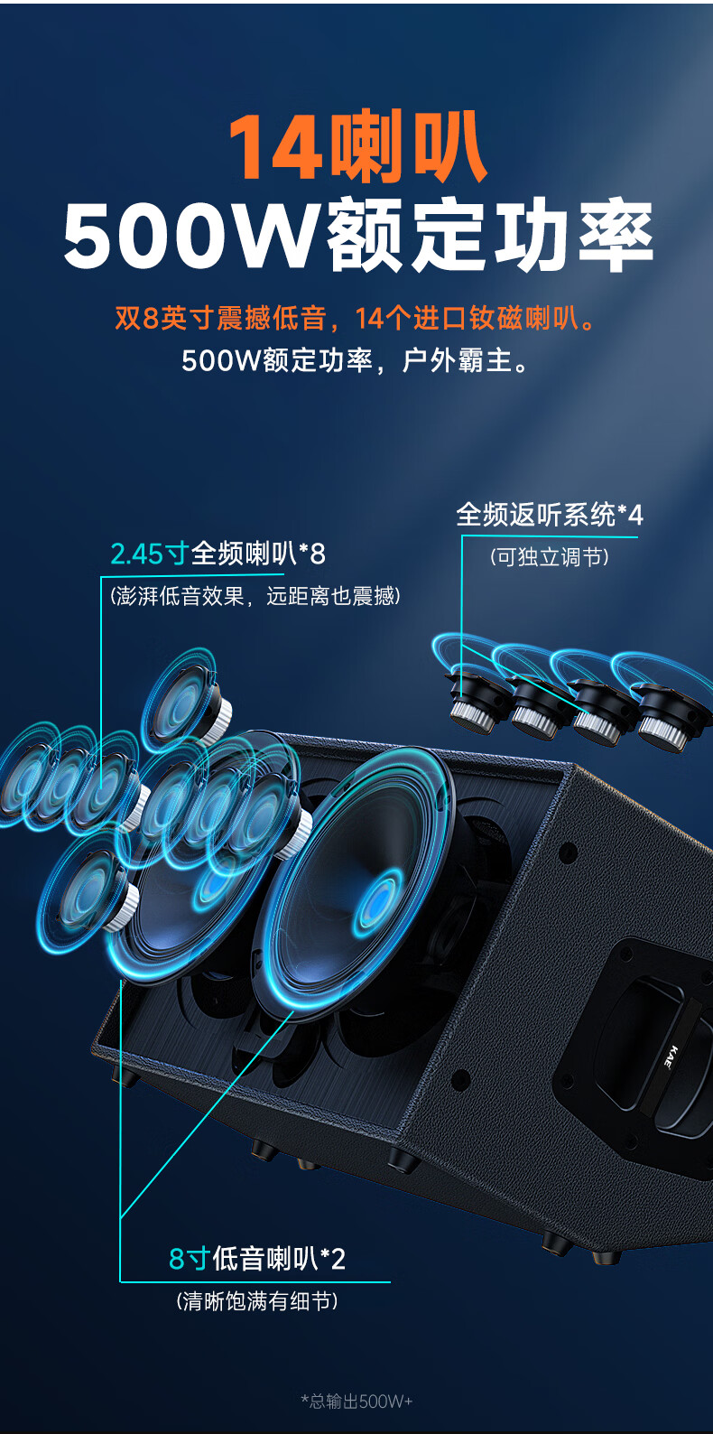 KAEK8 British kae audio flagship musical instrument singing speaker outdoor road show guitar high-power professional karaoke live stereo surround sound kae-k8 K8 red tiger custom color (rated 500W) official standard