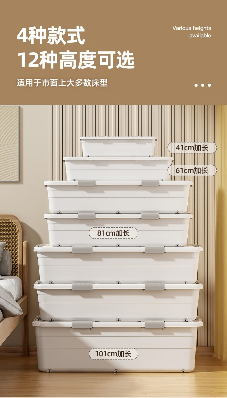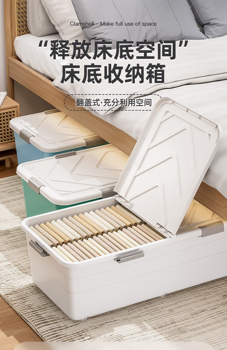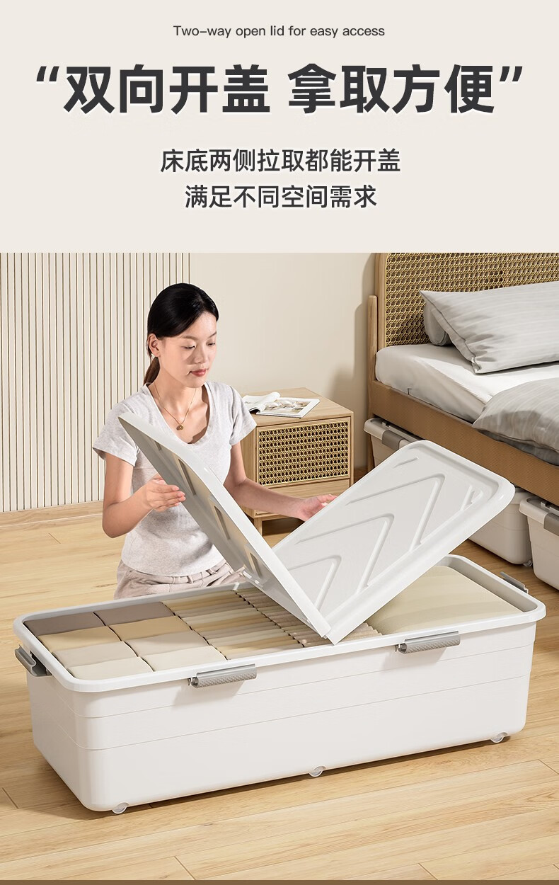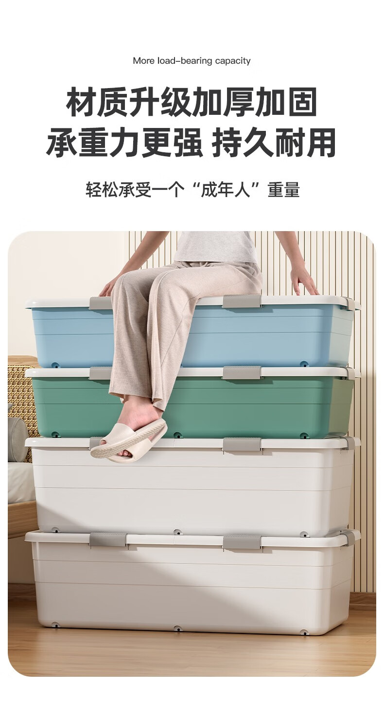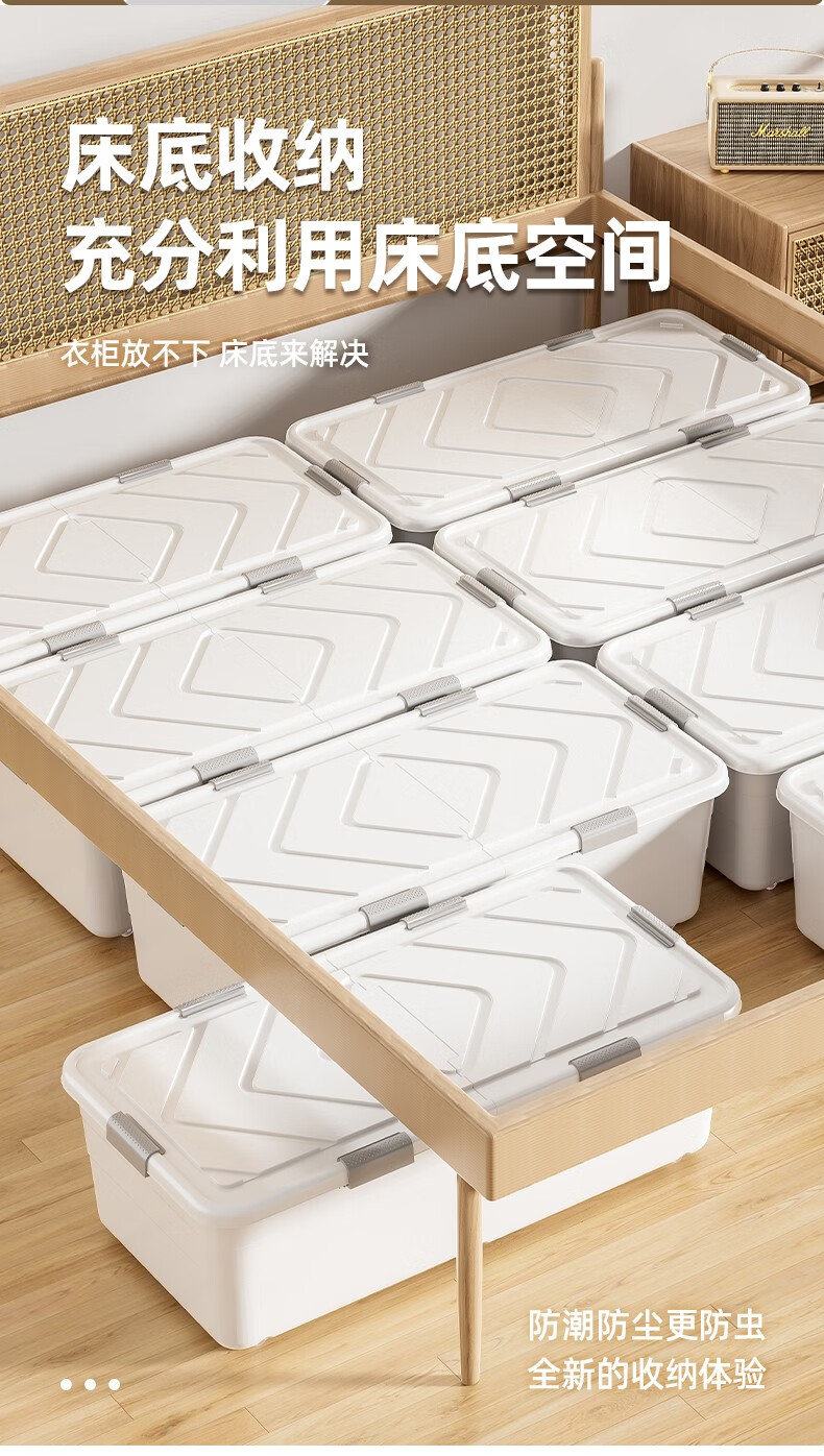 Lijie under-bed storage box flat large-capacity storage box student dormitory under-bed storage box cat litter box extra-large wheeled single opening lid and heightened version 61*41*22 gray