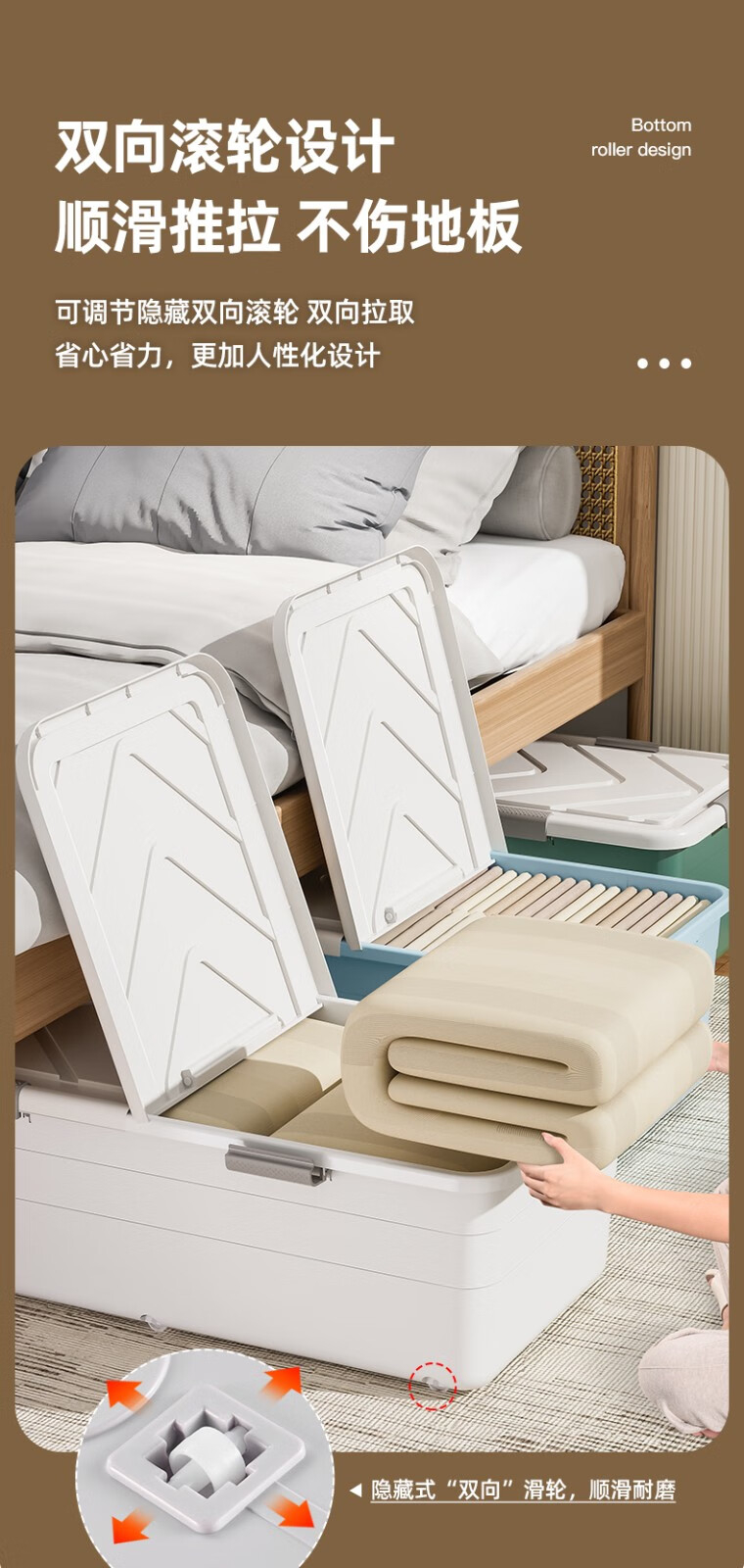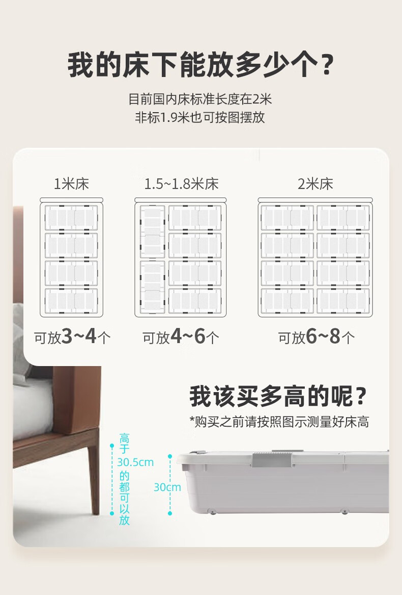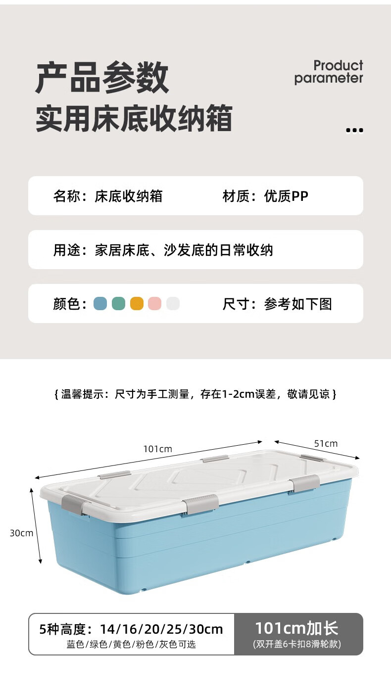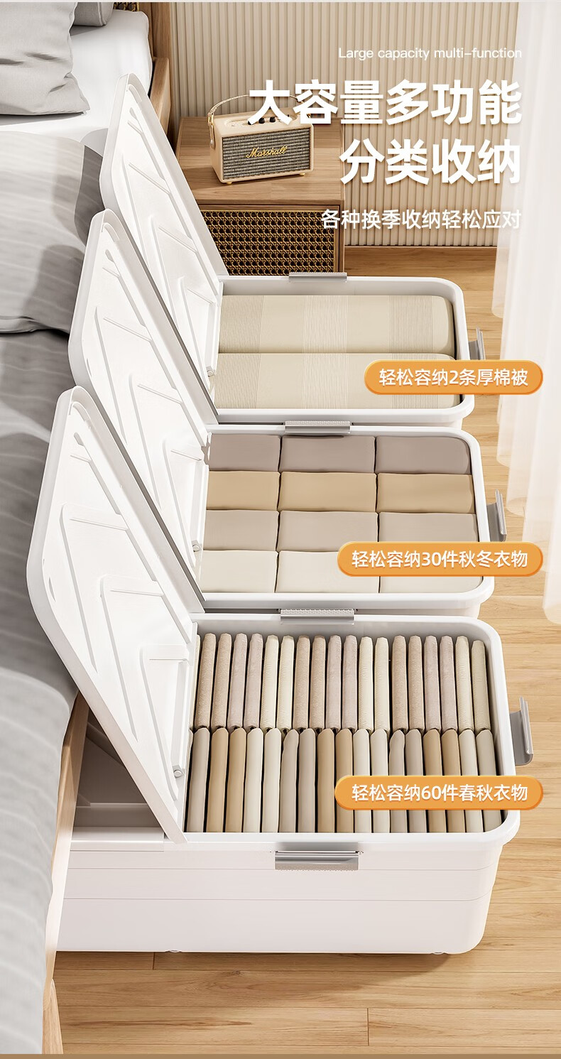 Lijie under-bed storage box flat large-capacity storage box student dormitory under-bed storage box cat litter box extra-large wheeled single opening lid and heightened version 61*41*22 gray