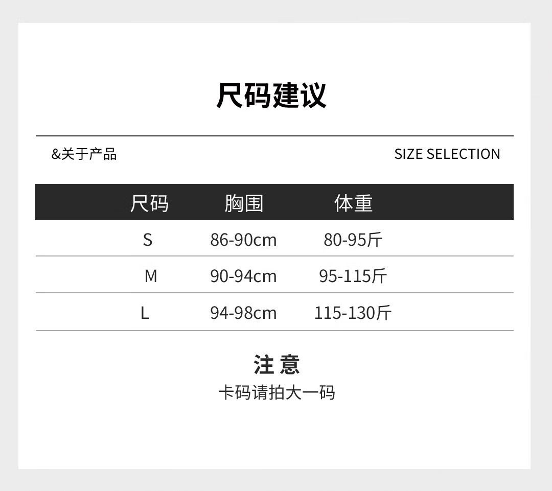 China (cm) 165 / 88-90 170 / 96-98 175 / 108-110 180 / 118-122 185 / 126-130