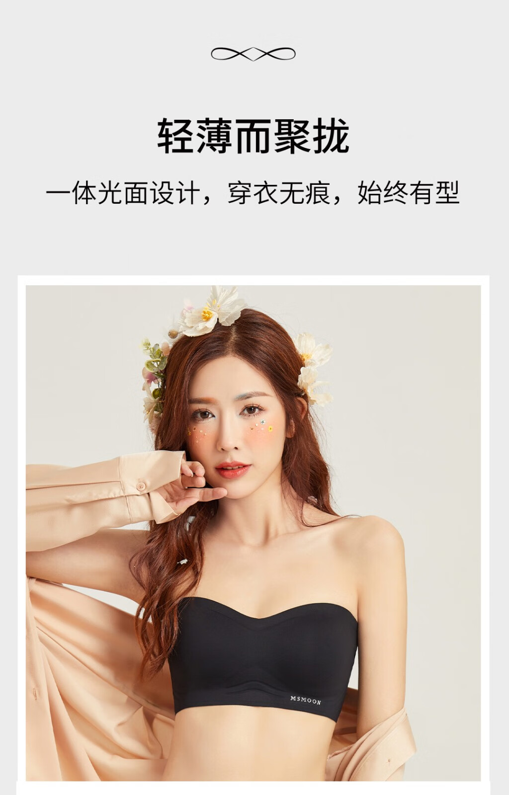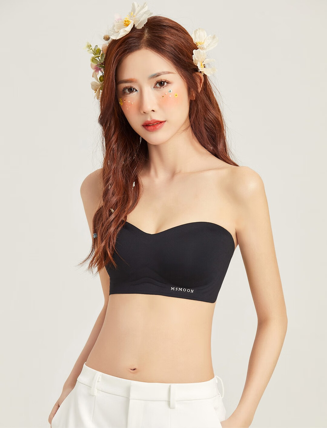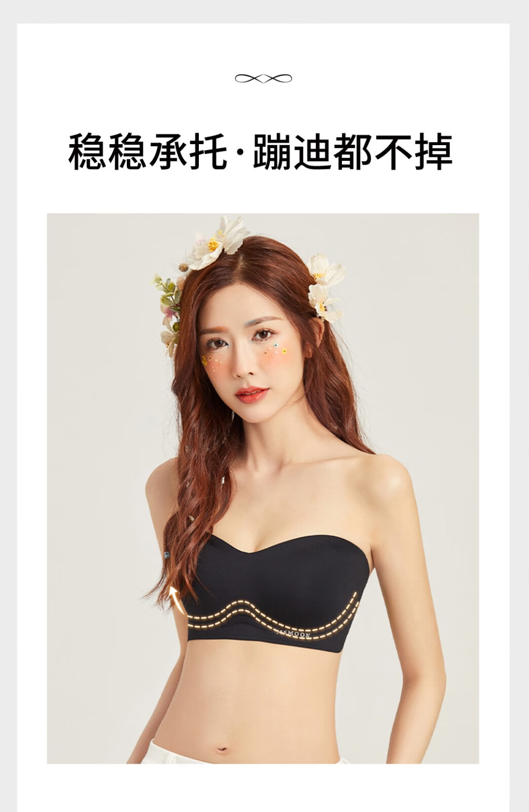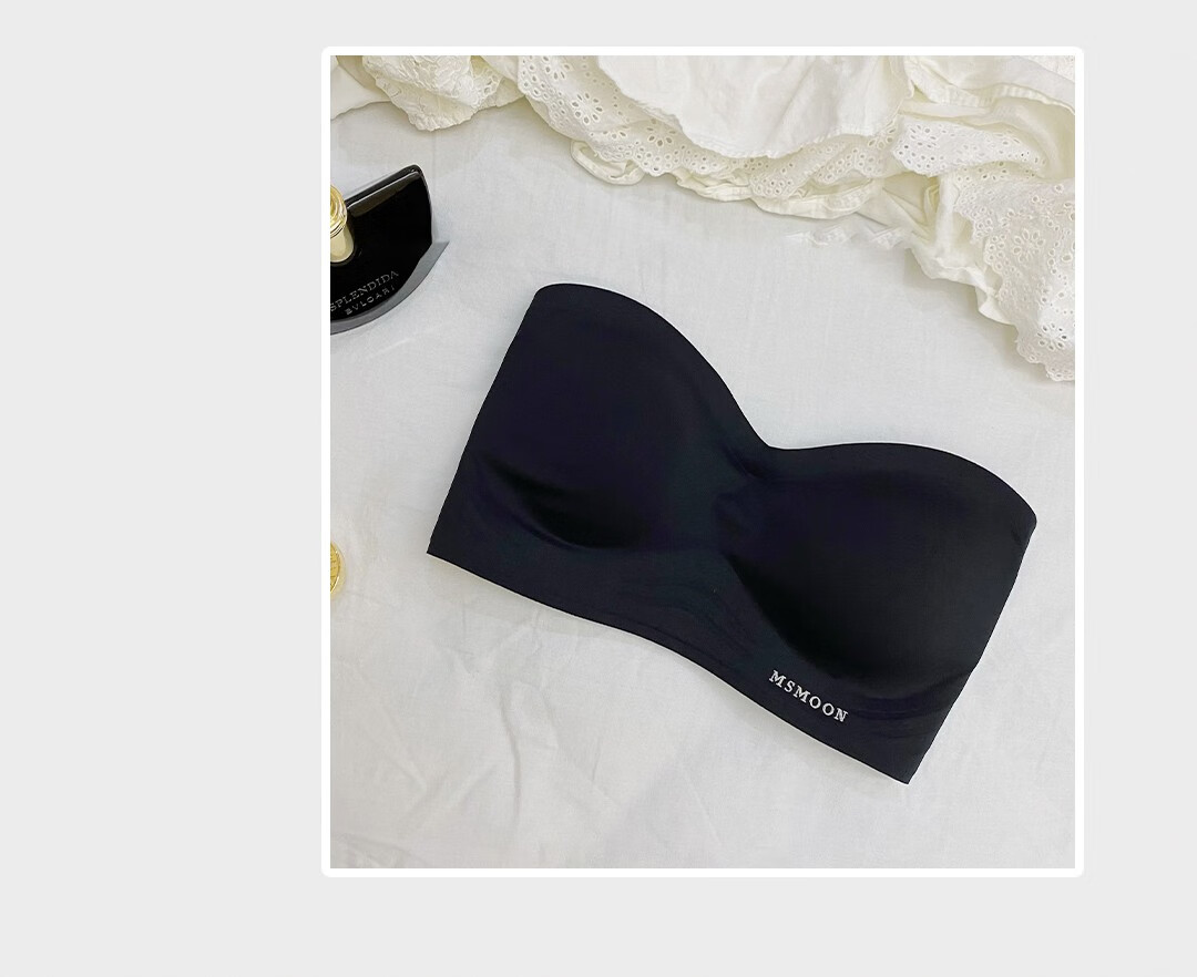 Muroqian Xiaoxiang shoulder strapless bra seamless push-up non-slip tube top beautiful back bra summer thin women's chest wrap black S