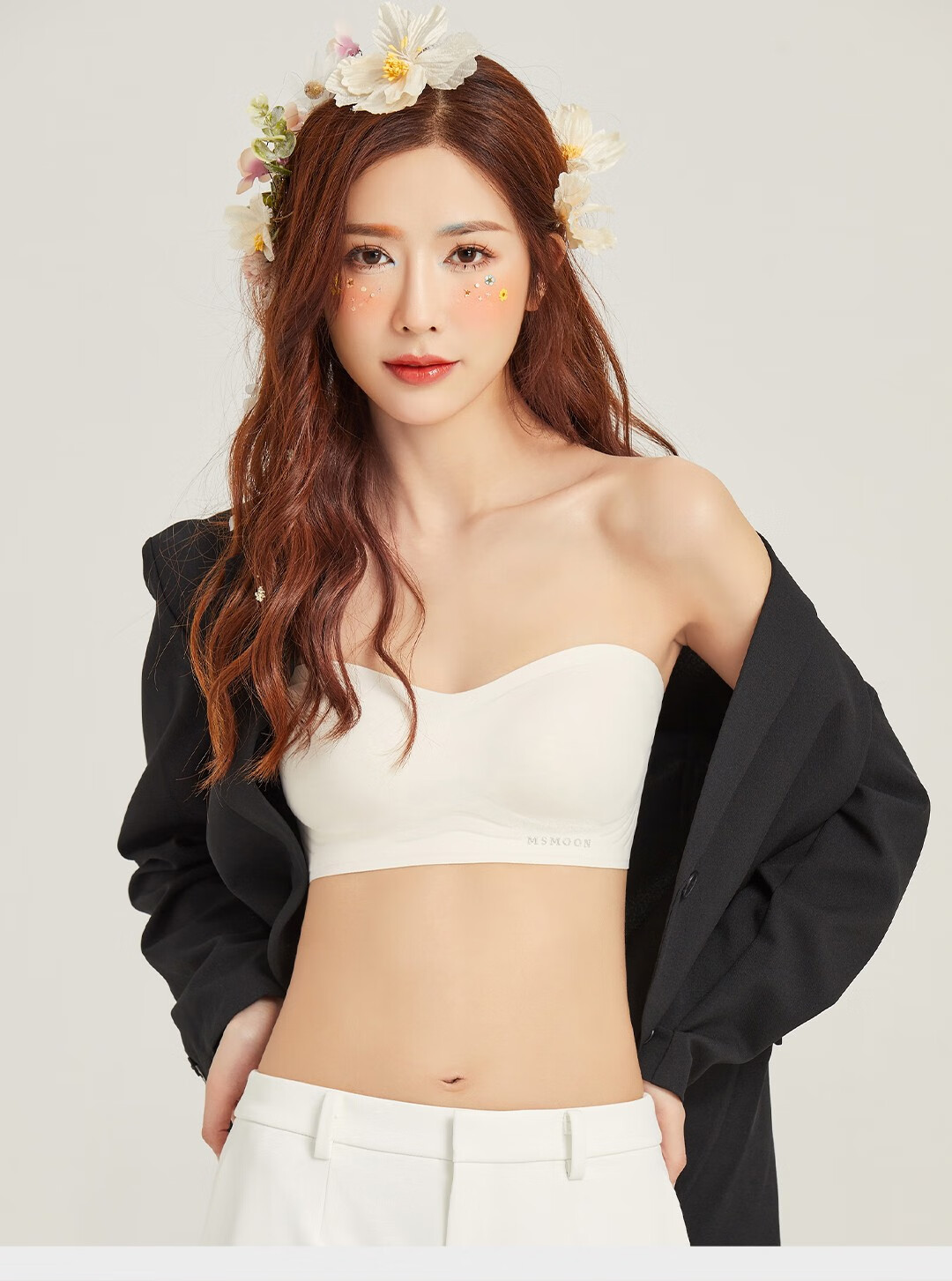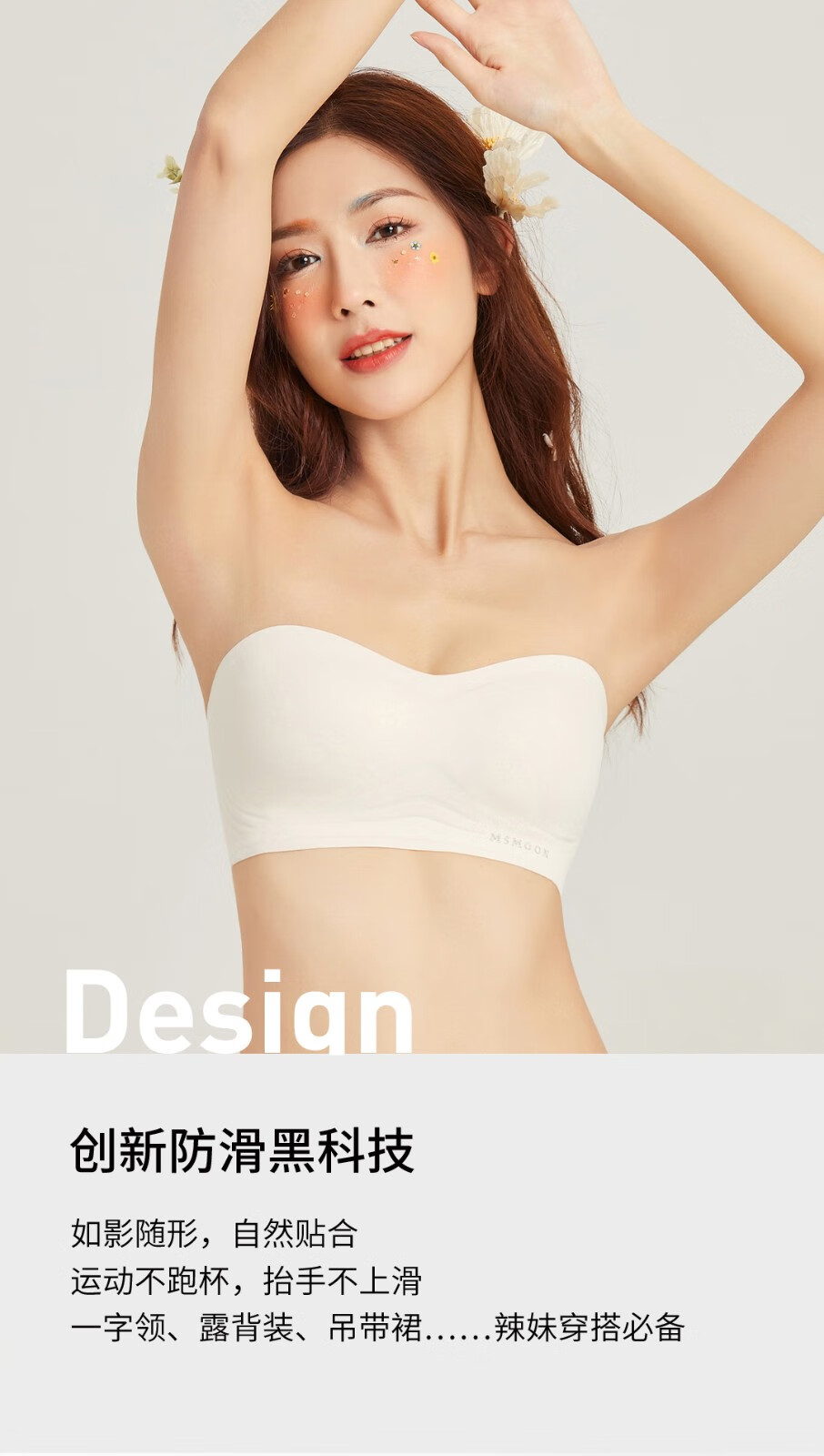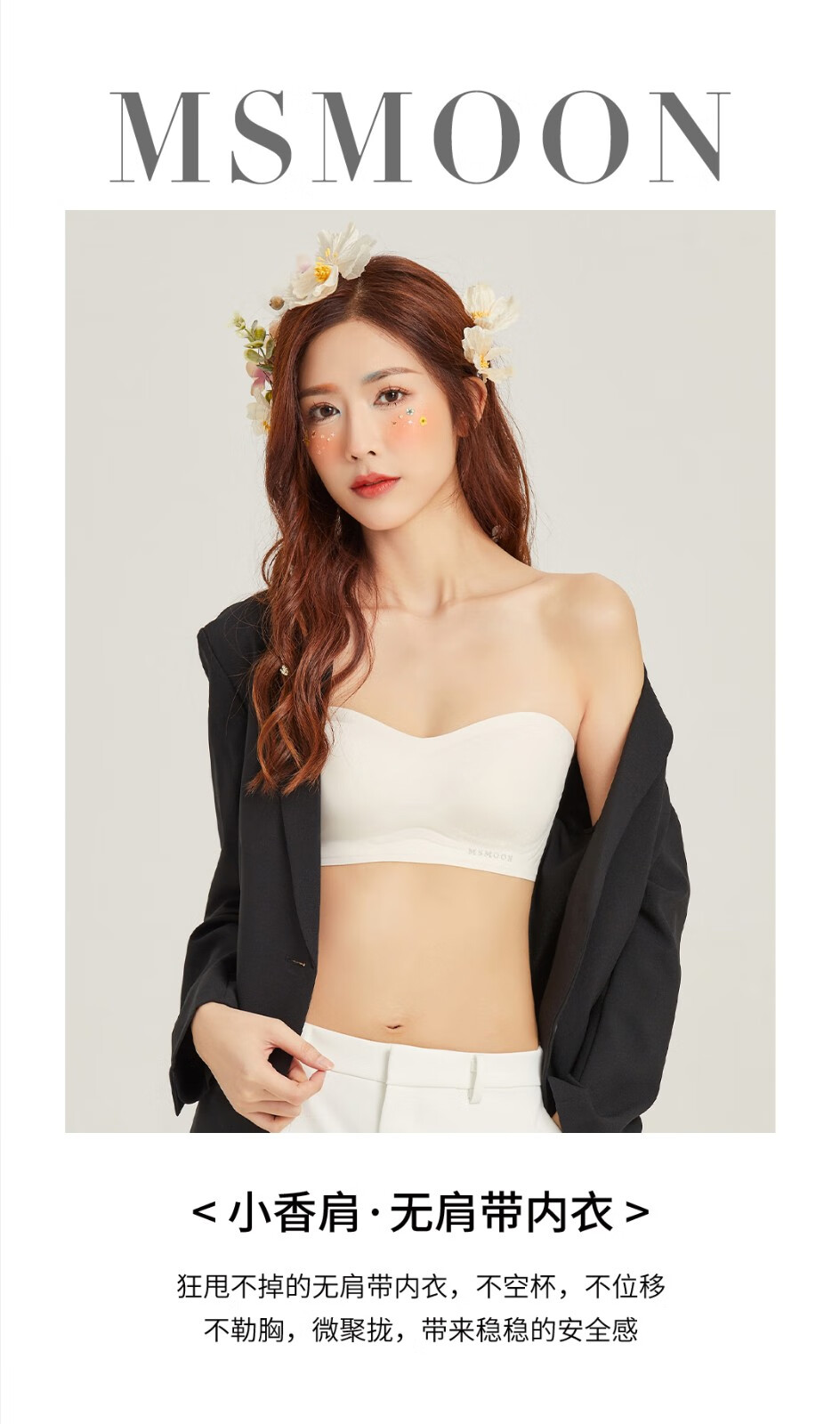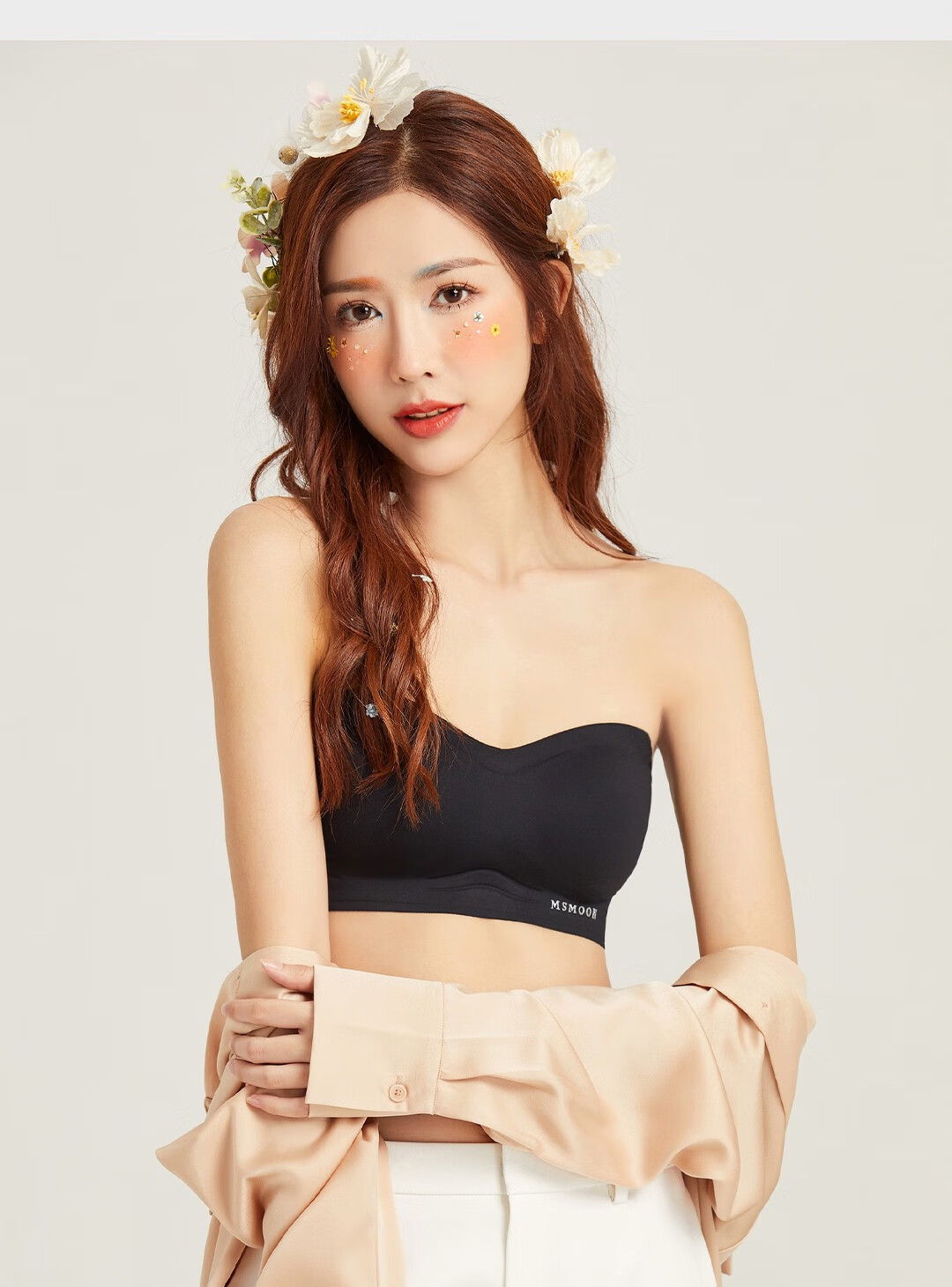 Muroqian Xiaoxiang shoulder strapless bra seamless push-up non-slip tube top beautiful back bra summer thin women's chest wrap black S