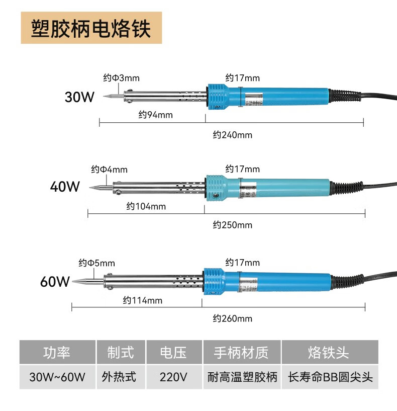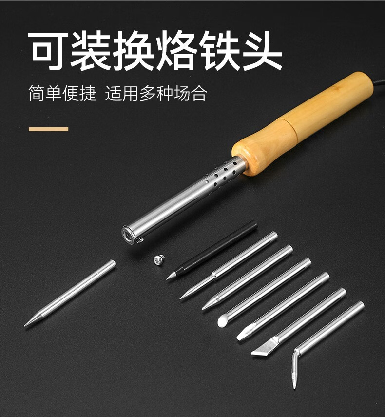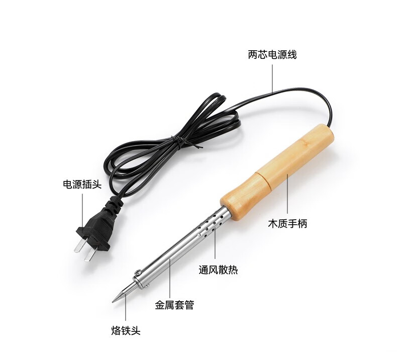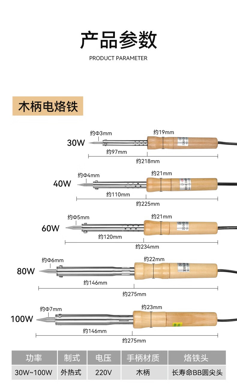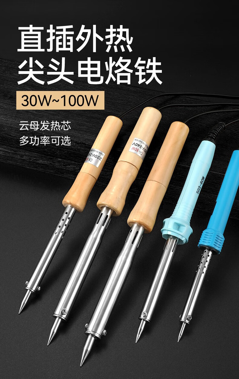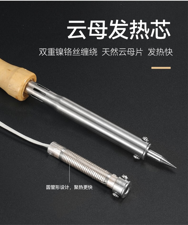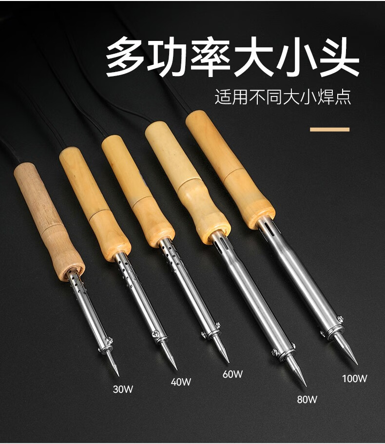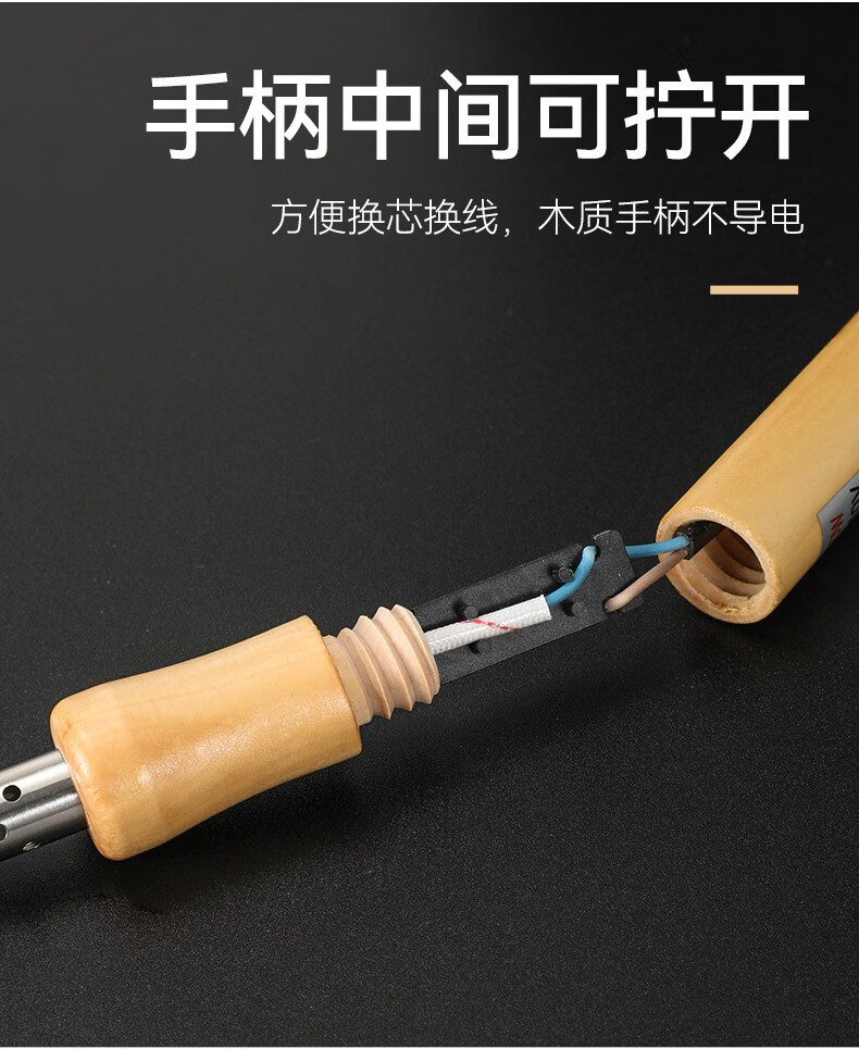 Bangyuan external heating electric soldering iron wooden handle 30W40W60W80W100W welding pen household repair welding tool Luotie wooden handle electric soldering iron-100W+tin wire 1 meter