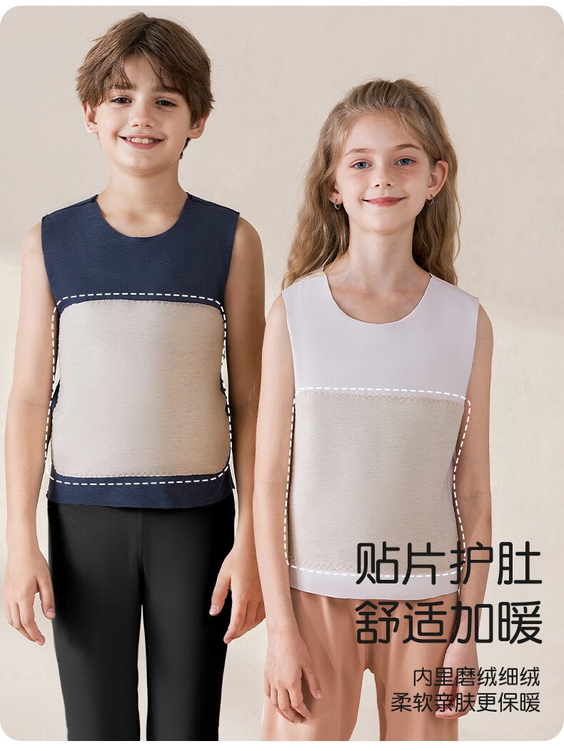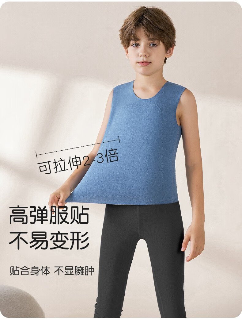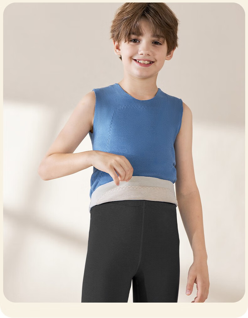 Langsha Children's Vest Autumn and Winter Baby Boys and Girls Bottoming Belly Protective Vest Seamless Patch Wear Warm Boy Tops Boys - Blue 170 Recommended Height 160-170cm