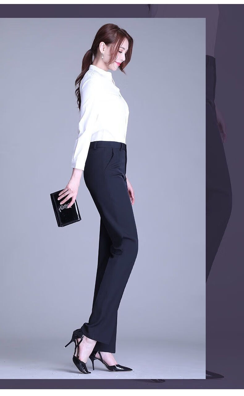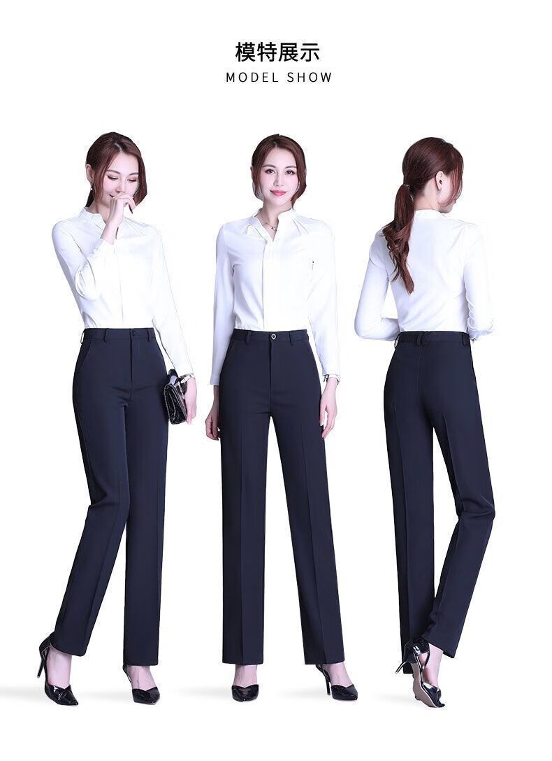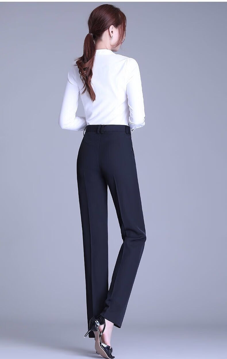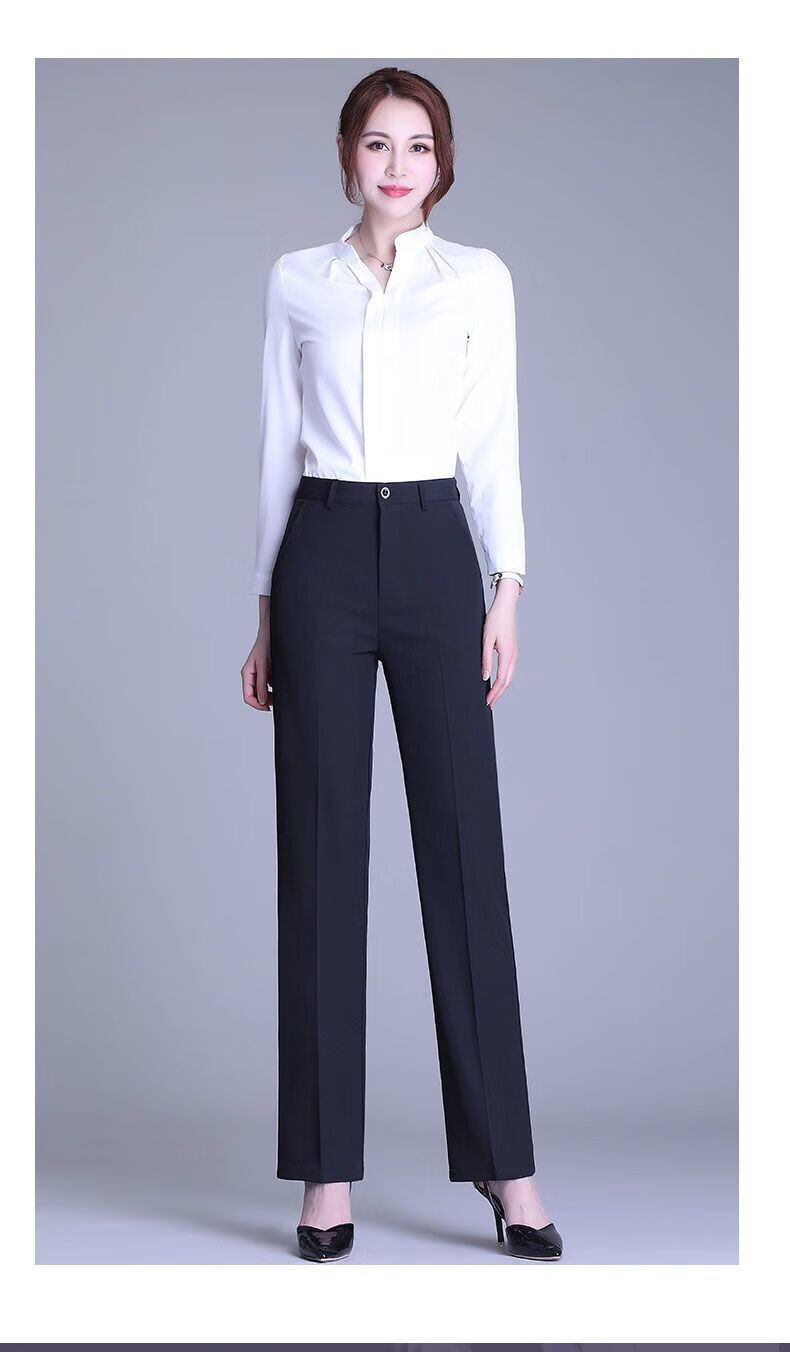 ROMON's new black trousers for women, professional drape straight trousers, work trousers, formal high-waisted suits, spring and autumn styles, navy blue and black 2XL