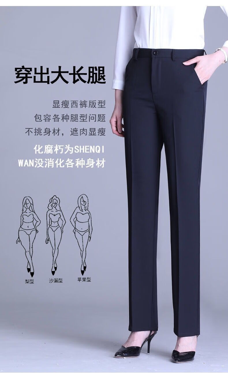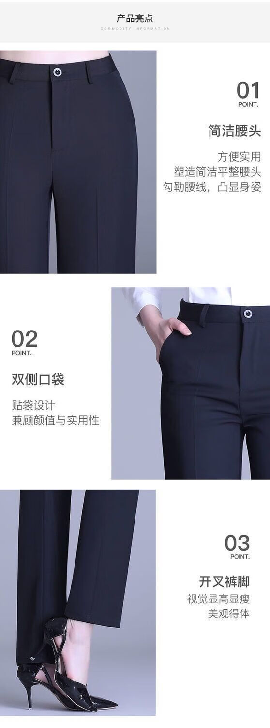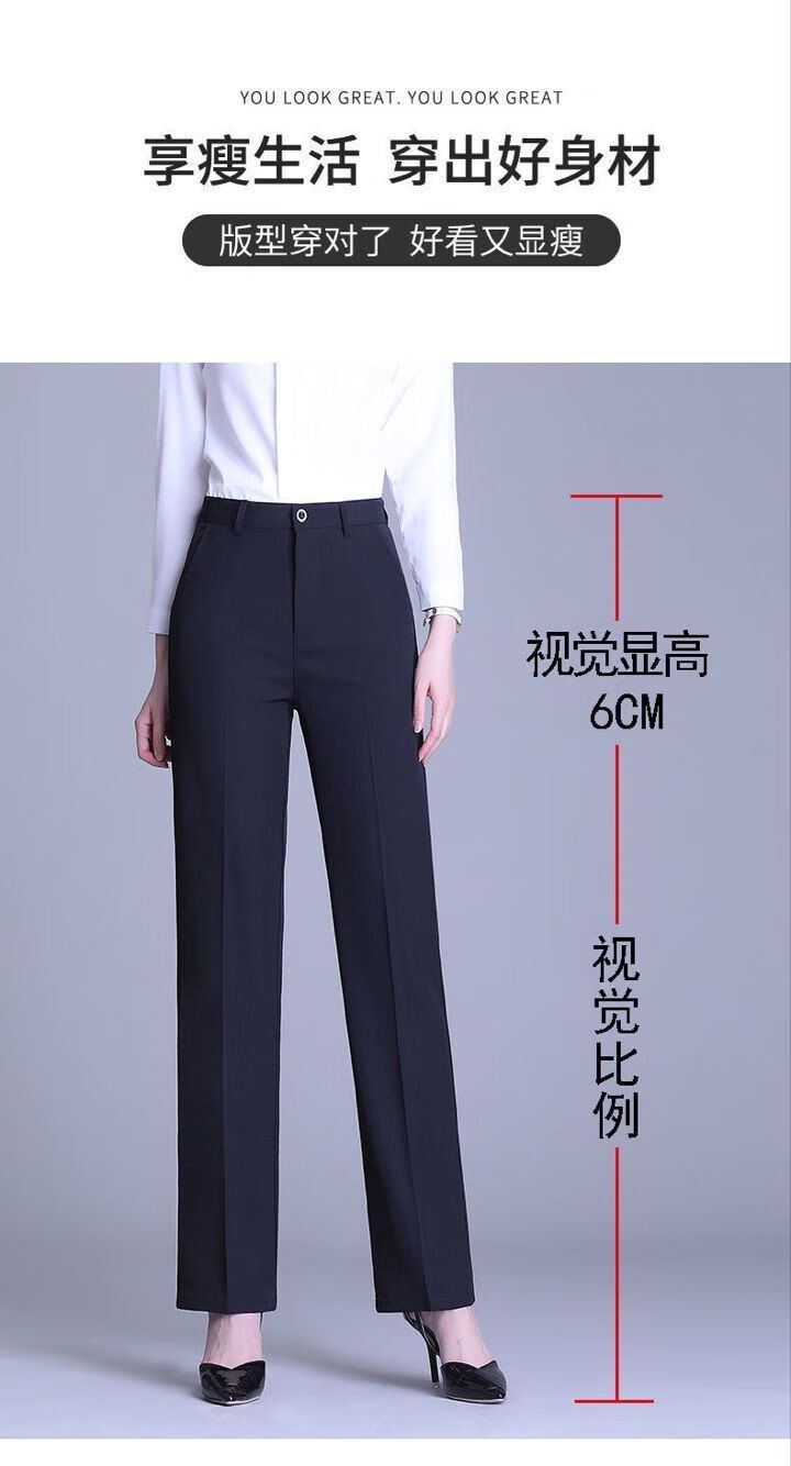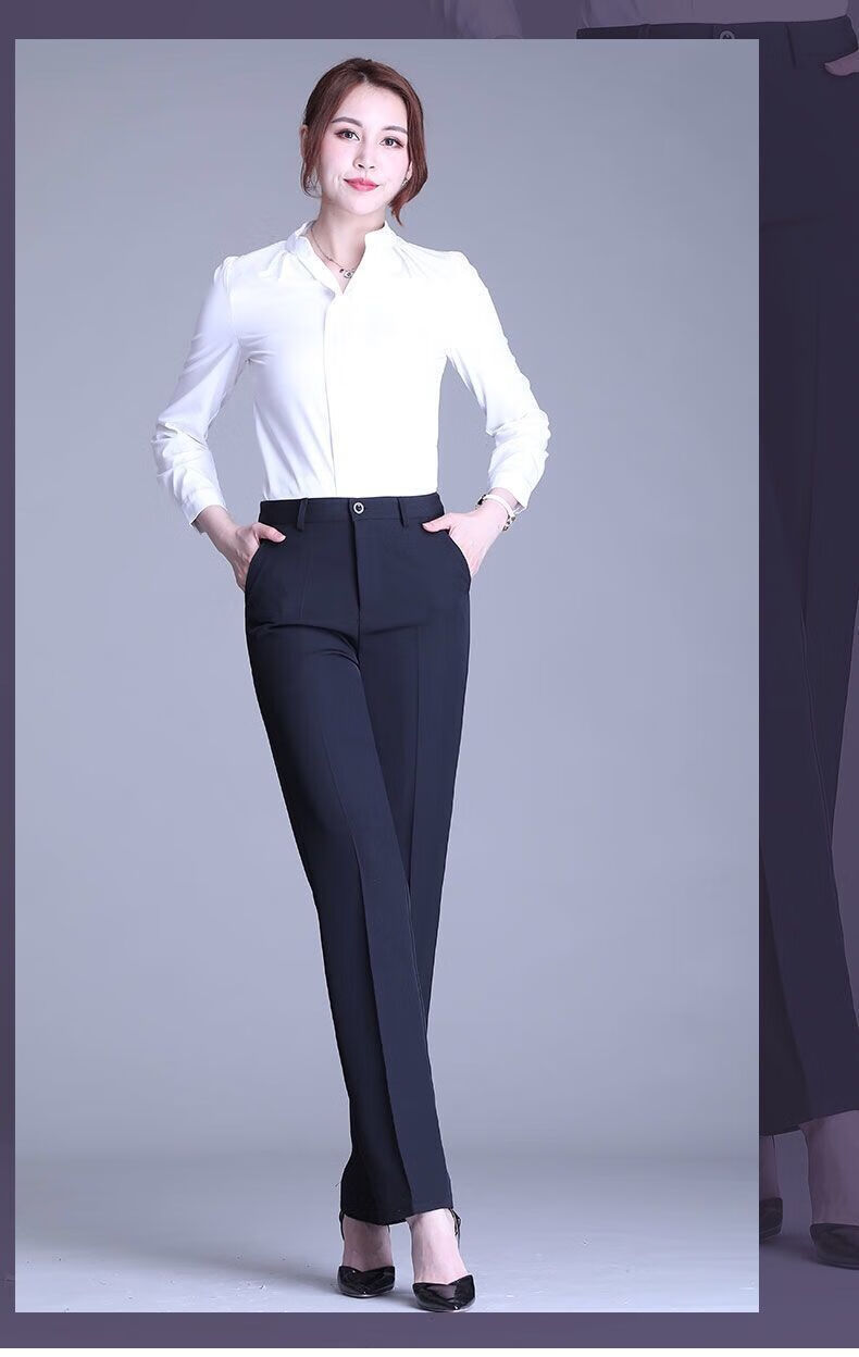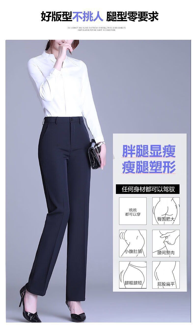ROMON's new black trousers for women, professional drape straight trousers, work trousers, formal high-waisted suits, spring and autumn styles, navy blue and black 2XL