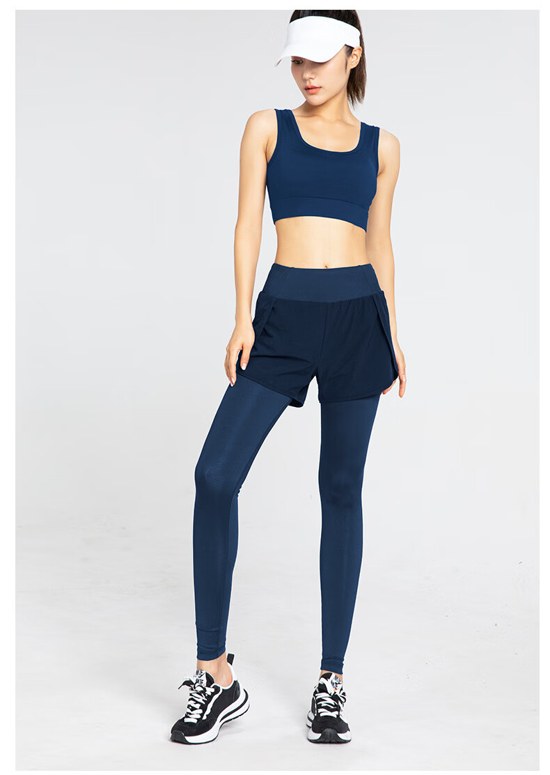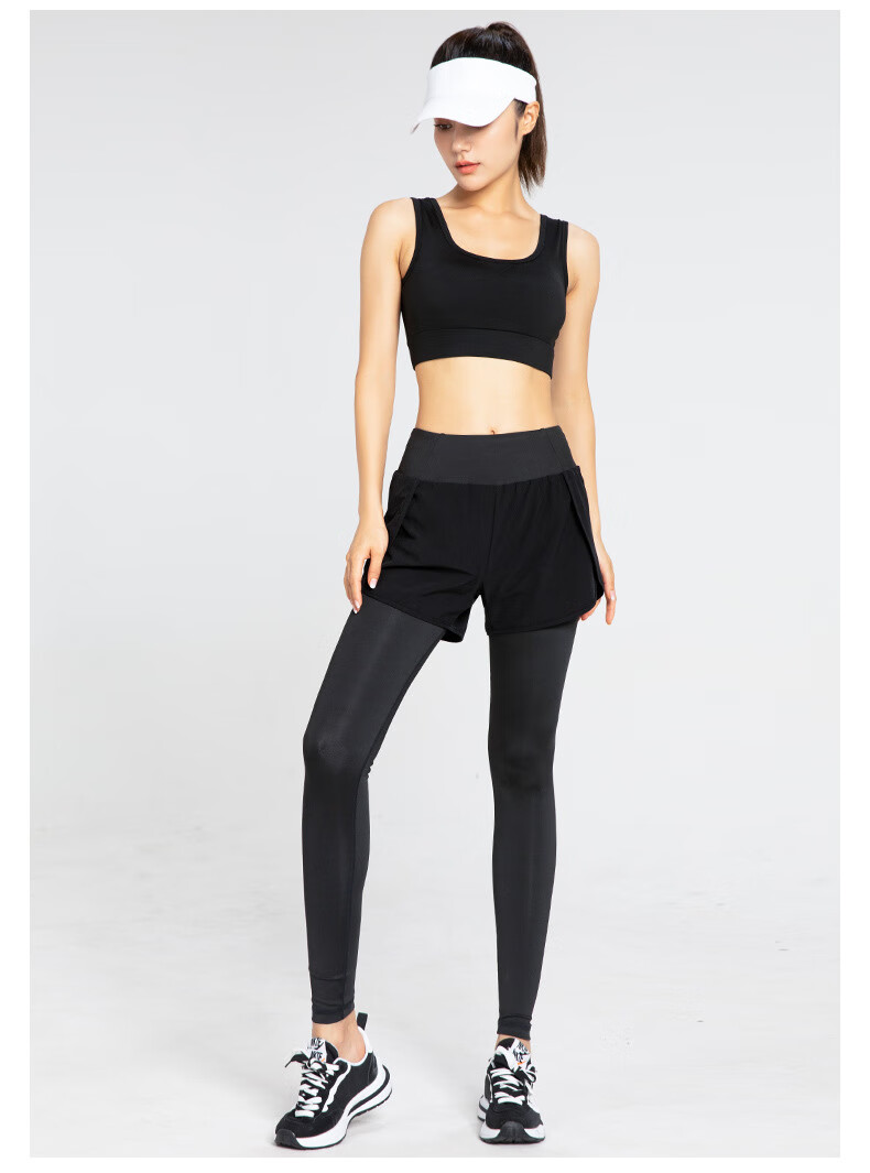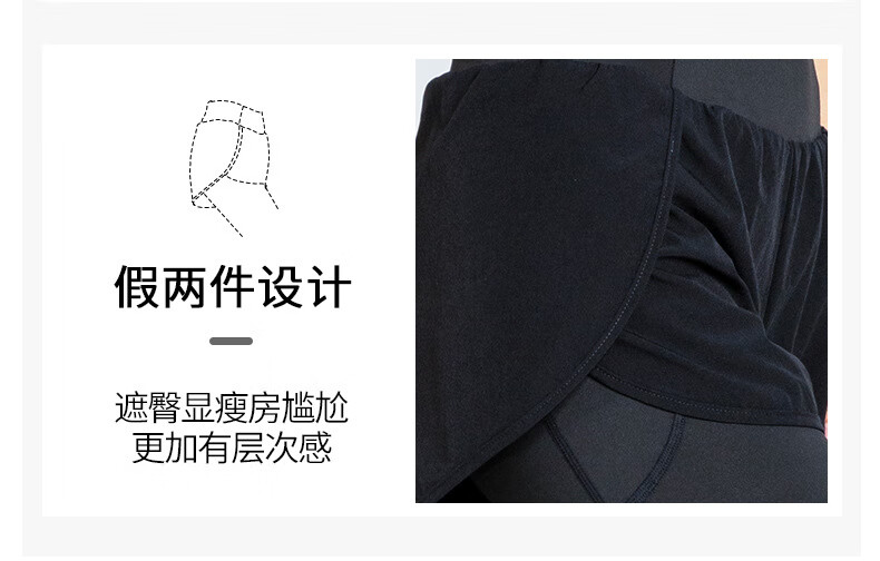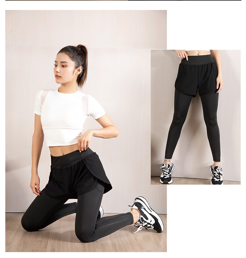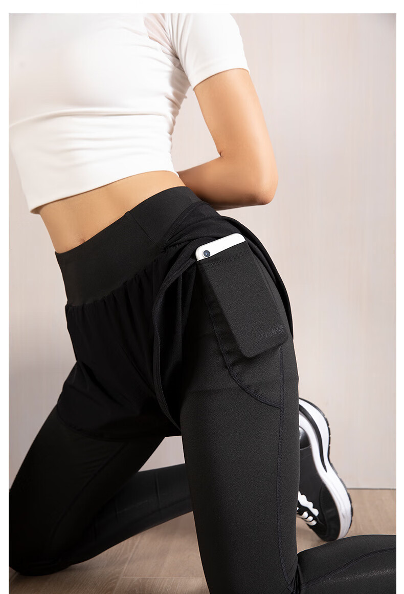 Rianne.He fake two-piece sports tight women's high waist elastic hip lift small feet fitness quick-drying running pocket yoga pants black S recommended 80-95Jin Jin equals 0.5 kg