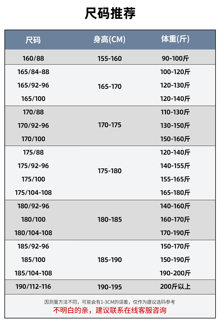China (cm) 160-165/84-86 165-170 / 88-90 167-172 / 92-96 168-173 / 98-102 170-176 / 106-110