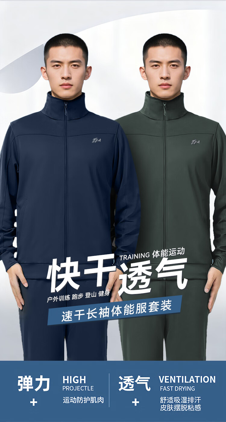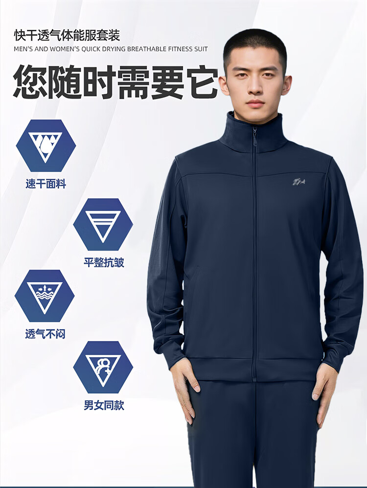 Jihua 3565 long-sleeved physical fitness suit spring and autumn long-sleeved physical suit suit for men and women outdoor running training quick-drying and breathable navy blue-suit 175/92-96