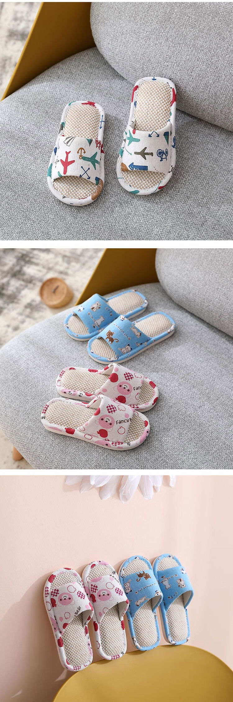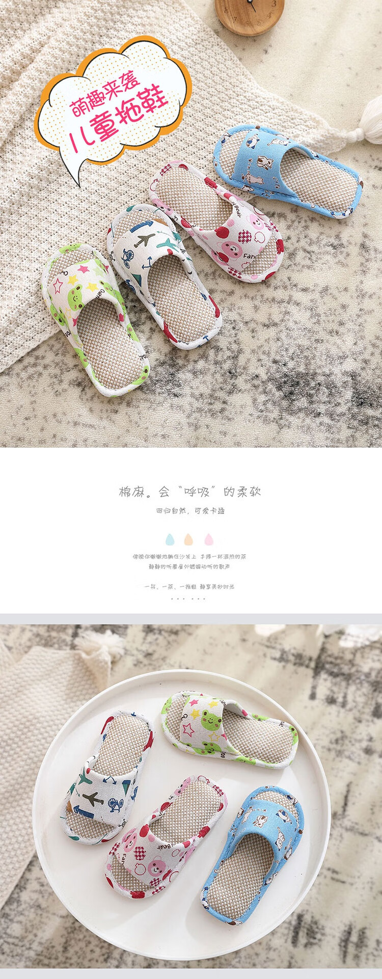 G.duck children's slippers cotton and linen fabric indoor boys and girls children's home linen home home spring autumn winter baby anti-slip white aircraft 36-37 suitable for 35-36