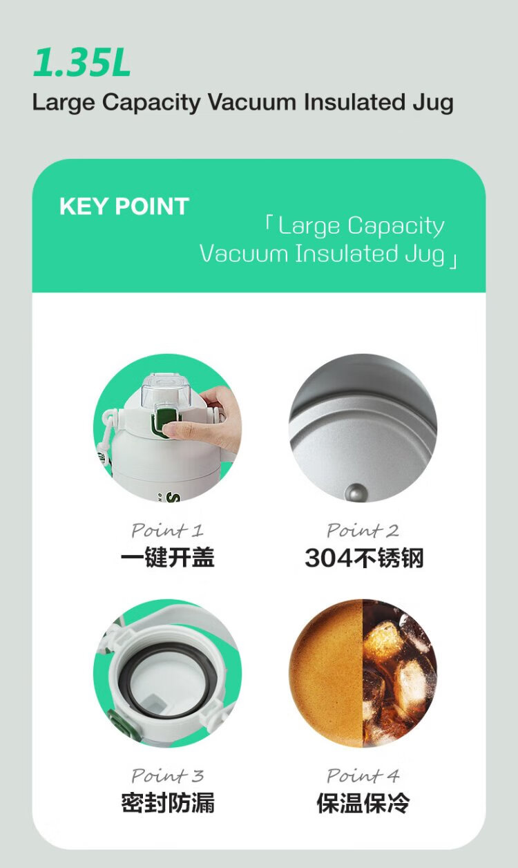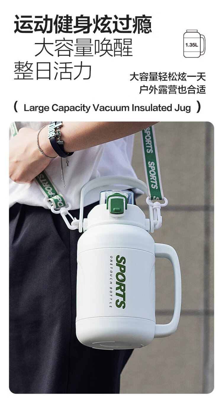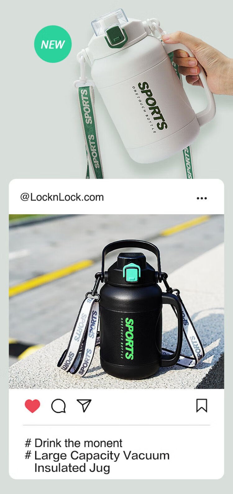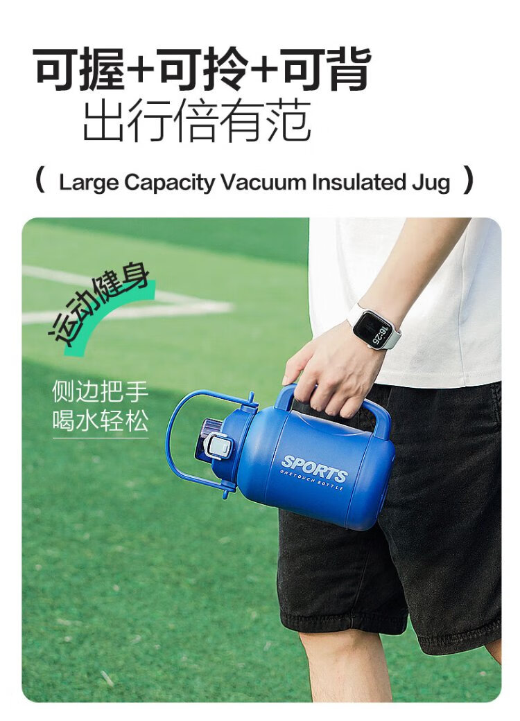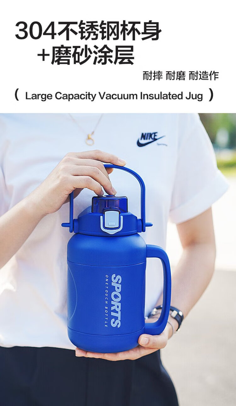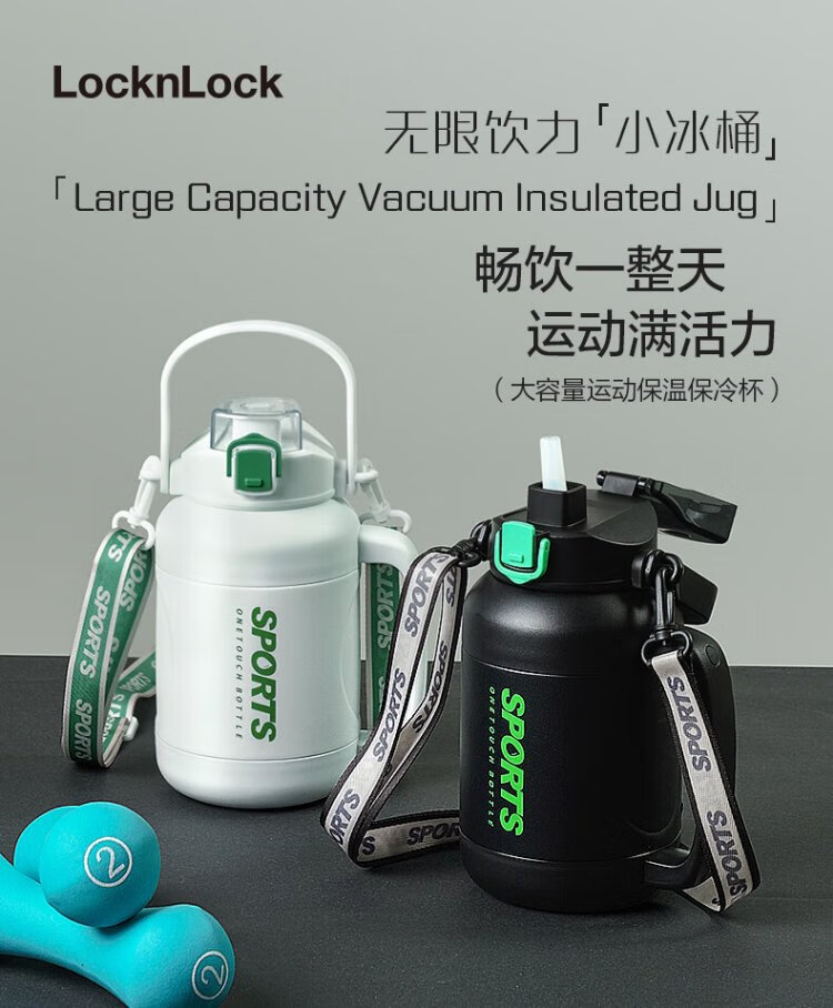 LOCK&LOCK small reservoir small ice bucket thermal insulation kettle outdoor travel large-capacity thermal kettle military training water cup blue - 1350ml