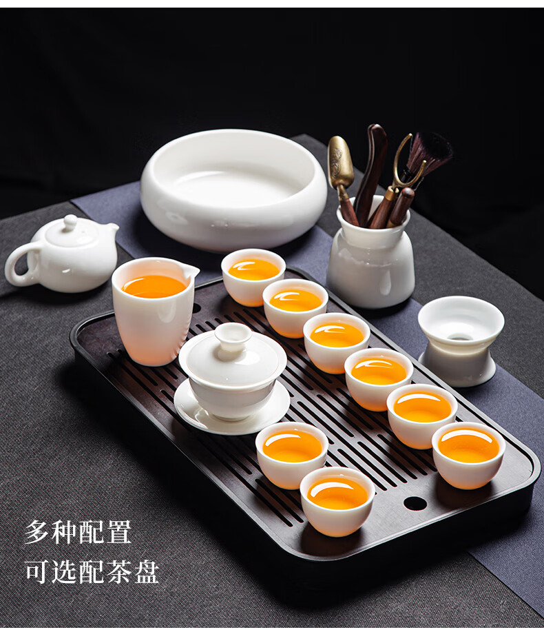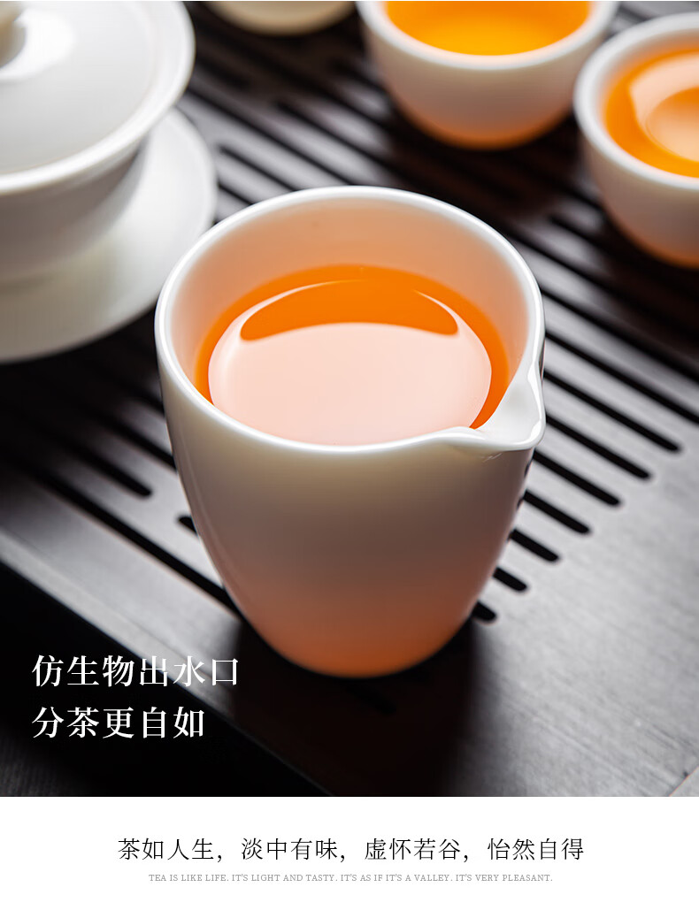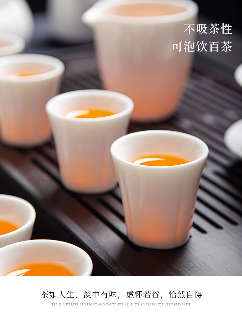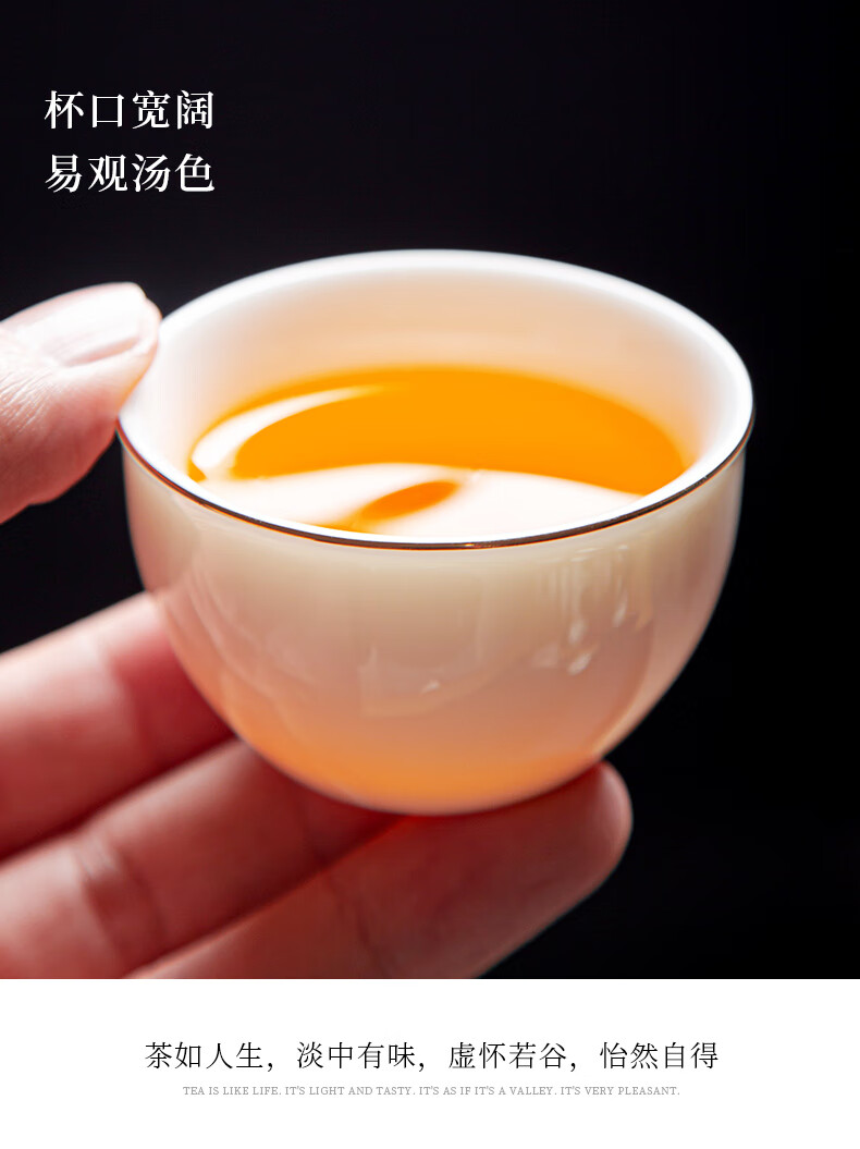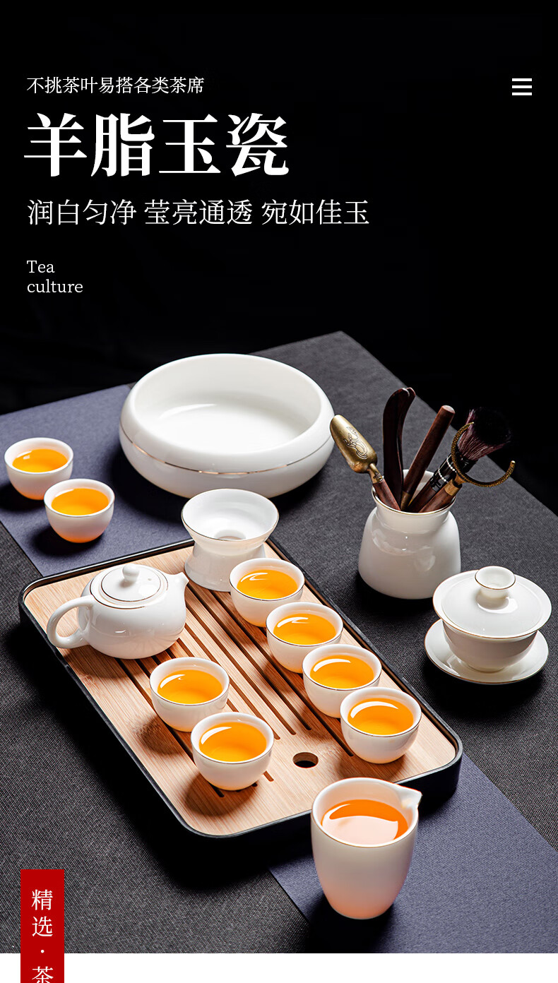 Jingcizhai Mutton Fat Jade White Porcelain Kung Fu Tea Set Home Light Luxury High-End Ceramic Covered Bowl Tea Cup New Complete Set Gold Painting-White Bean Fat Jade Covered Bowl 9-Head Perfect Cup