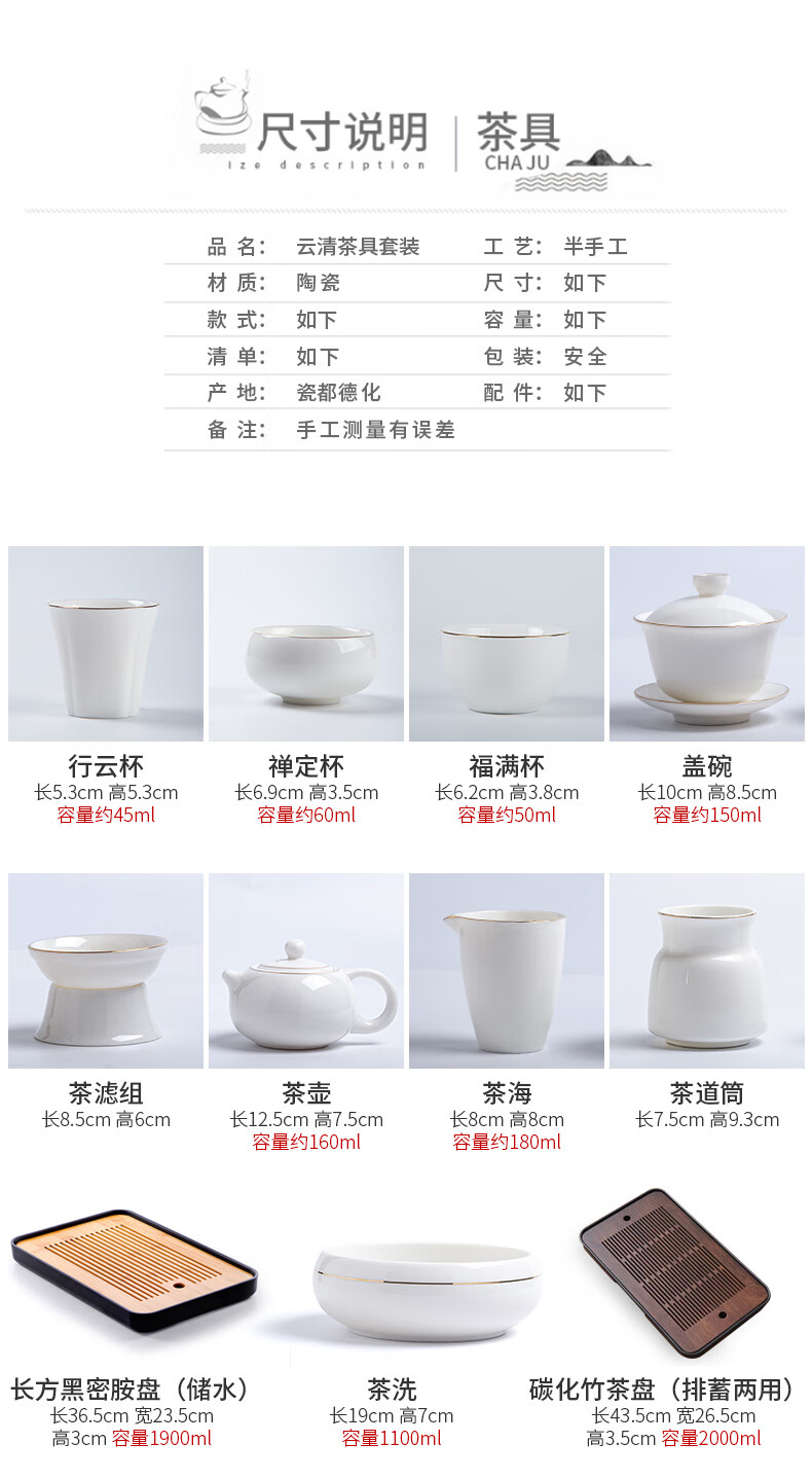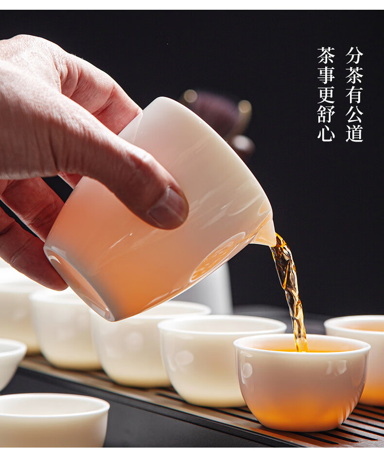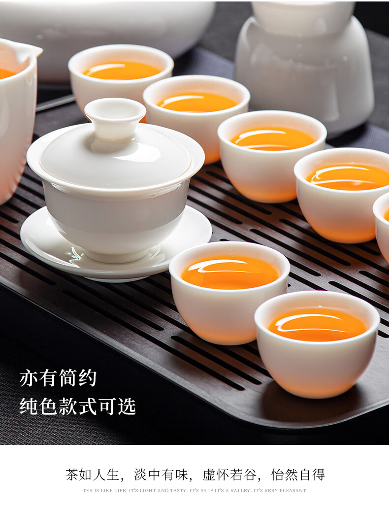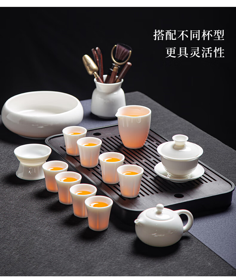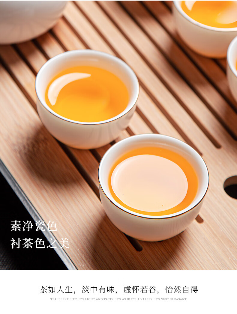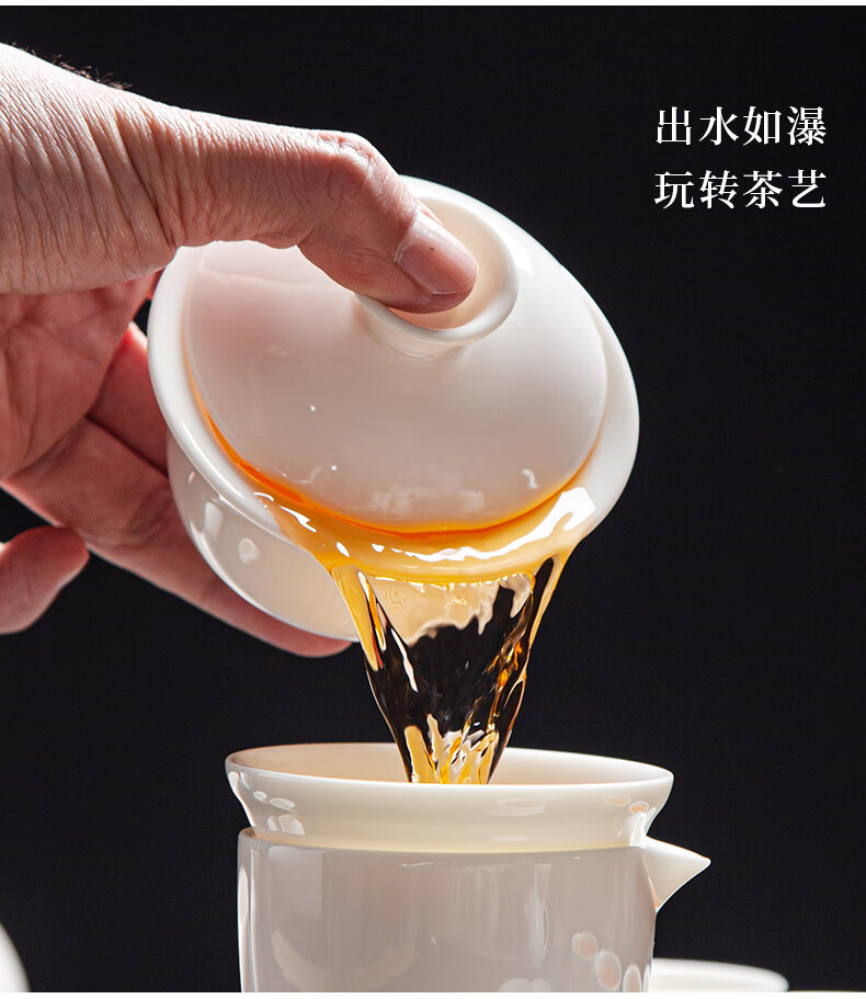 Jingcizhai Mutton Fat Jade White Porcelain Kung Fu Tea Set Home Light Luxury High-End Ceramic Covered Bowl Tea Cup New Complete Set Gold Painting-White Bean Fat Jade Covered Bowl 9-Head Perfect Cup